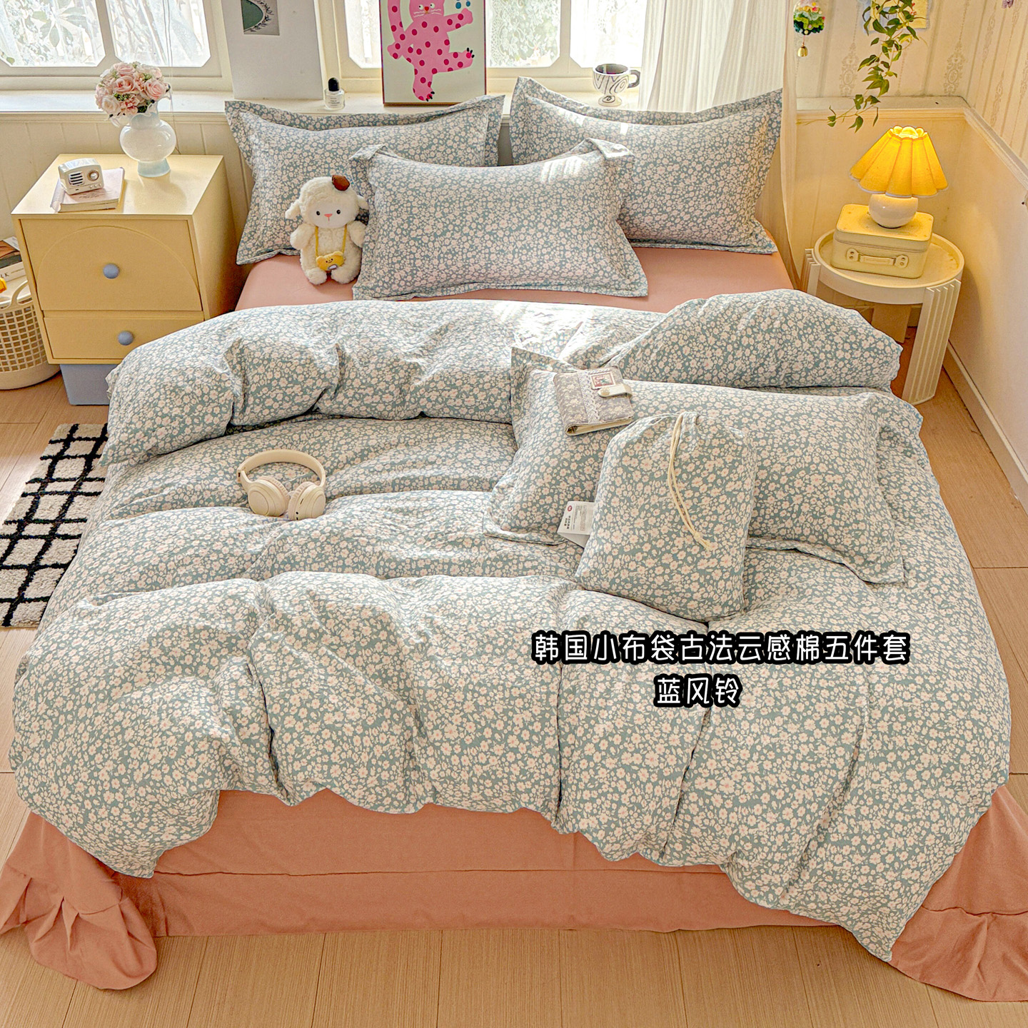 商品名称:梦莱斯 2025新款韩国小布袋古法云感棉四件套 蓝风铃