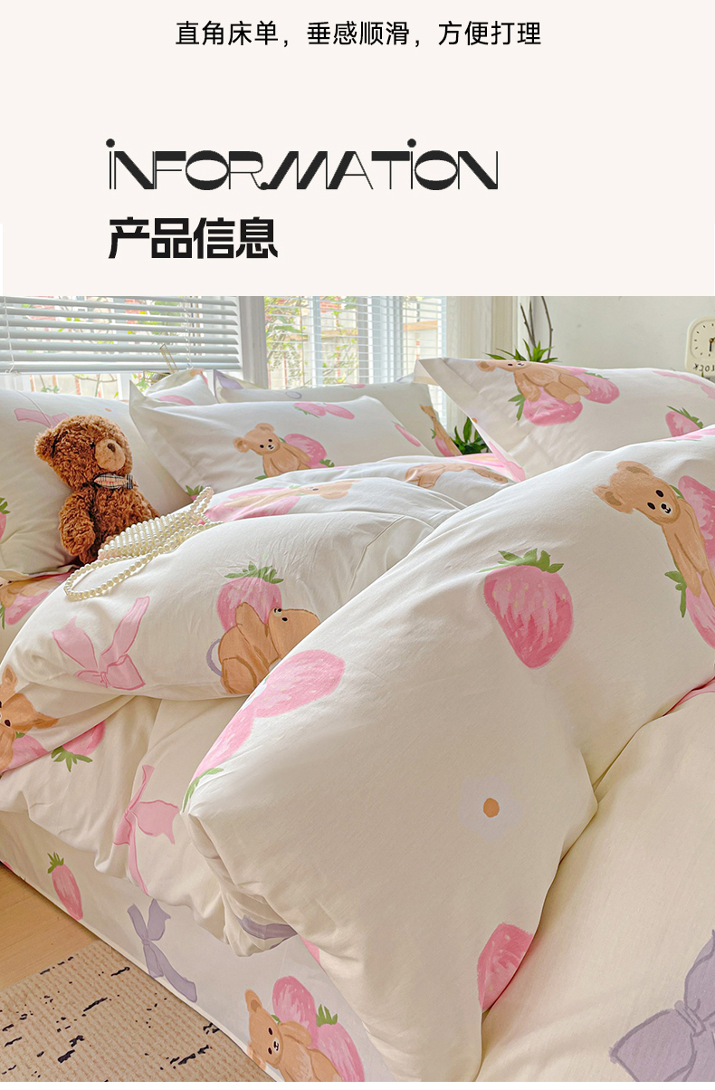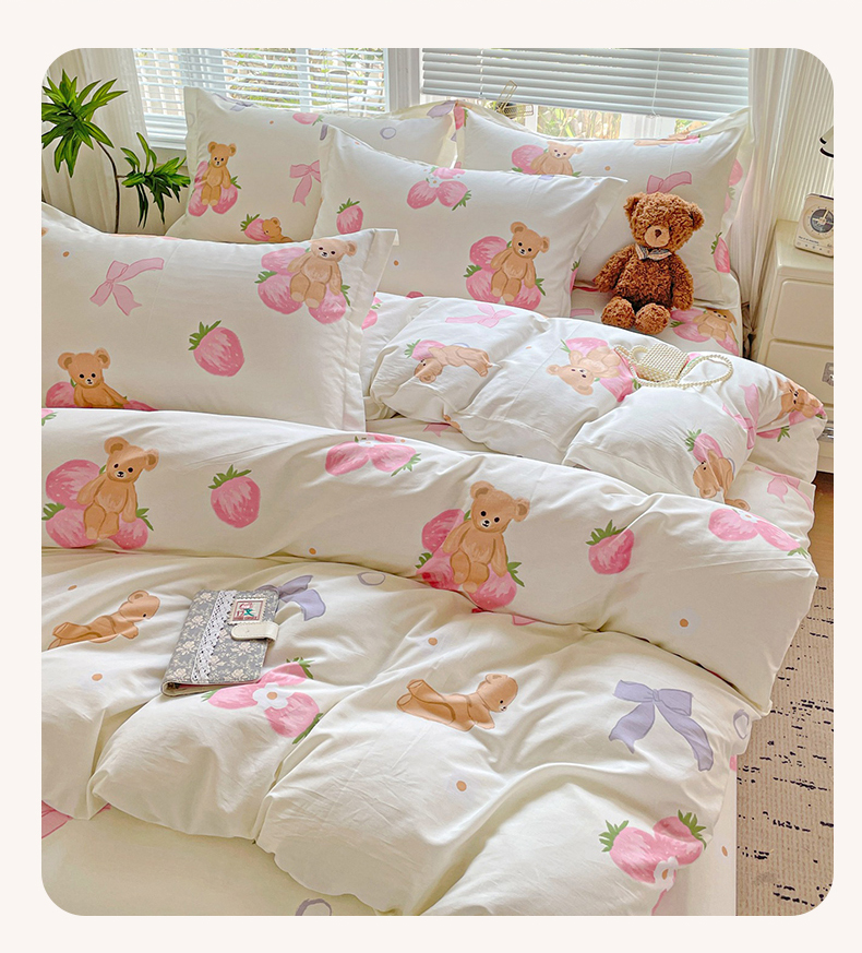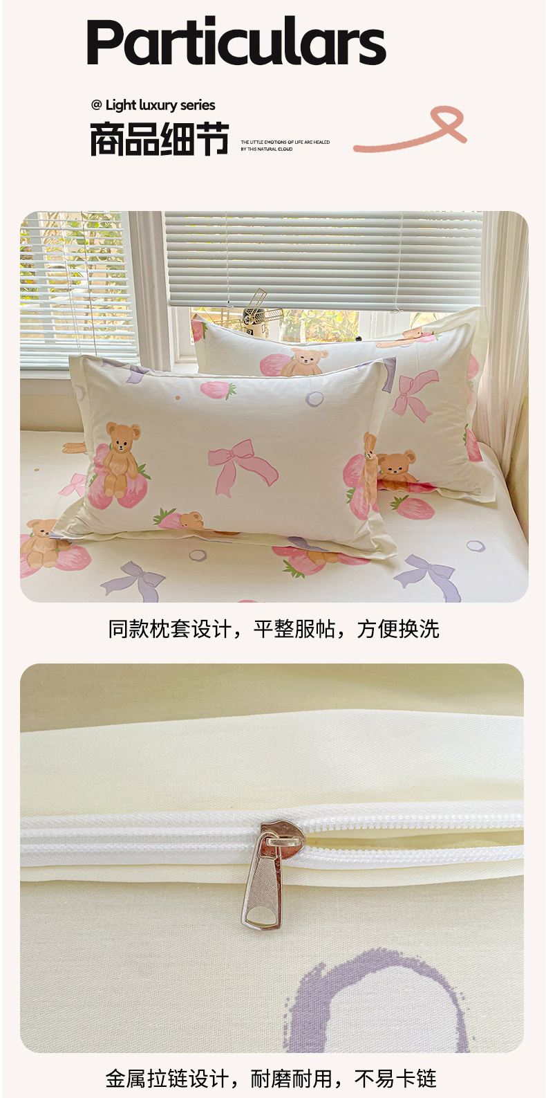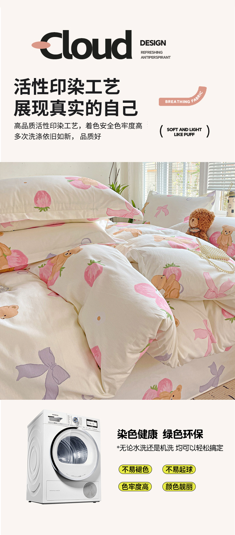 当前位置: 91家纺网 > 商品网购 > 床品套件 > 四件套 > 全棉普通四件套 > 文黛家居 2025新款全棉喷气印花全棉纯棉印花系列四件套 草莓熊-米