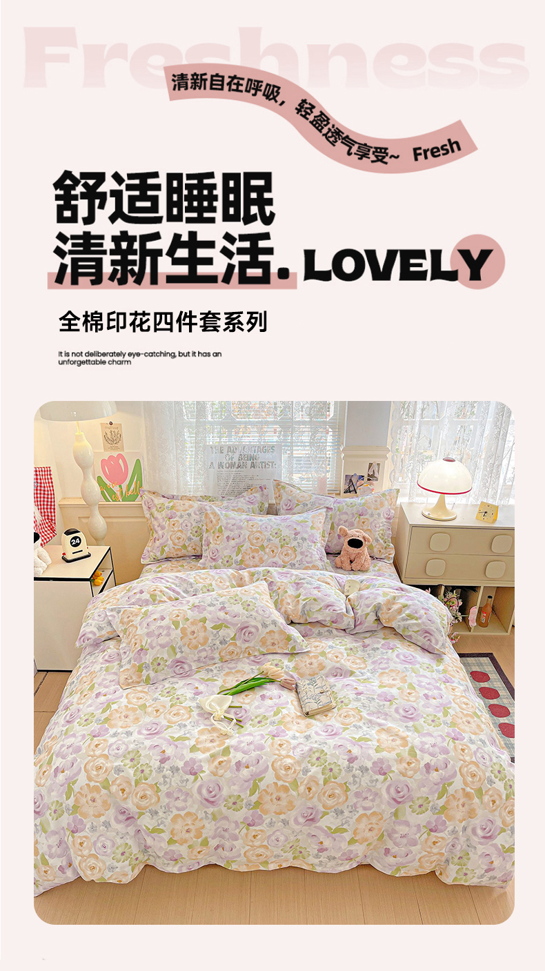 当前位置: 91家纺网 > 商品网购 > 床品套件 > 四件套 > 全棉普通四件套 > 文黛家居 2025新款全棉喷气印花全棉纯棉印花系列四件套 佳人有约