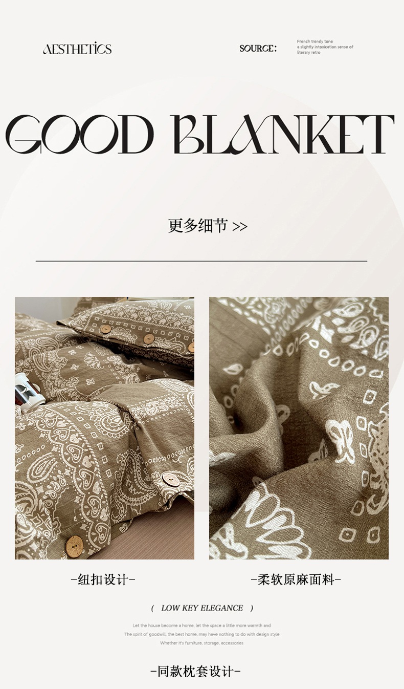 当前位置: 91家纺网 > 商品网购 > 床品套件 > 四件套 > 其它四件套 > 优佳优品 2025秋冬新款A类高克重亚麻复古侘季风复麻系列四件套 腰果棕韵