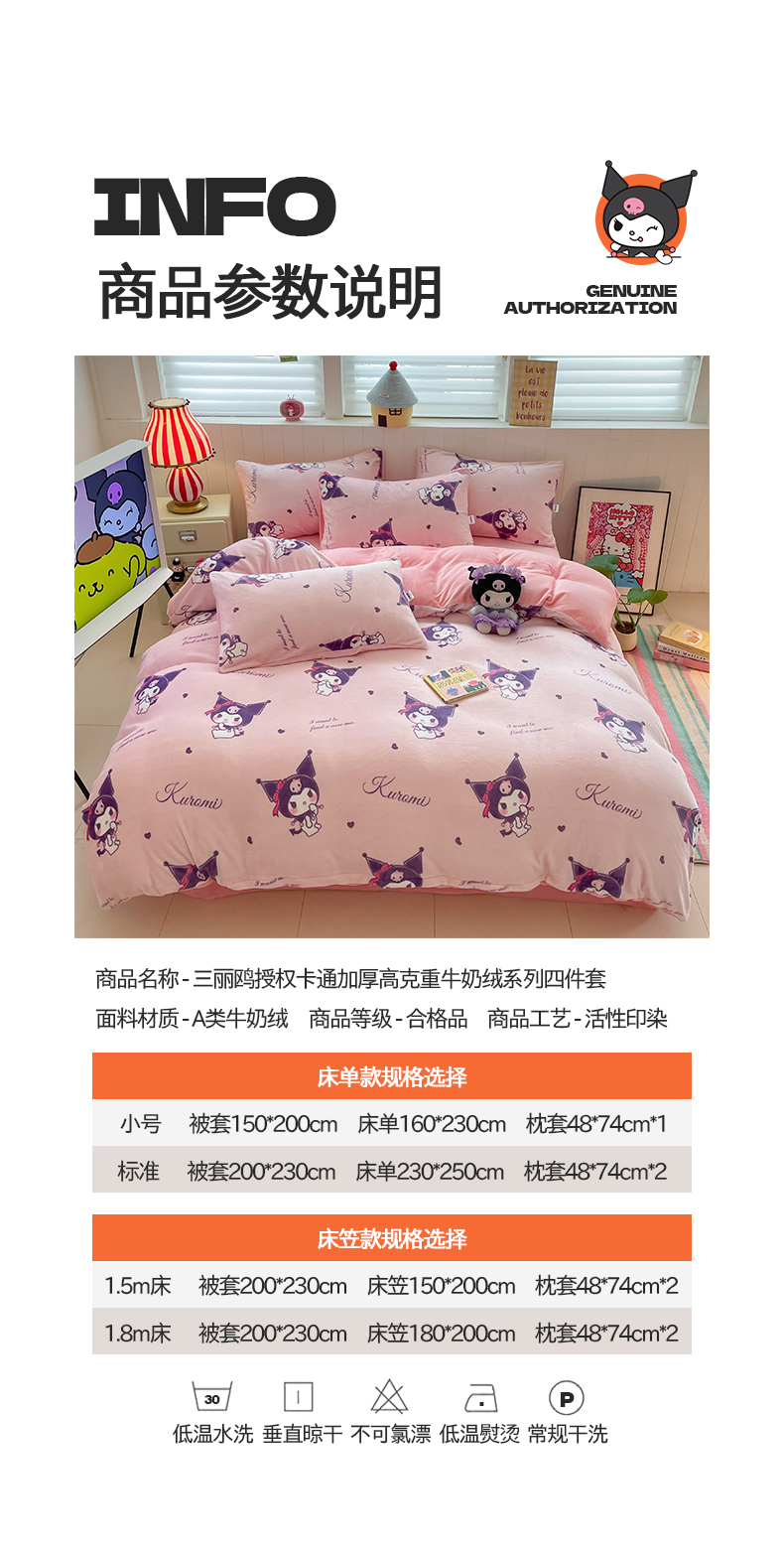 当前位置: 91家纺网 > 商品网购 > 床品套件 > 四件套 > 牛奶绒四件套 > 桃子家居 2025新款A类正版三丽鸥授权卡通加厚高克重牛奶绒系列四件套 绒三丽鸥-可爱库洛米