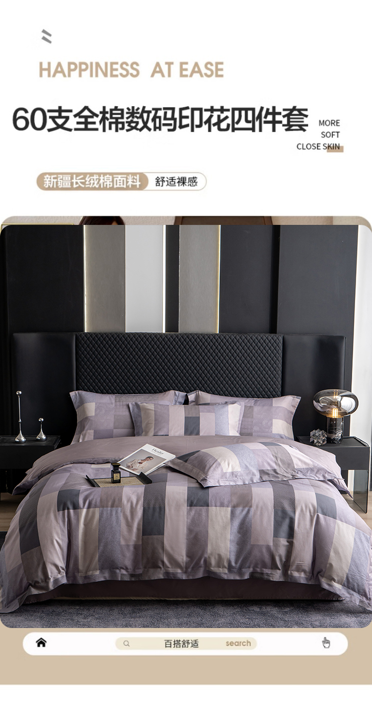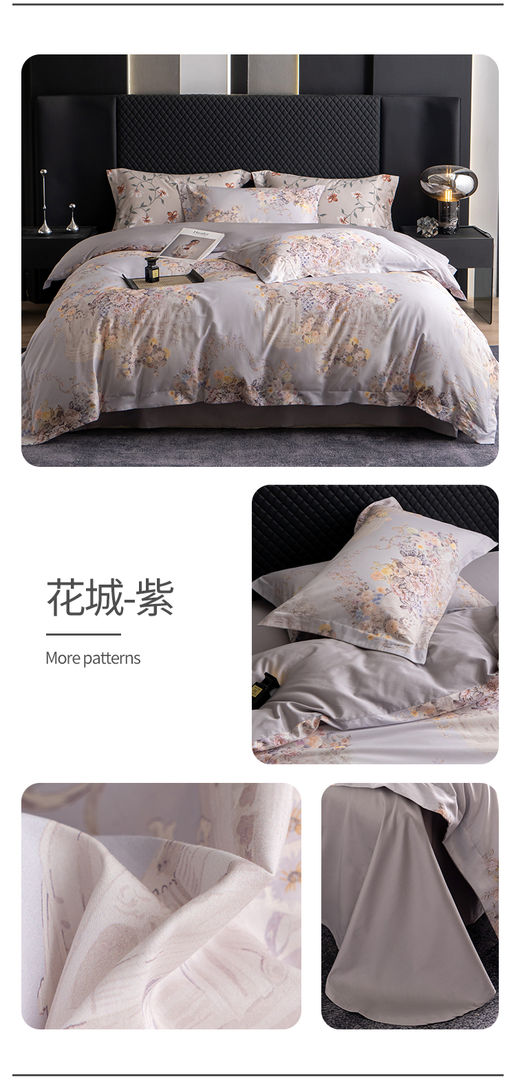 观月轩家纺 2025新款60支长绒棉纯棉数码印花四件套 蔓丽