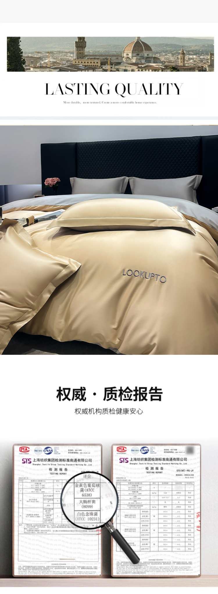 商品名称:观月轩家纺 2025新款100S长绒棉纯棉四件套 蓝灰色