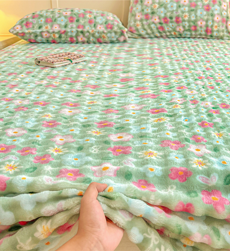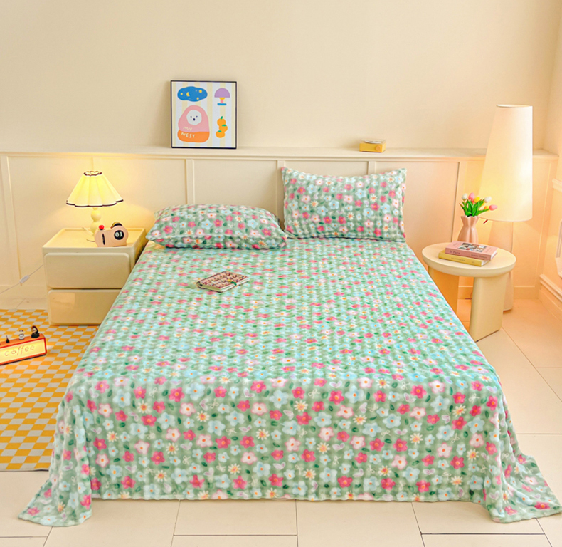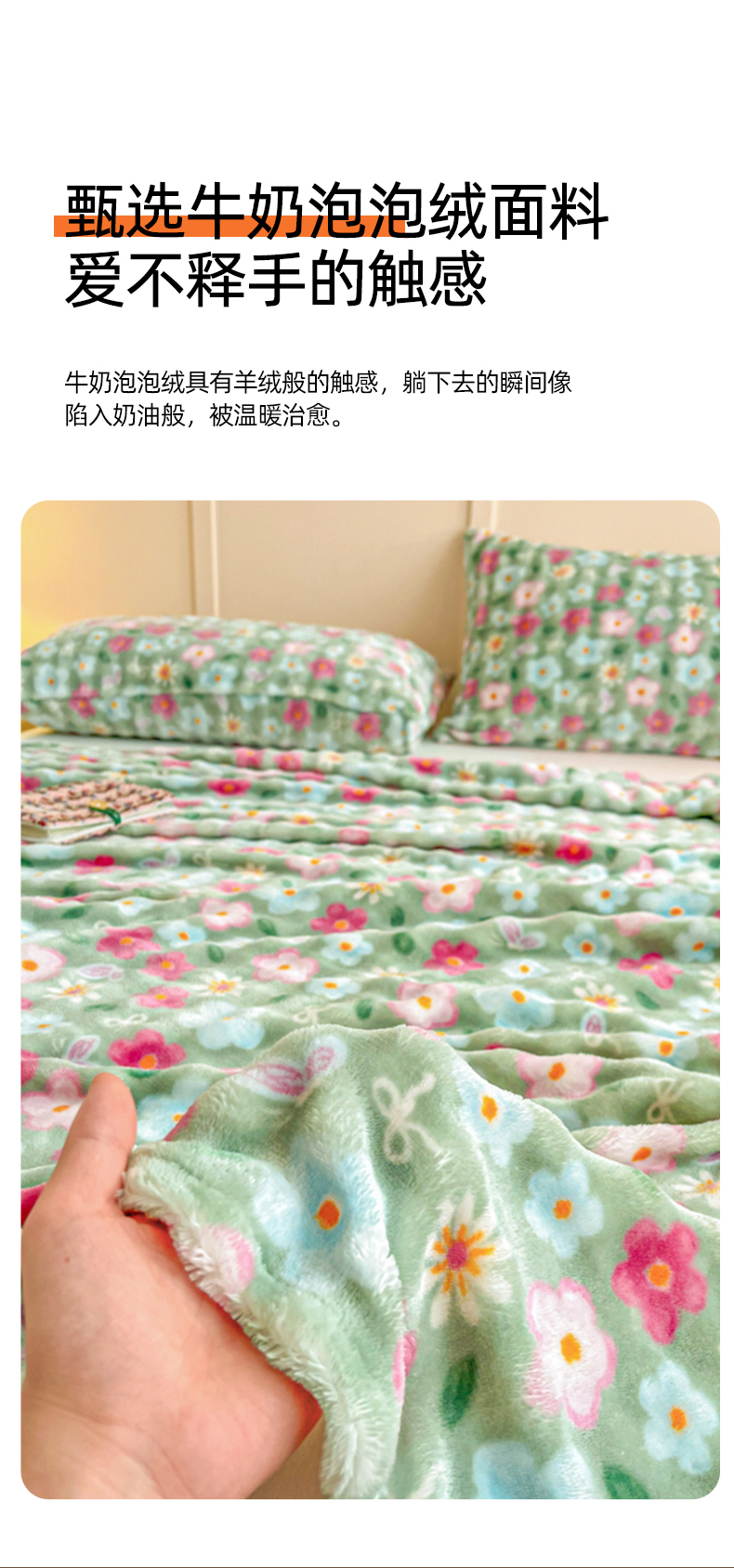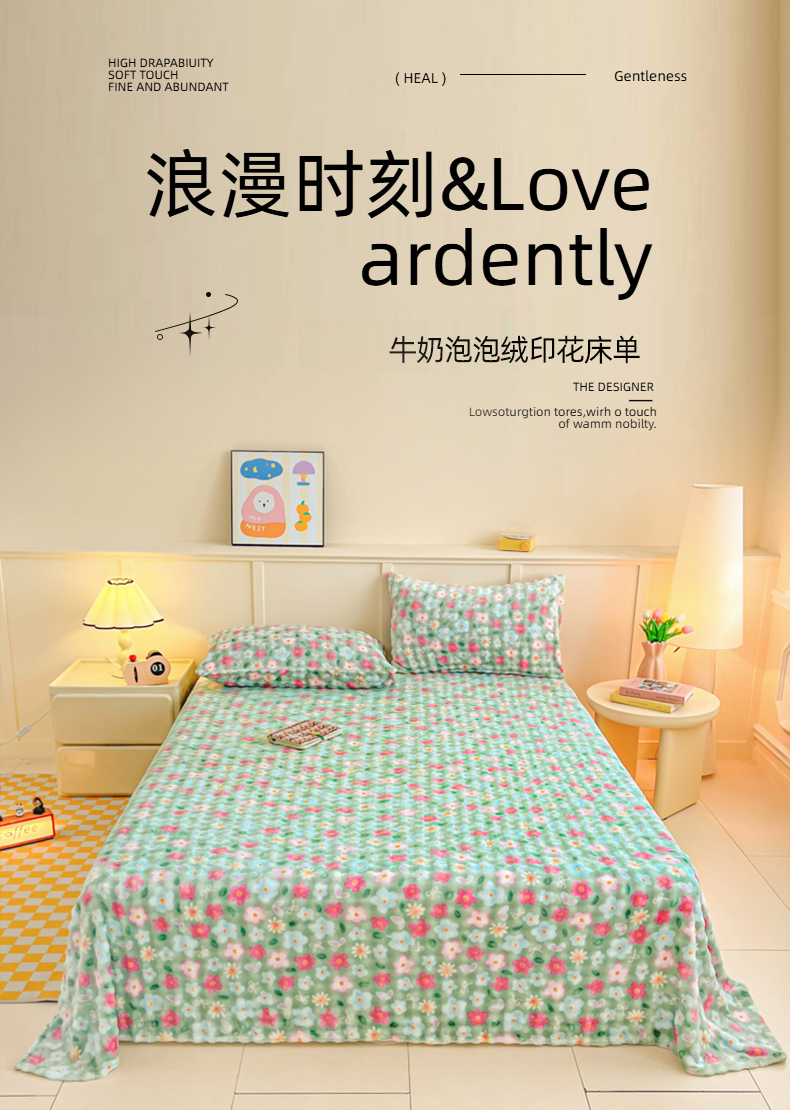 • 91家纺网 家纺一手货源 找家纺 爱屋及屋 2025新款牛奶泡泡绒印花单床单 床单单件 绿底小花