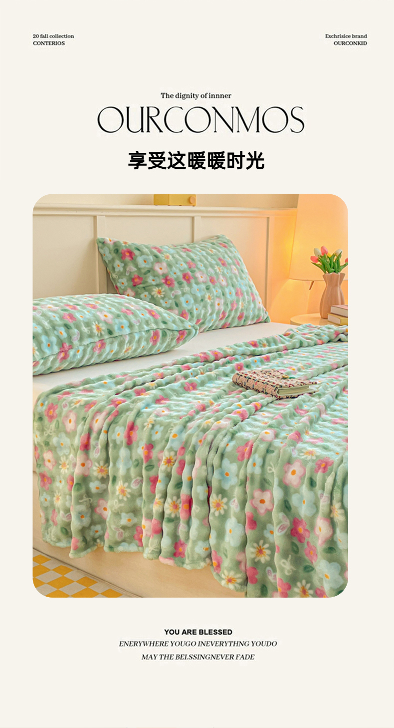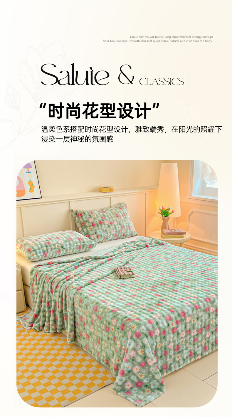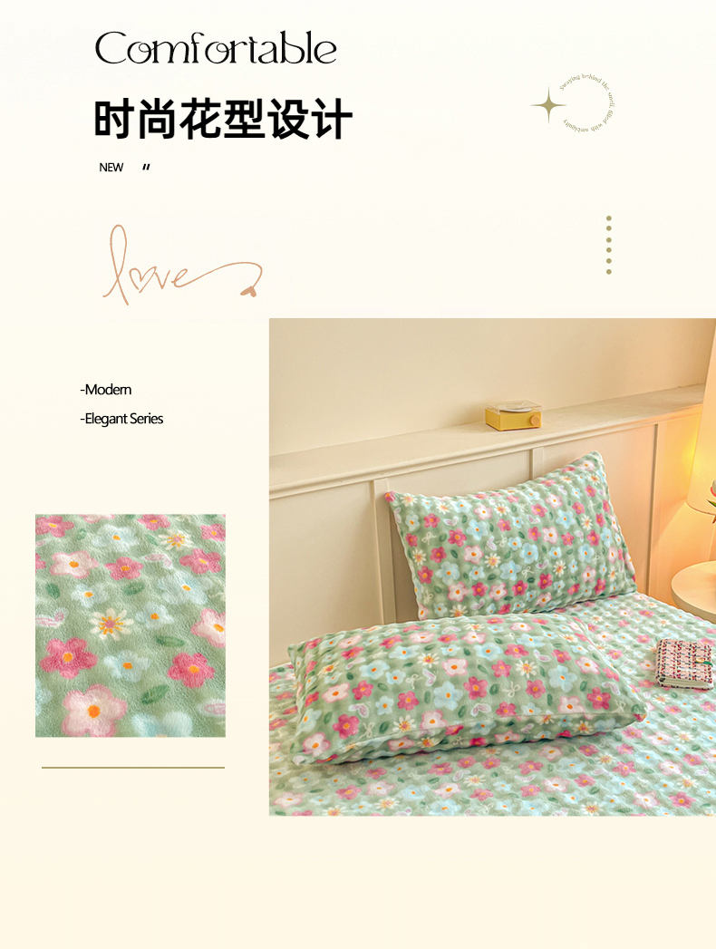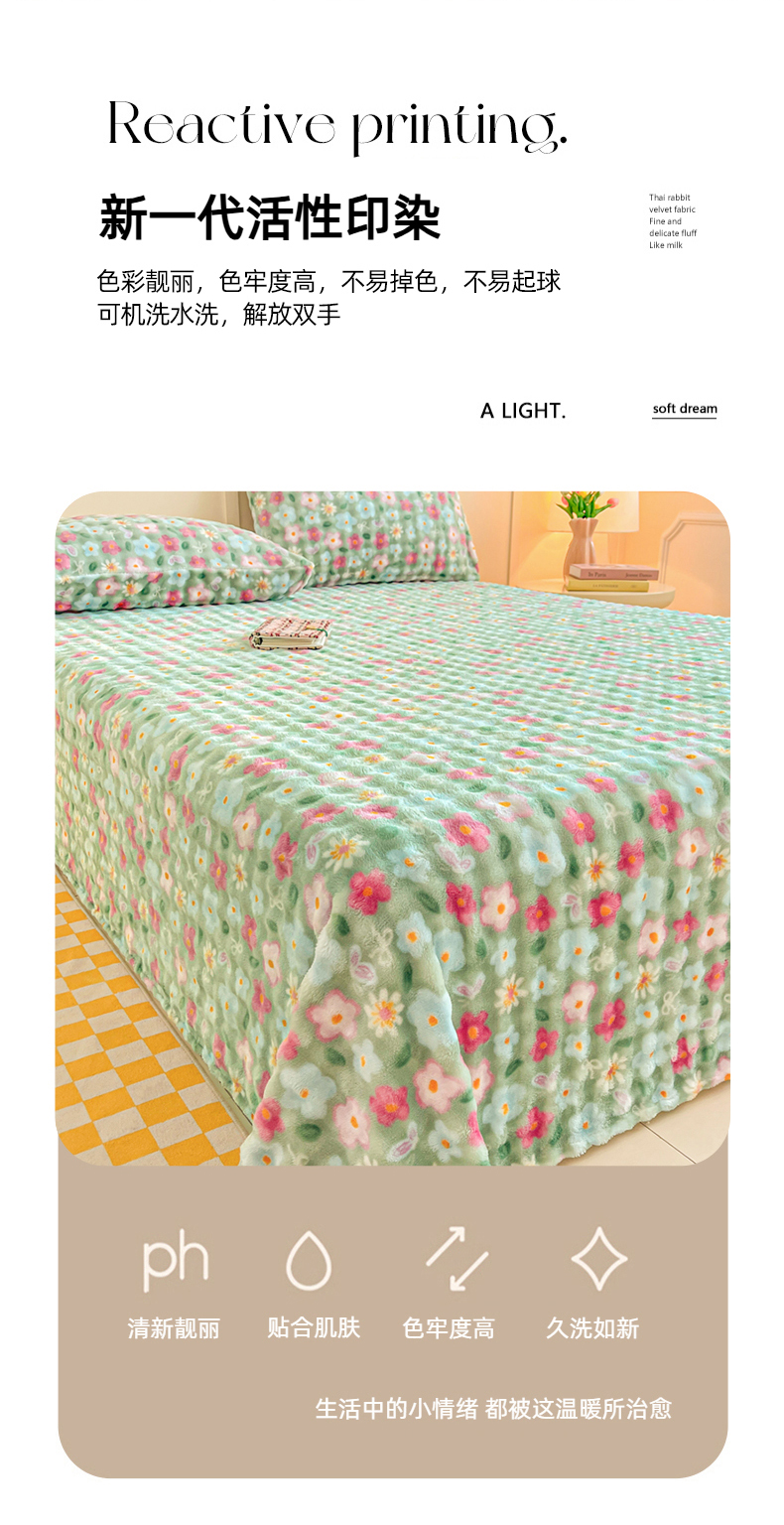 • 91家纺网 家纺一手货源 找家纺 爱屋及屋 2025新款牛奶泡泡绒印花单床单 床单单件 绿底小花
