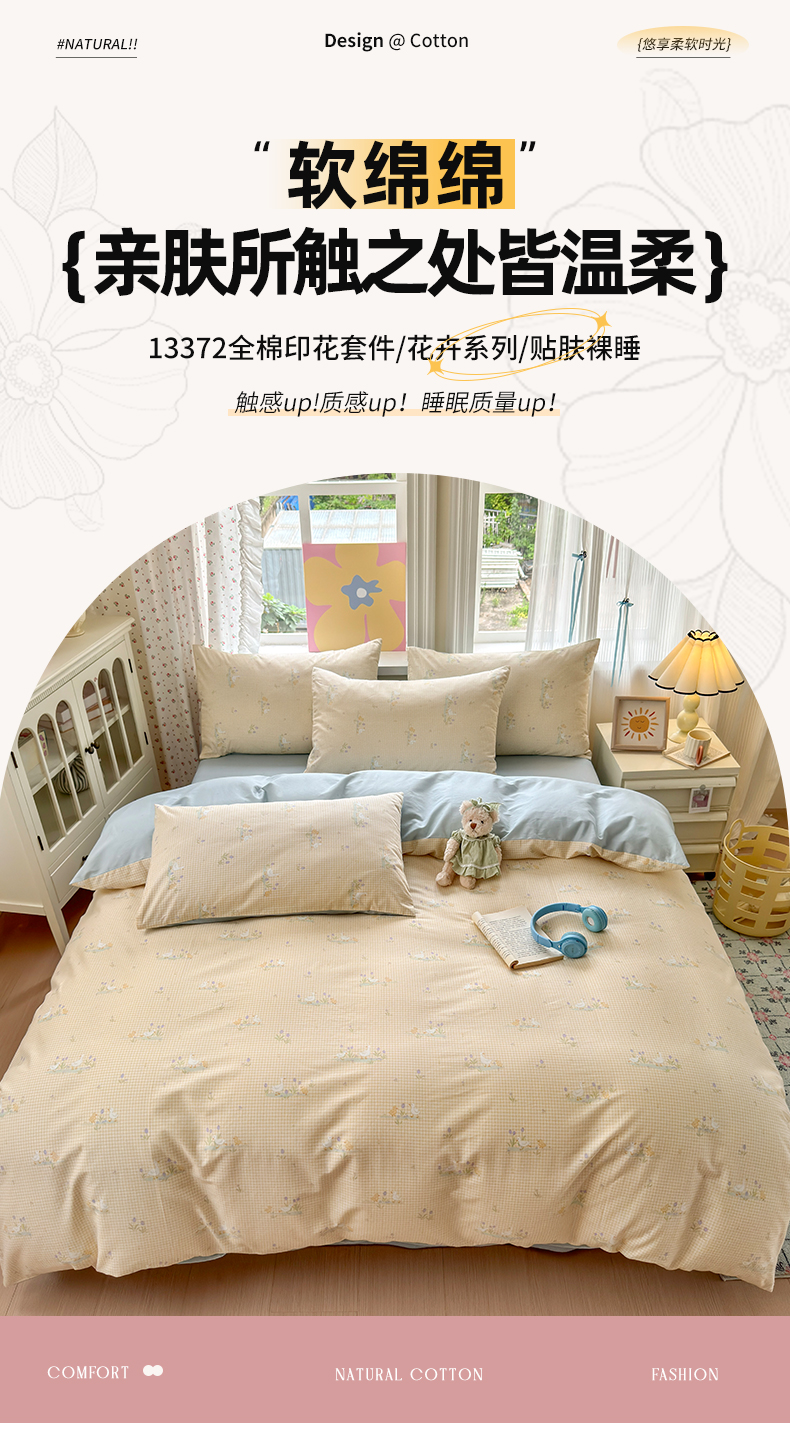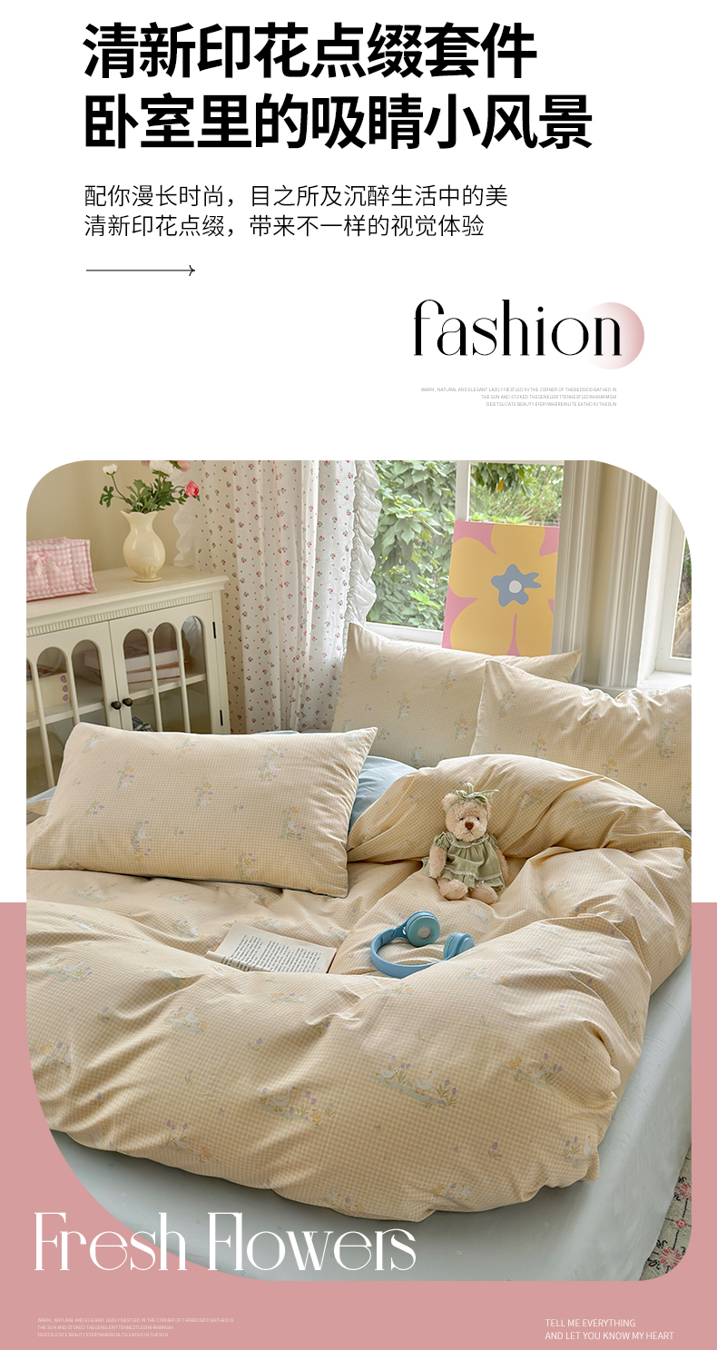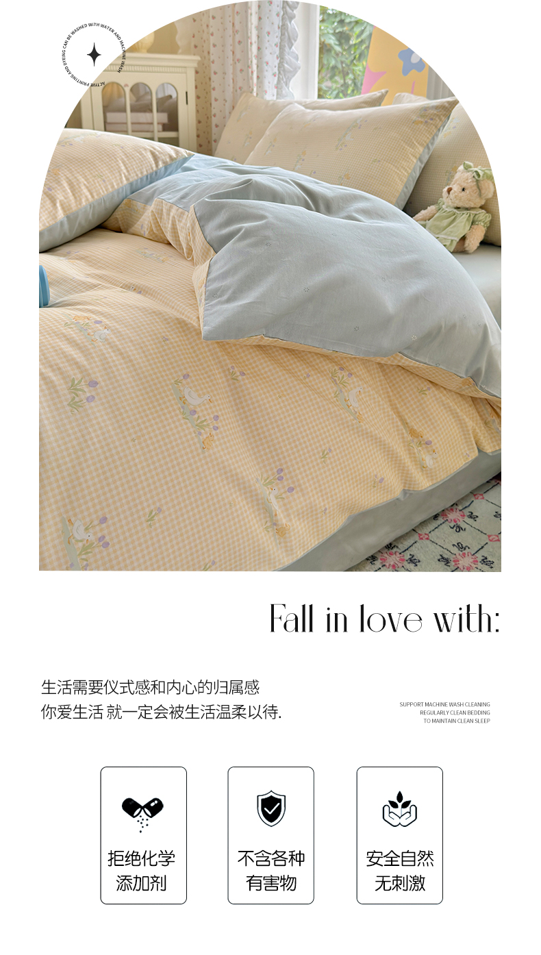 当前位置: 91家纺网 > 商品网购 > 床品套件 > 四件套 > 全棉普通四件套 > 优彩 2025新款13372碎花系列全棉四件套小萌鸭