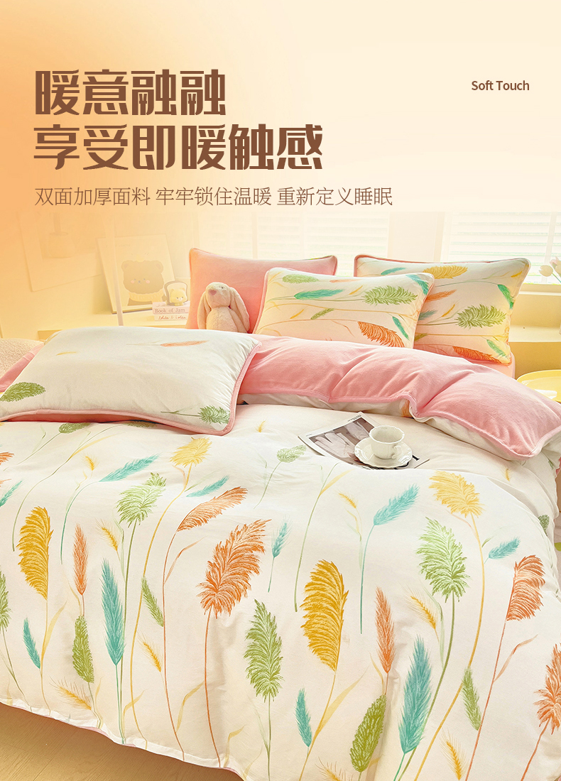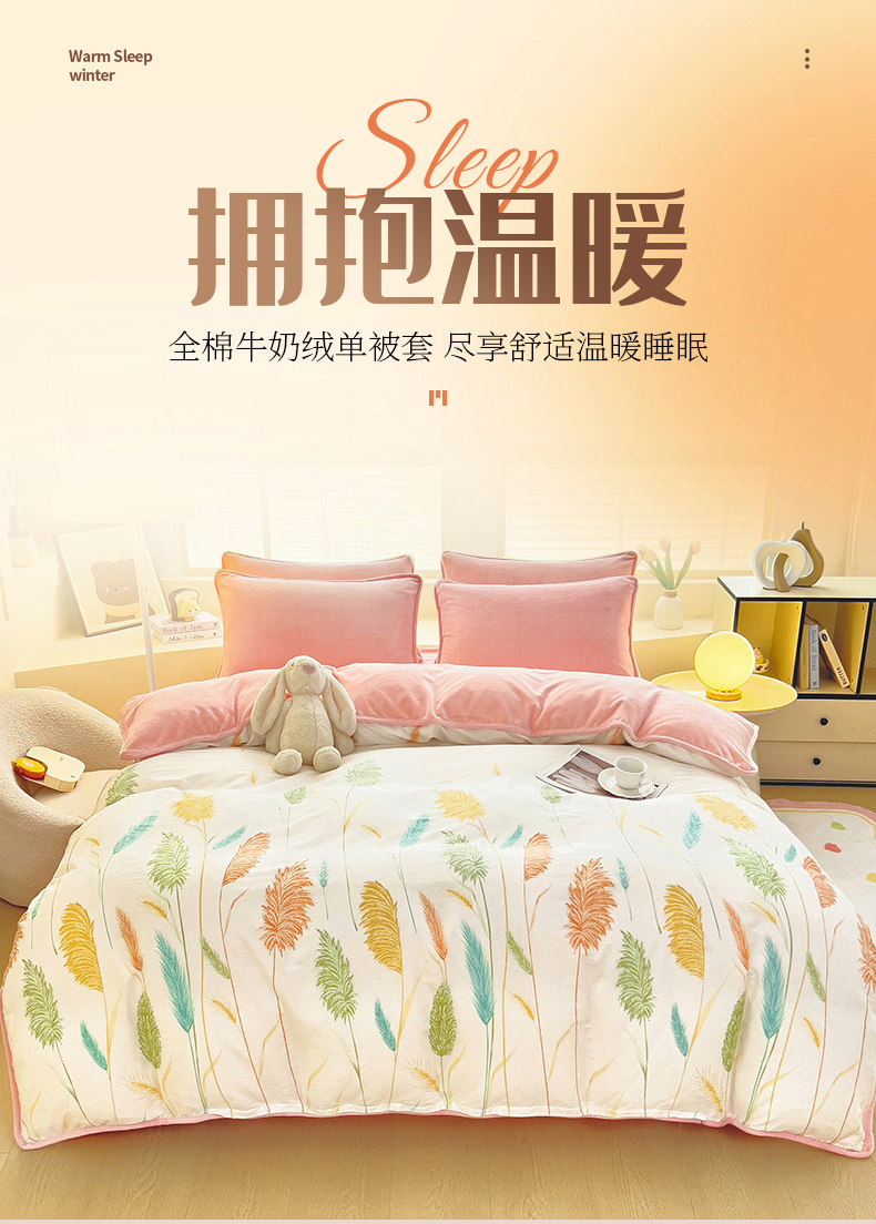 琪琪阁家纺 2025秋冬新款全棉加牛奶绒单被套棉加绒被套 麦穗飘香