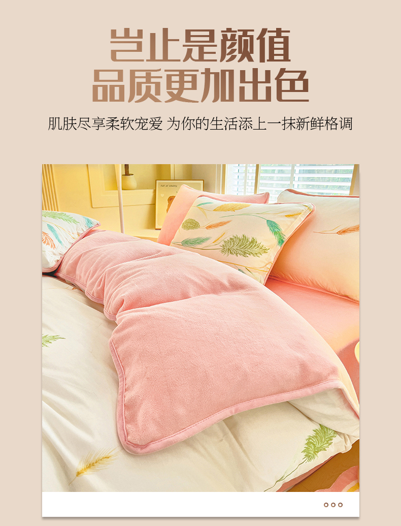 琪琪阁 2023新款A棉B绒棉加绒牛奶绒四件套单被套 宁静生活,宁静生活