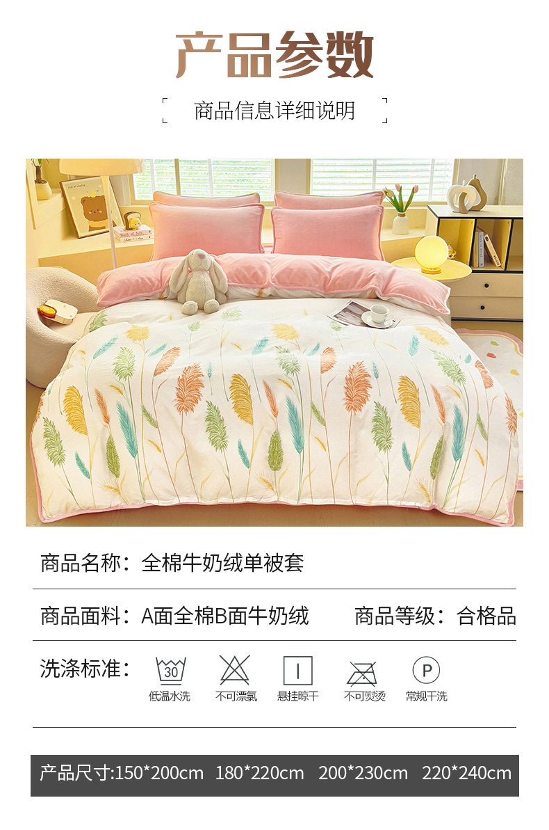 商品名称:琪琪阁家纺 2025秋冬新款全棉加牛奶绒单被套棉加绒被套 麦穗飘香