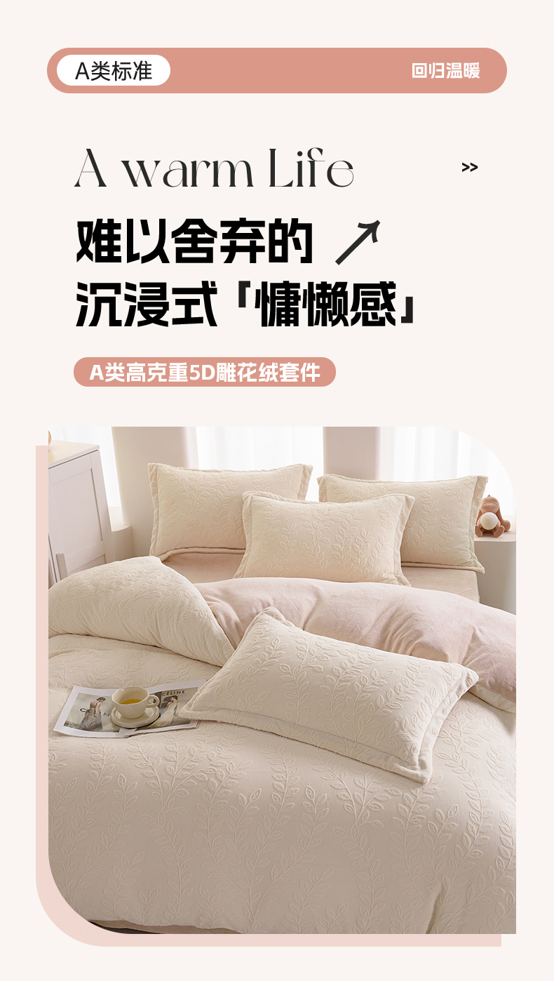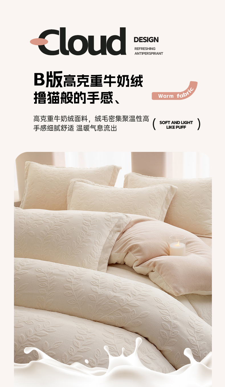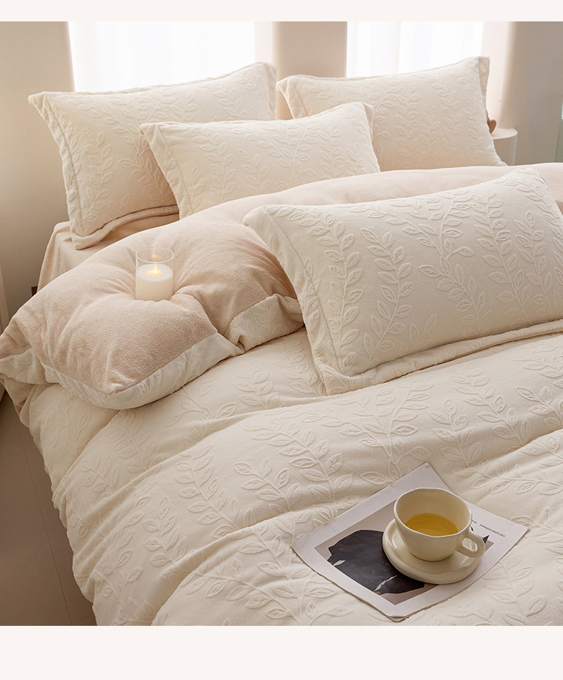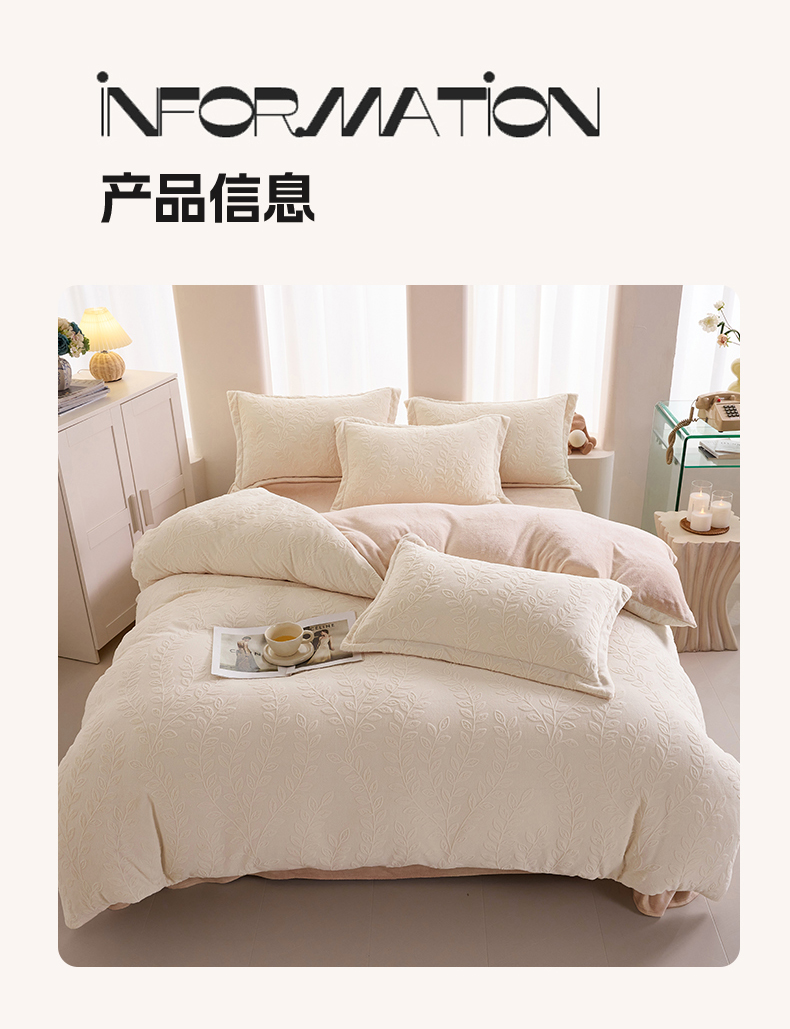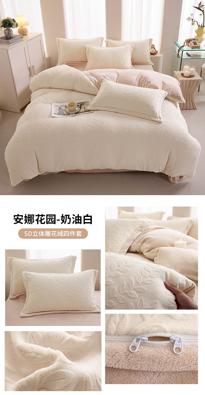 当前位置: 91家纺网 > 商品网购 > 床品套件 > 四件套 > 牛奶绒四件套 > 亿梵 2025秋冬新款A类全消光牛奶绒立体5D雕花绒四件套 安娜花园-奶油白