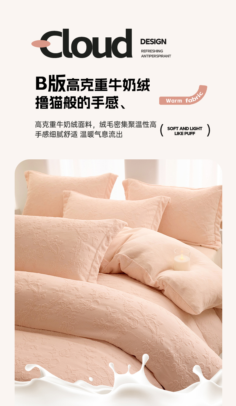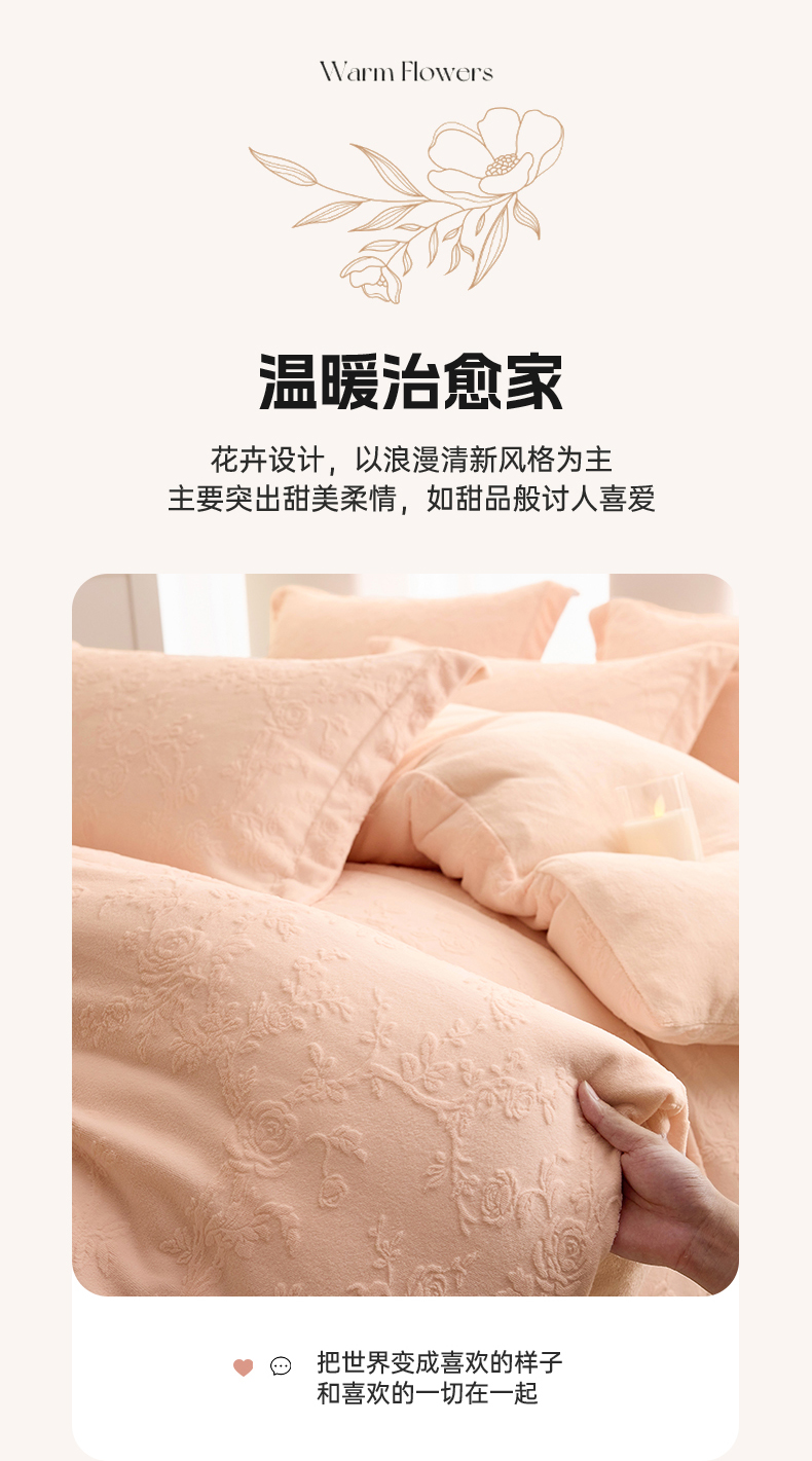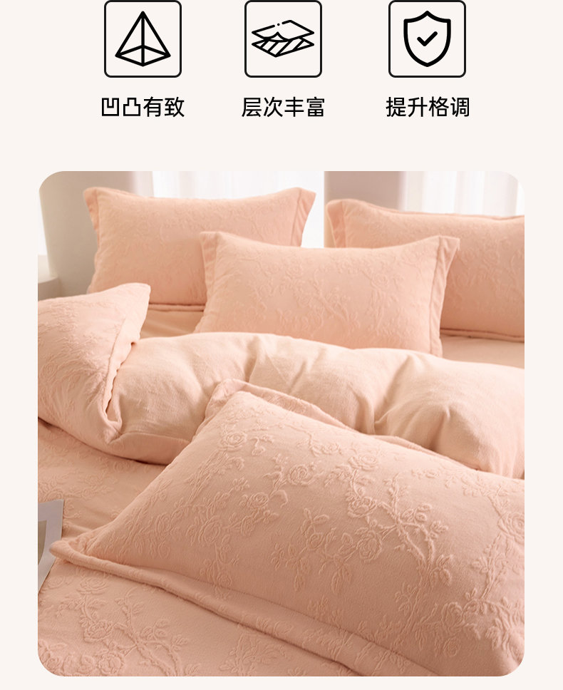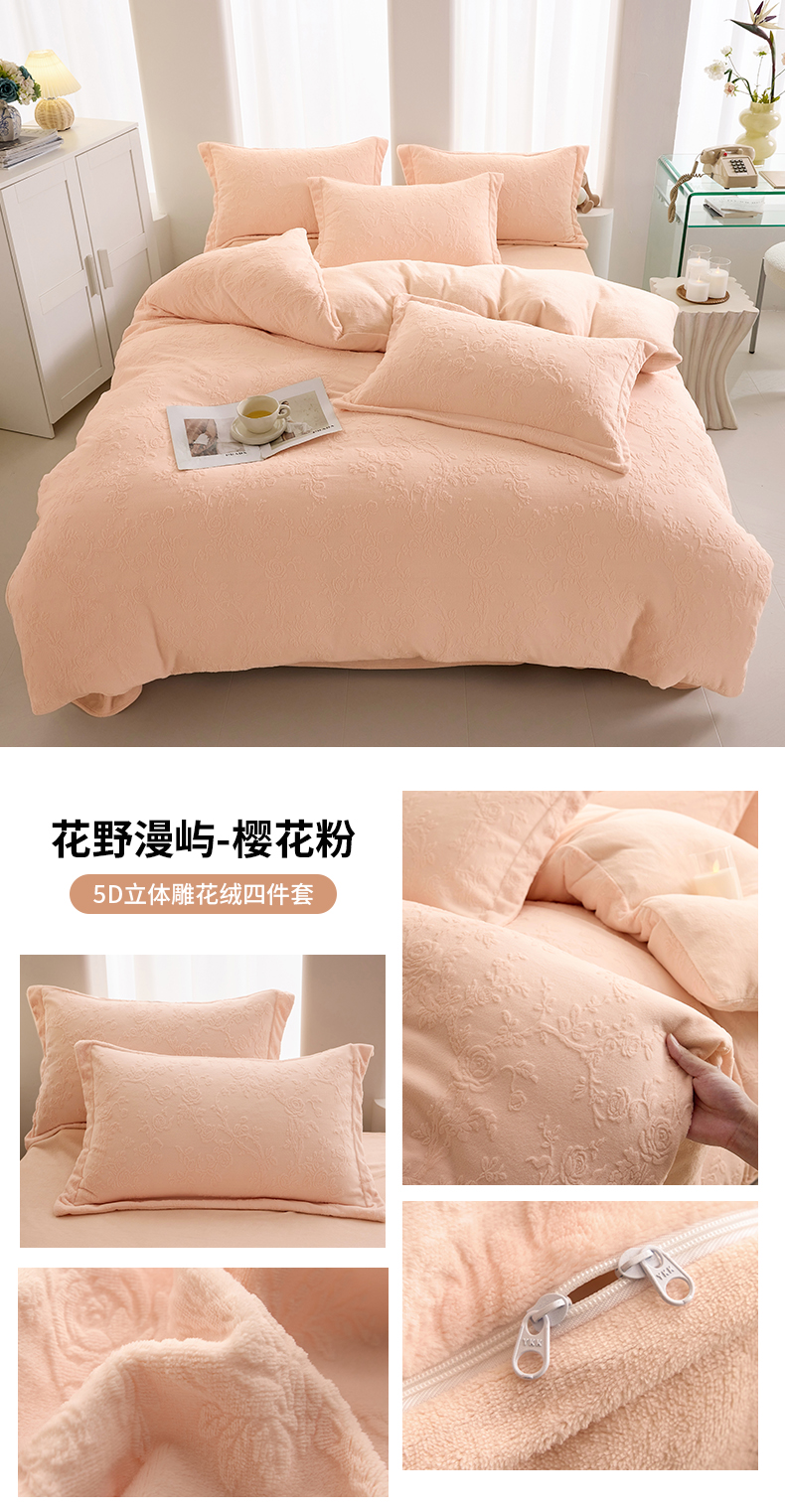当前位置: 91家纺网 > 商品网购 > 床品套件 > 四件套 > 牛奶绒四件套 > 亿梵 2025秋冬新款A类全消光牛奶绒立体5D雕花绒四件套 花野漫屿-樱花粉