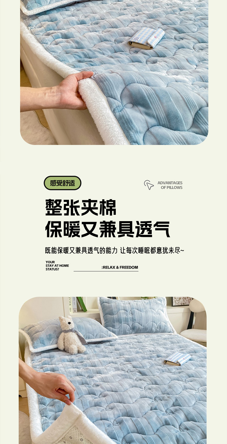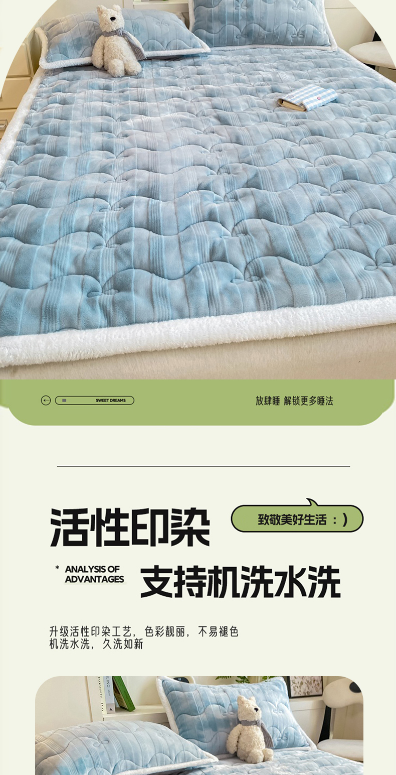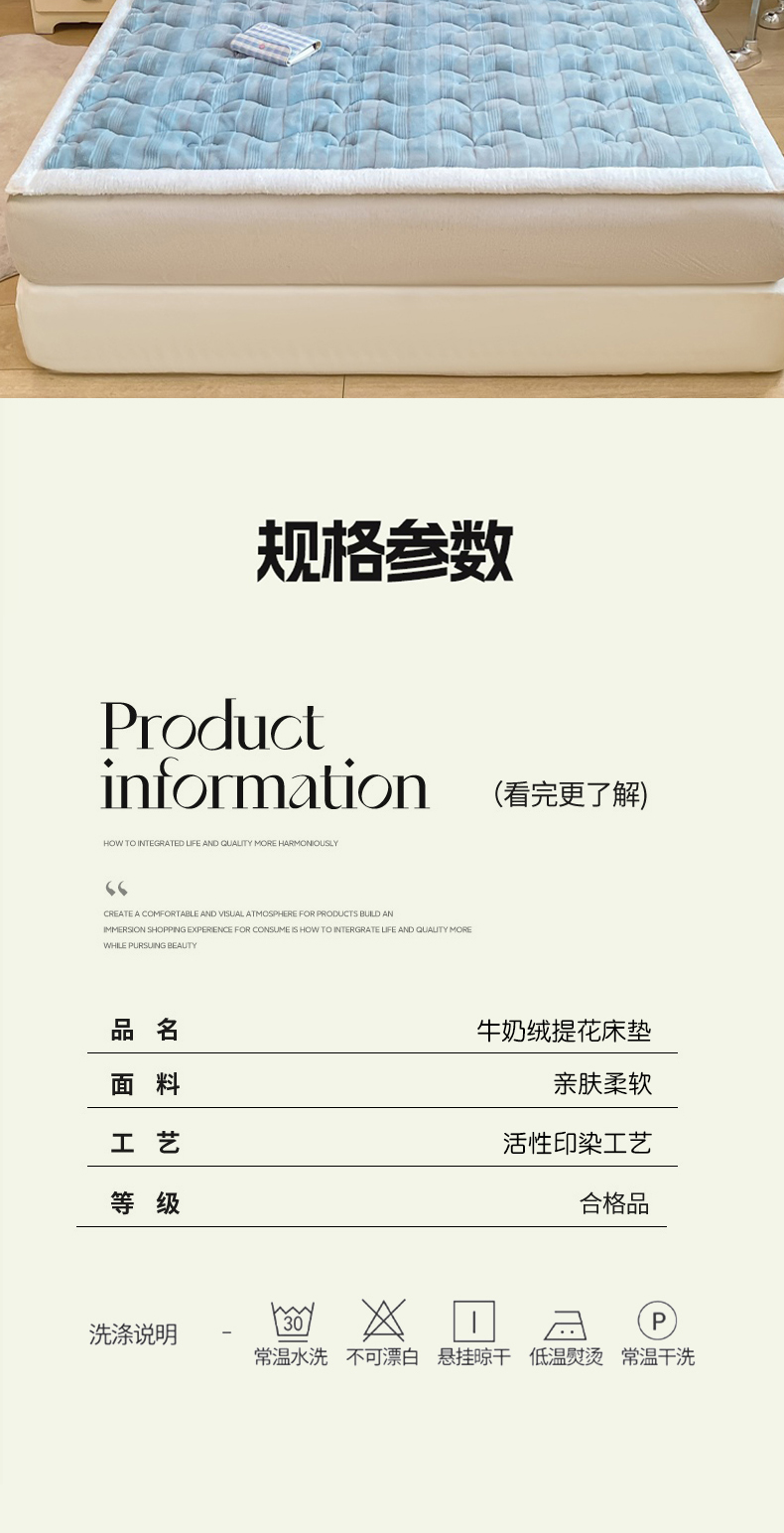 当前位置: 91家纺网 > 商品网购 > 床垫/床褥 > 普通床垫 > 麒东家纺 2025新款牛奶绒睫毛绒条纹提花夹棉床垫 浅蓝