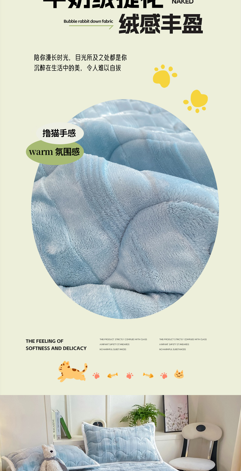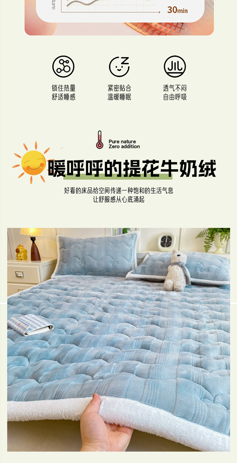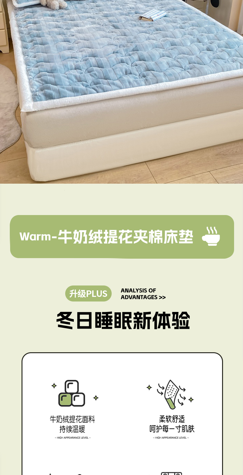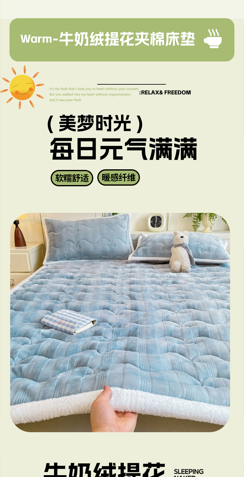 当前位置: 91家纺网 > 商品网购 > 床垫/床褥 > 普通床垫 > 麒东家纺 2025新款牛奶绒睫毛绒条纹提花夹棉床垫 浅蓝
