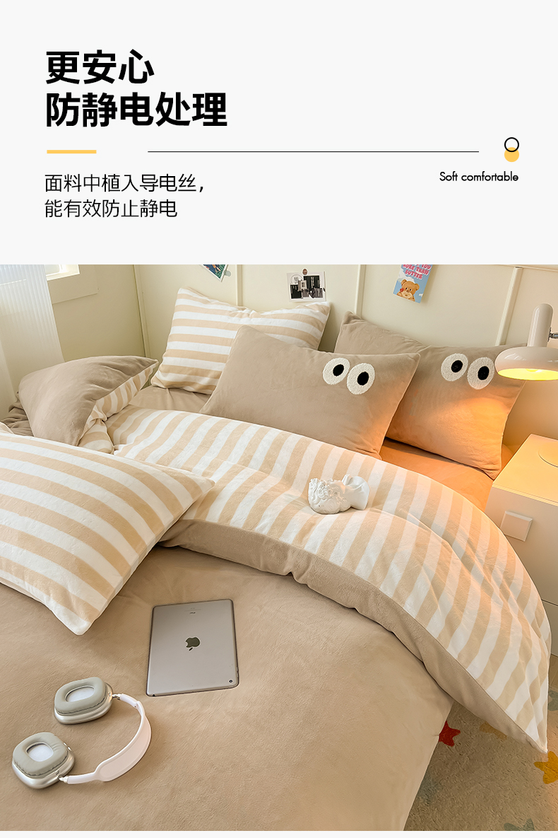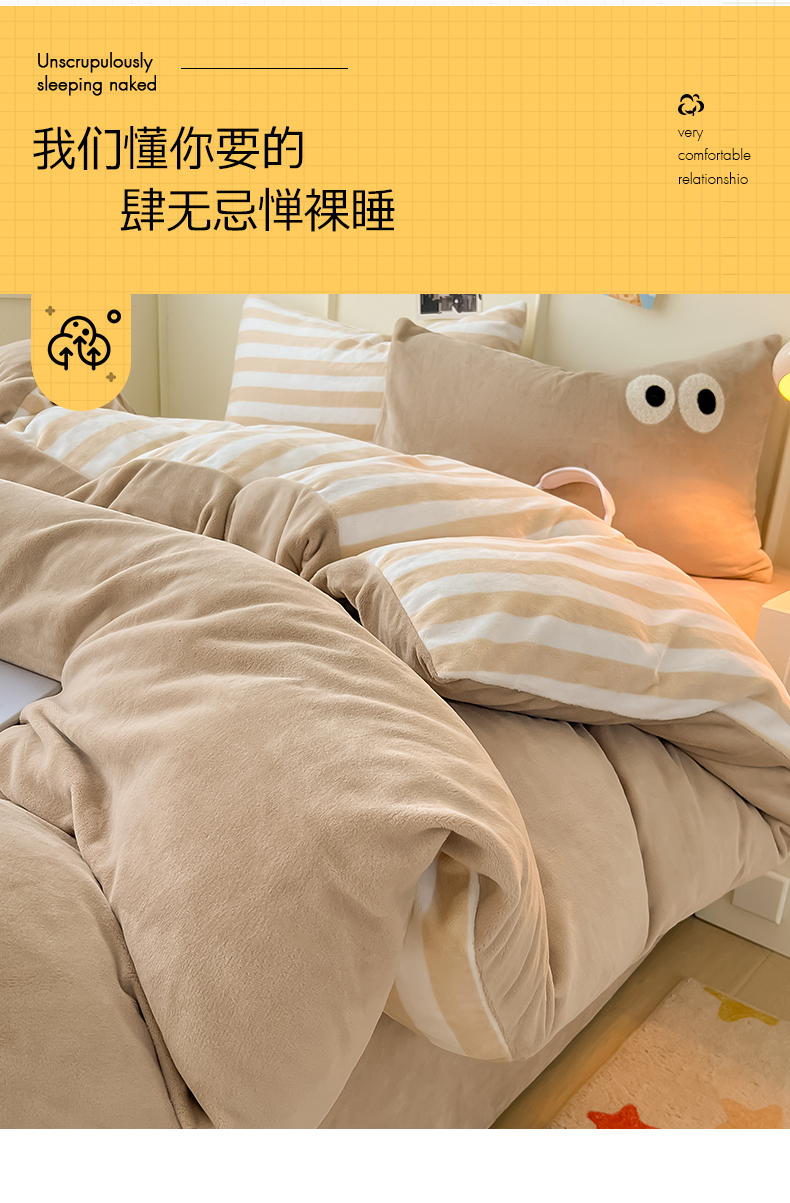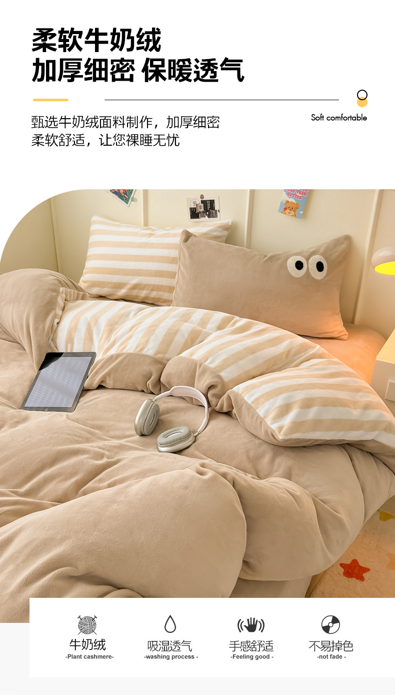 当前位置: 91家纺网 > 商品网购 > 床品套件 > 四件套 > 牛奶绒四件套 > 悦织湾家纺 2025新款简约牛奶绒眼睛系列纯色条纹轻奢时尚卡通冬季加厚保暖学生宿舍三四件套 筒约牛奶绒咖苏条