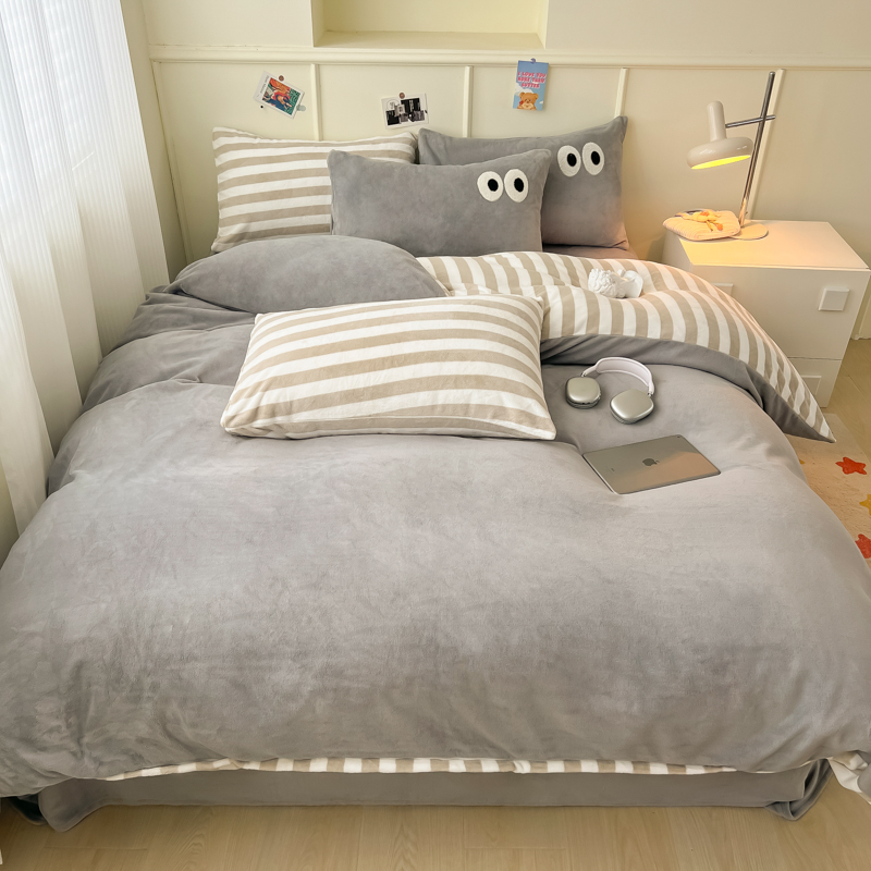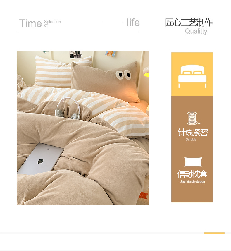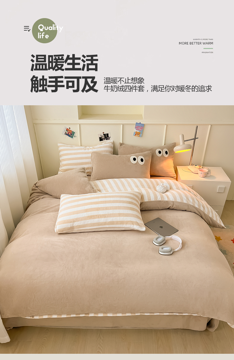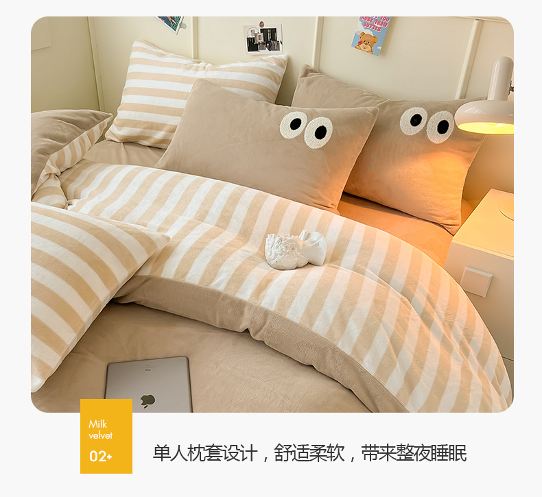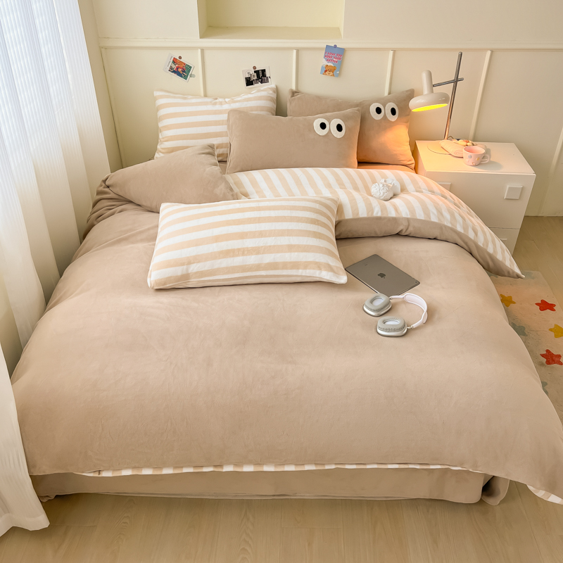 当前位置: 91家纺网 > 商品网购 > 床品套件 > 四件套 > 牛奶绒四件套 > 悦织湾家纺 2025新款简约牛奶绒眼睛系列纯色条纹轻奢时尚卡通冬季加厚保暖学生宿舍三四件套 筒约牛奶绒咖苏条