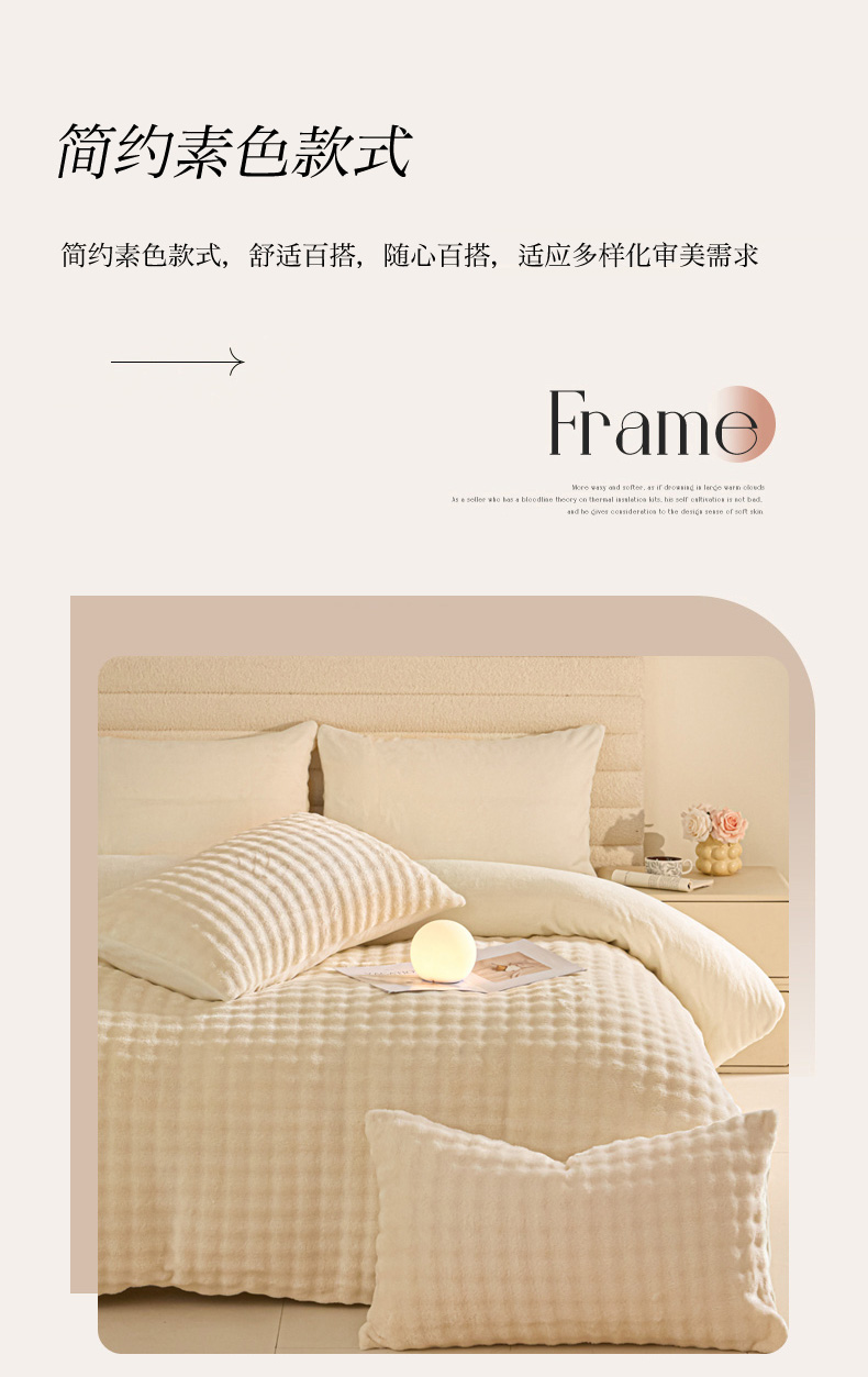 商品名称:眠博士 2025新款兔绒牛奶绒加厚保暖四件套-凯瑟琳场景一 凯瑟琳-暖白