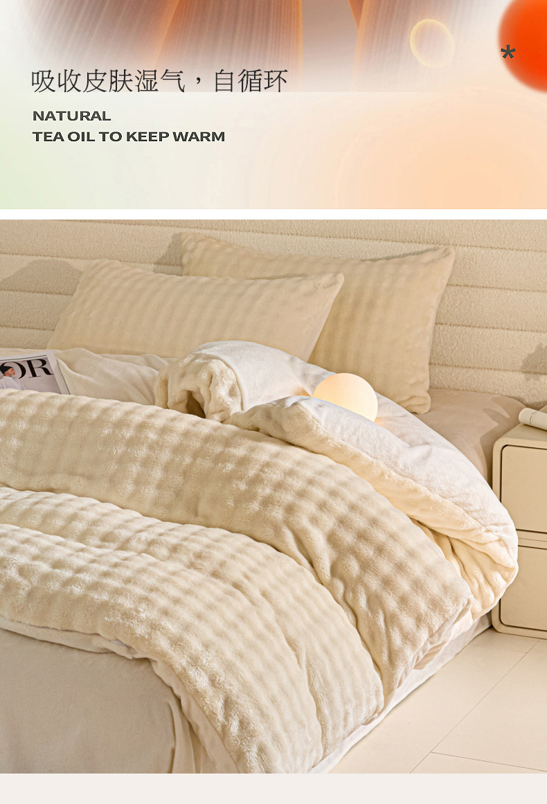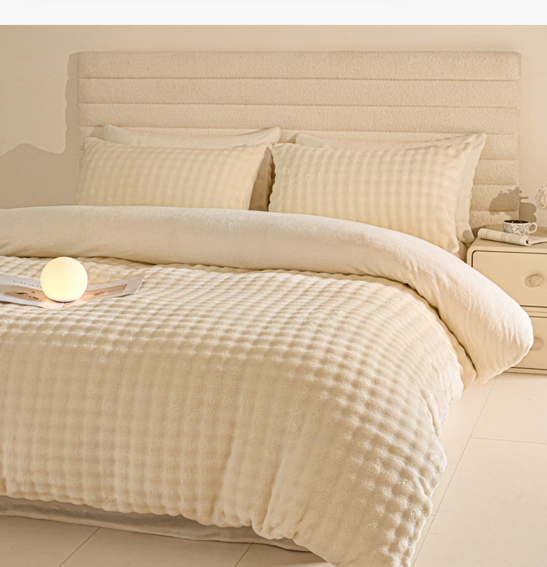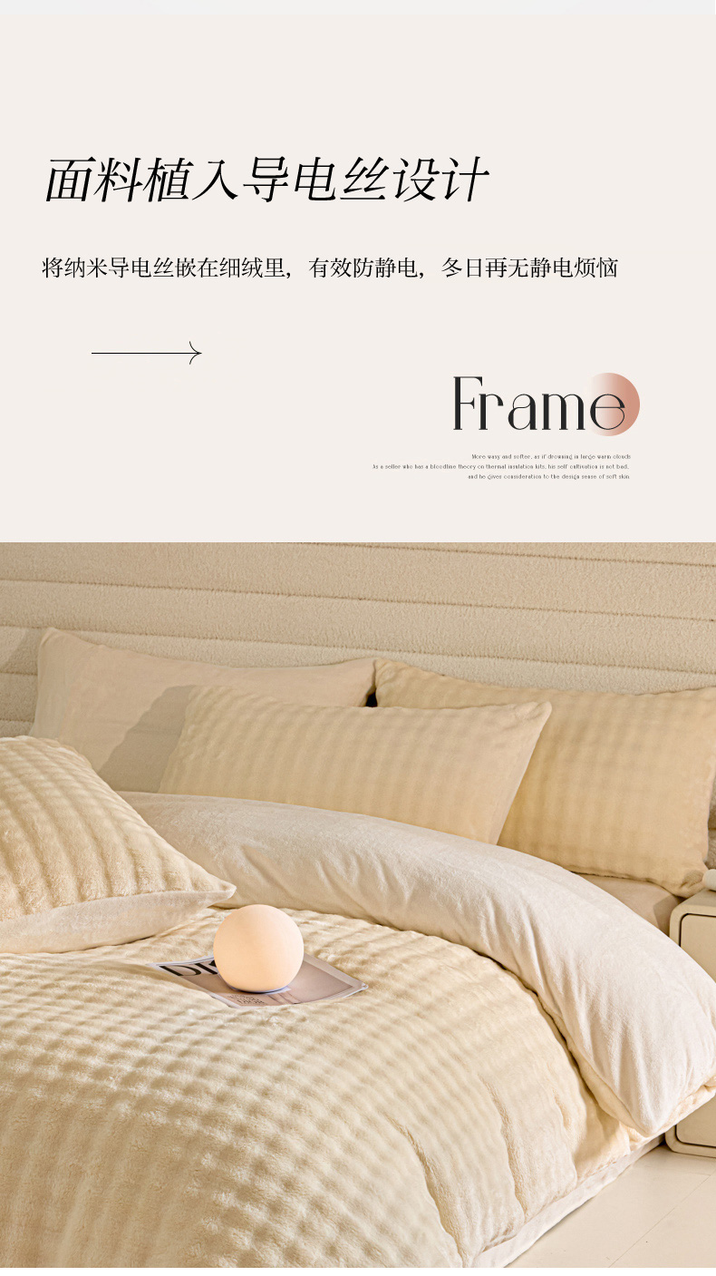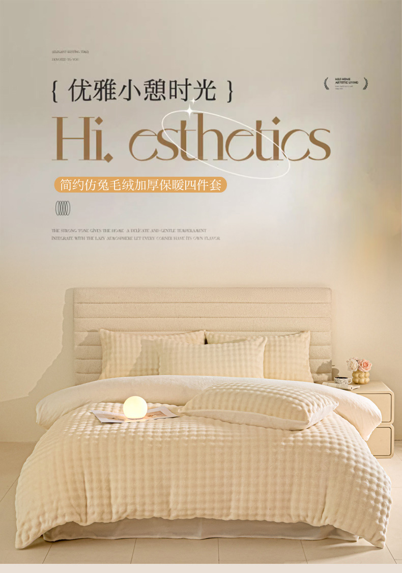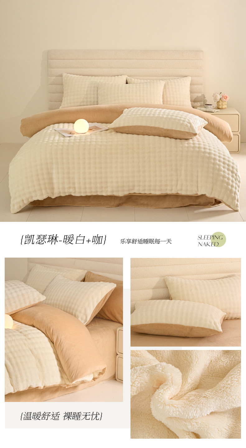 眠博士 2025新款兔绒牛奶绒加厚保暖四件套-凯瑟琳场景一 凯瑟琳-暖白