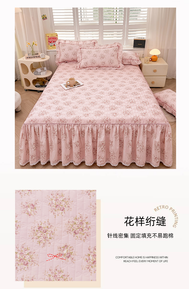 (总)缦彩 2025新款韩版A类全棉公主风纯棉夹棉床裙,缤纷绮梦,蒂芙尼,多丽粉,卡曼-粉,雾岛听风-粉,小萝莉