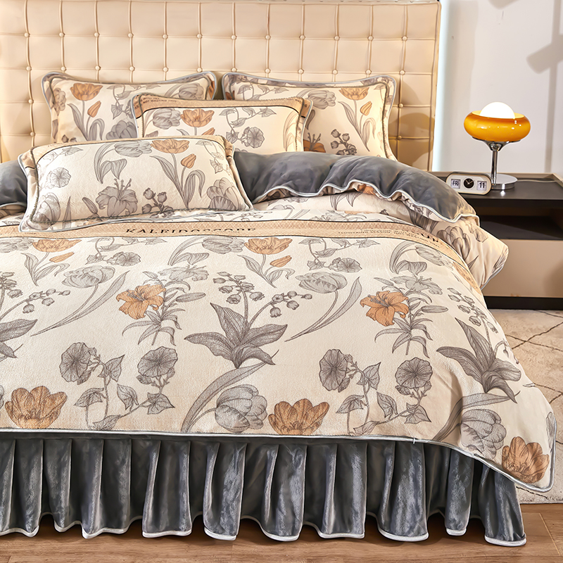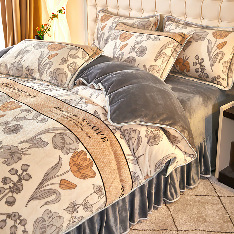 栩裕 2025新款7斤重牛奶金貂绒印花牛奶绒四件套 林间晨曲