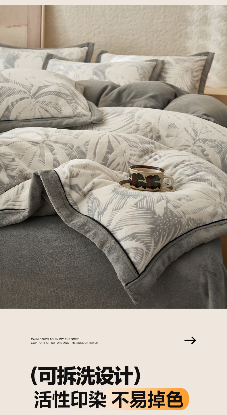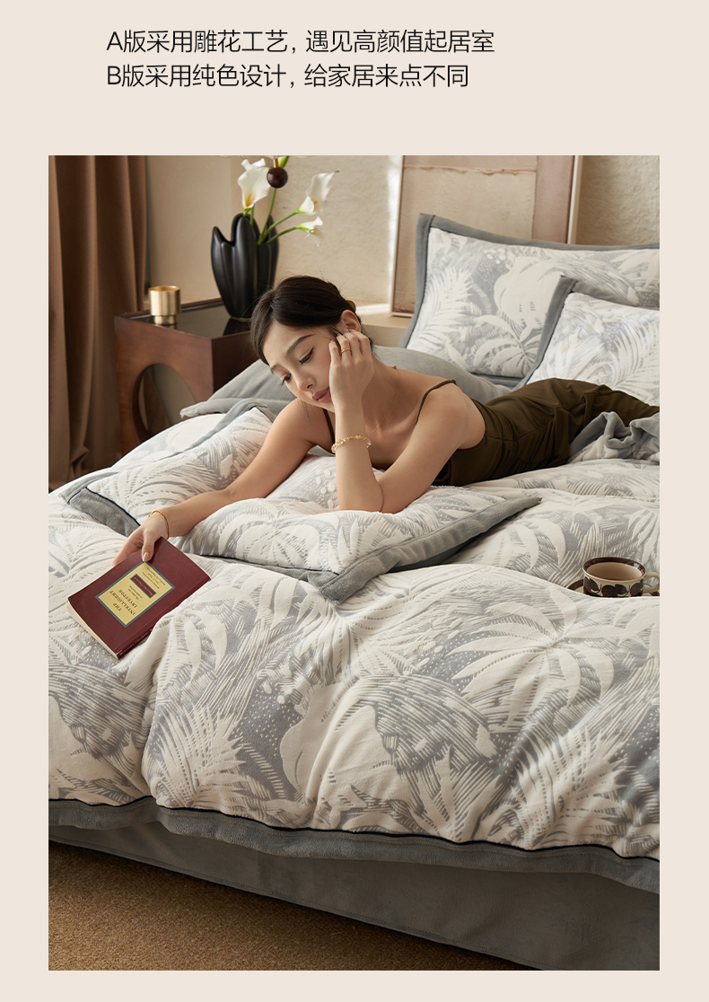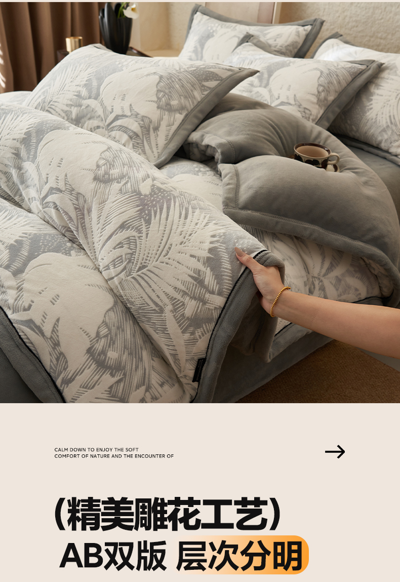• 91家纺网 家纺一手货源 找家纺 子由家居 2025新款230g牛奶绒染色雕花可拆洗被套冬被 雕花被套-漫步花庭