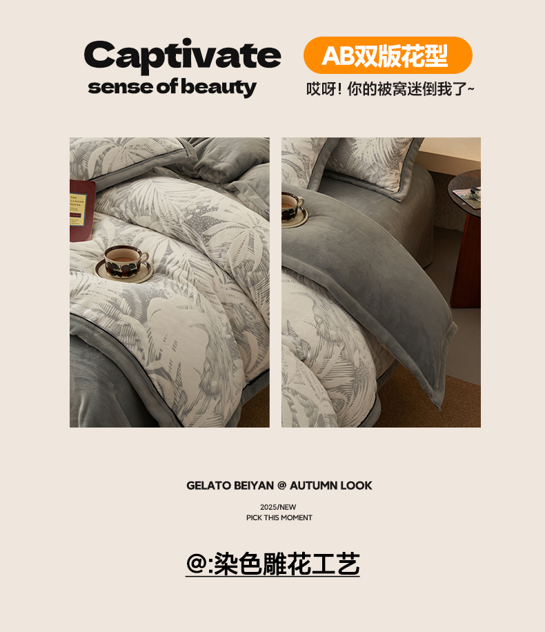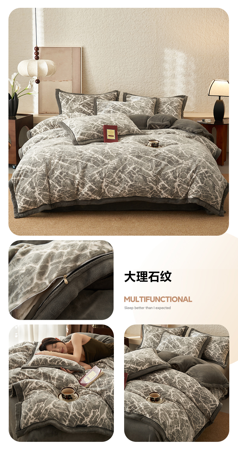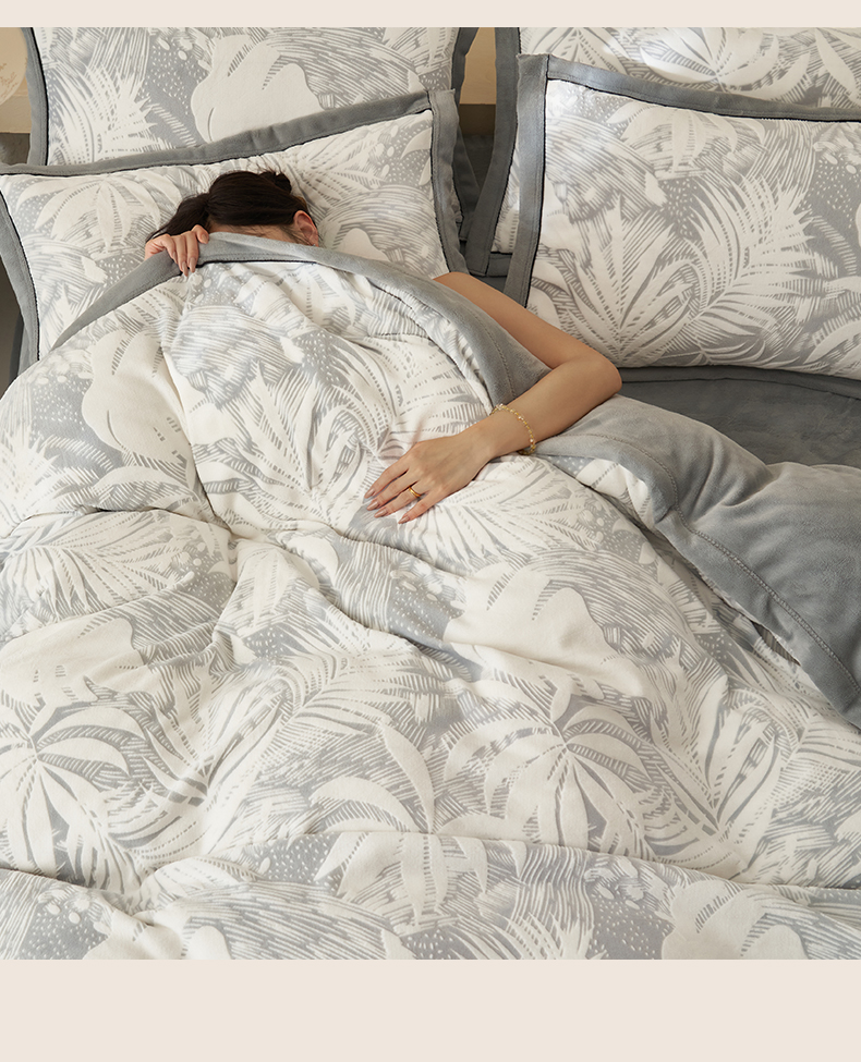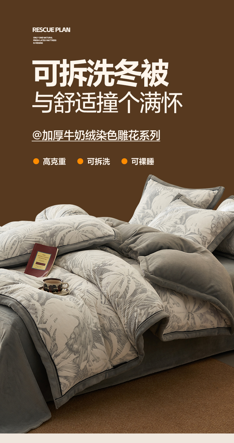 • 91家纺网 家纺一手货源 找家纺 子由家居 2025新款230g牛奶绒染色雕花可拆洗被套冬被 雕花被套-漫步花庭