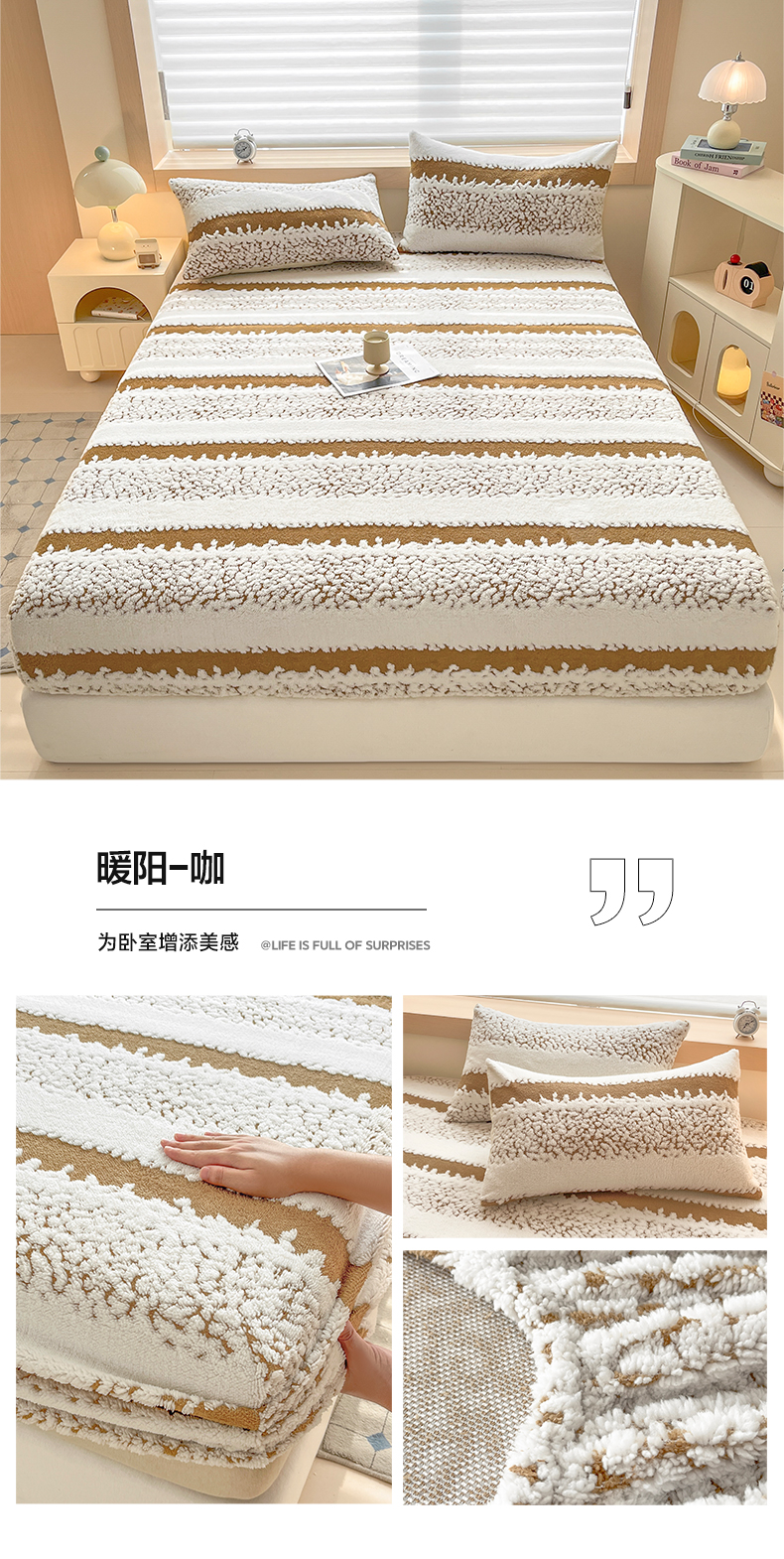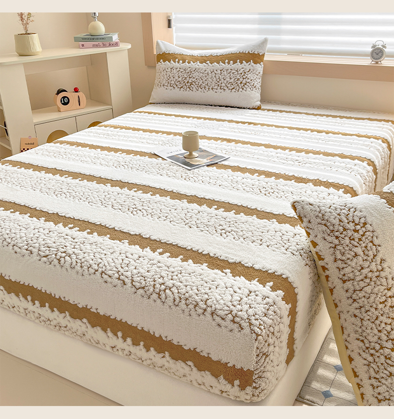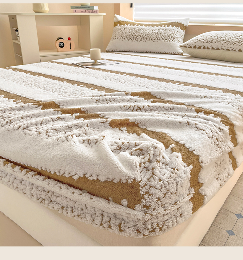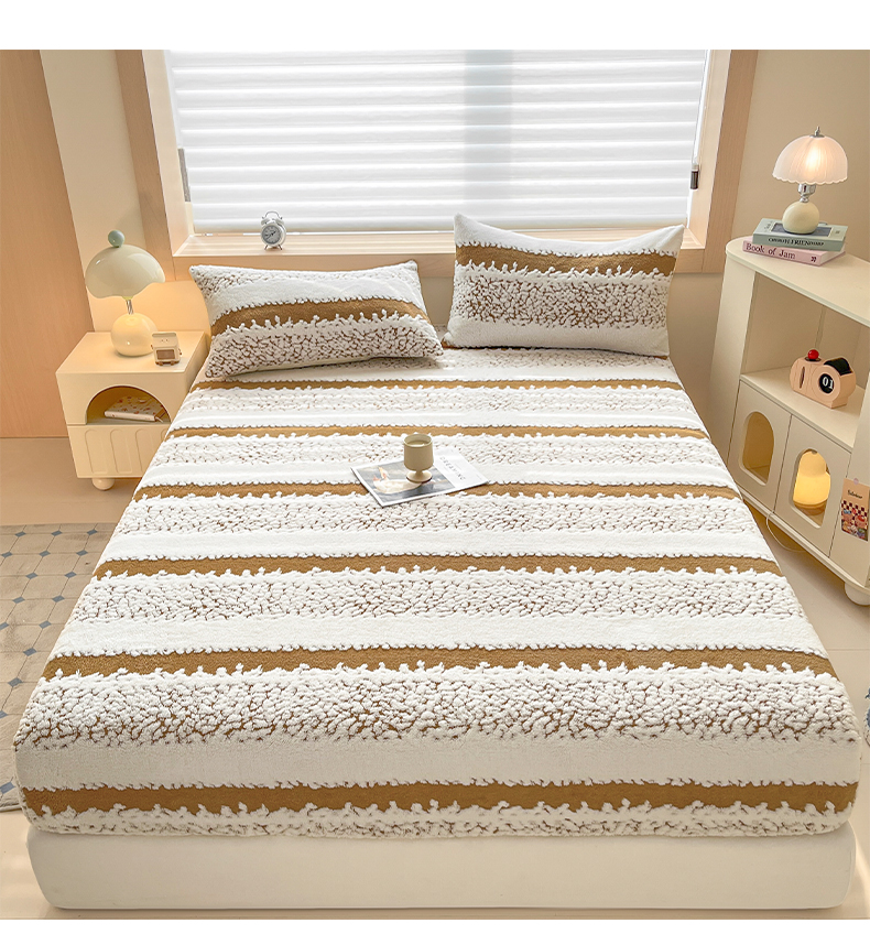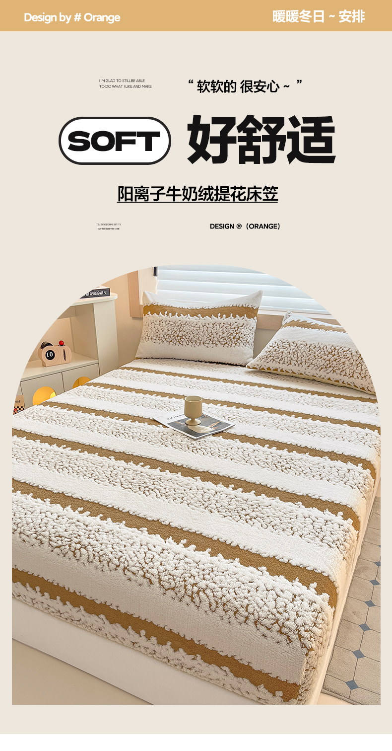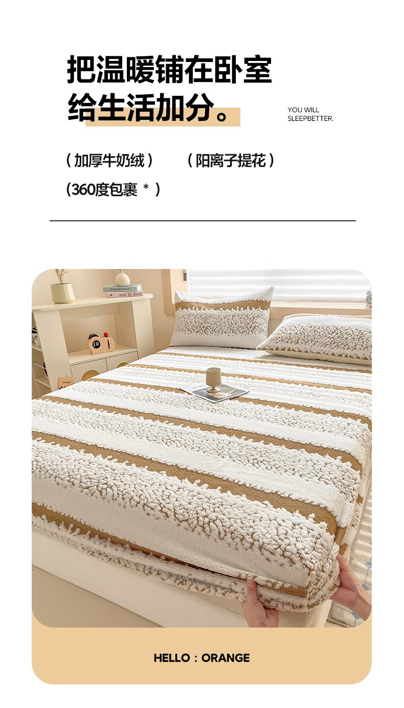 • 91家纺网 家纺一手货源 找家纺 卡伦家纺 2025新款阳离子提花牛奶绒床笠-暖阳系列 暖阳-咖