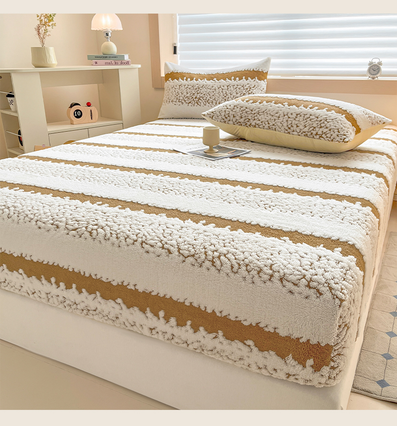 卡伦家纺 2025新款阳离子提花牛奶绒床笠-暖阳系列 暖阳-咖