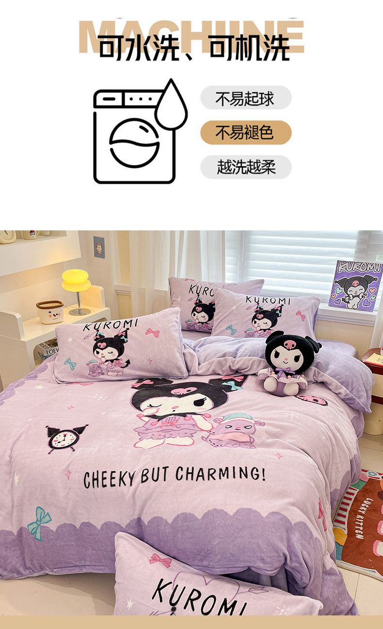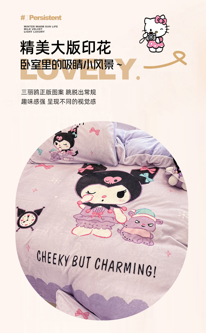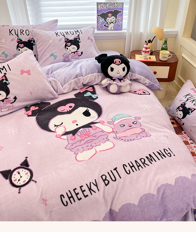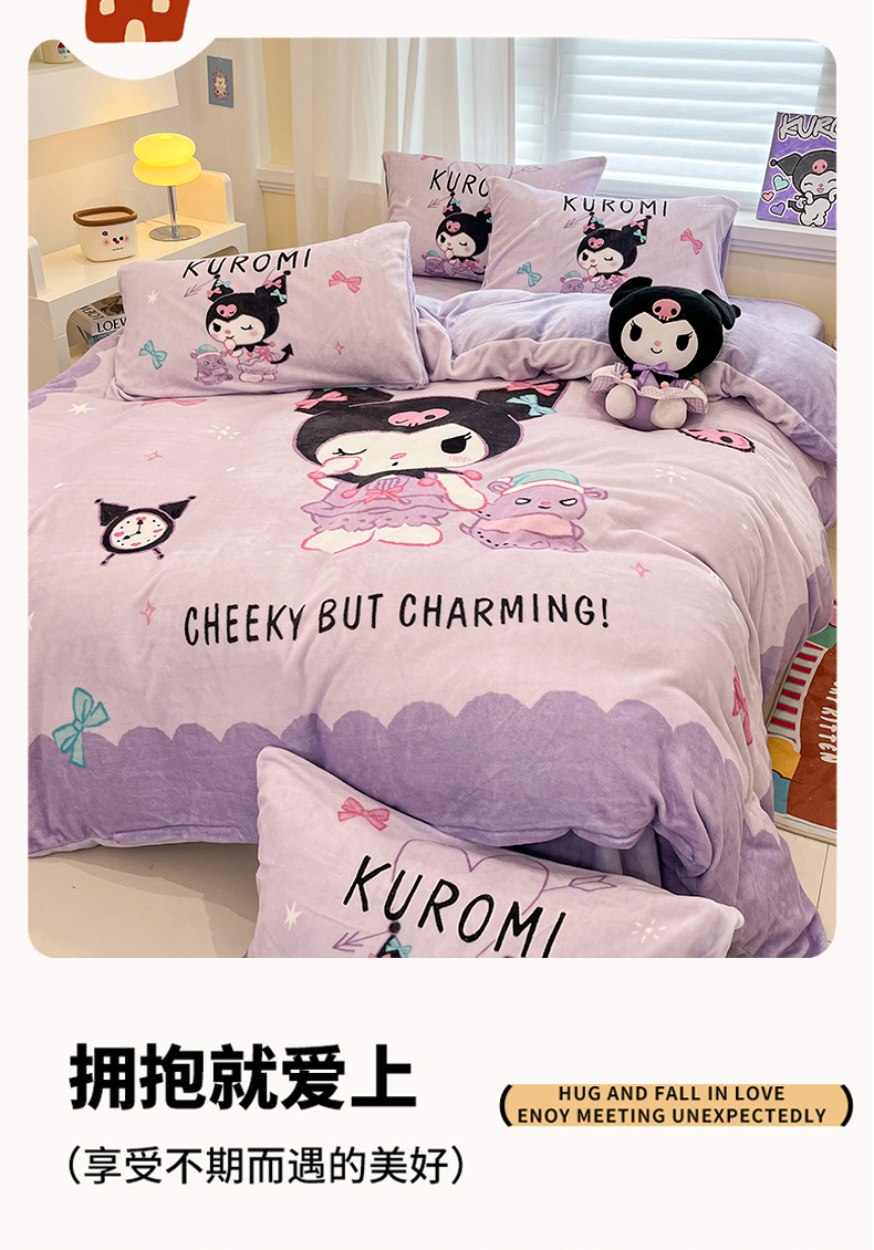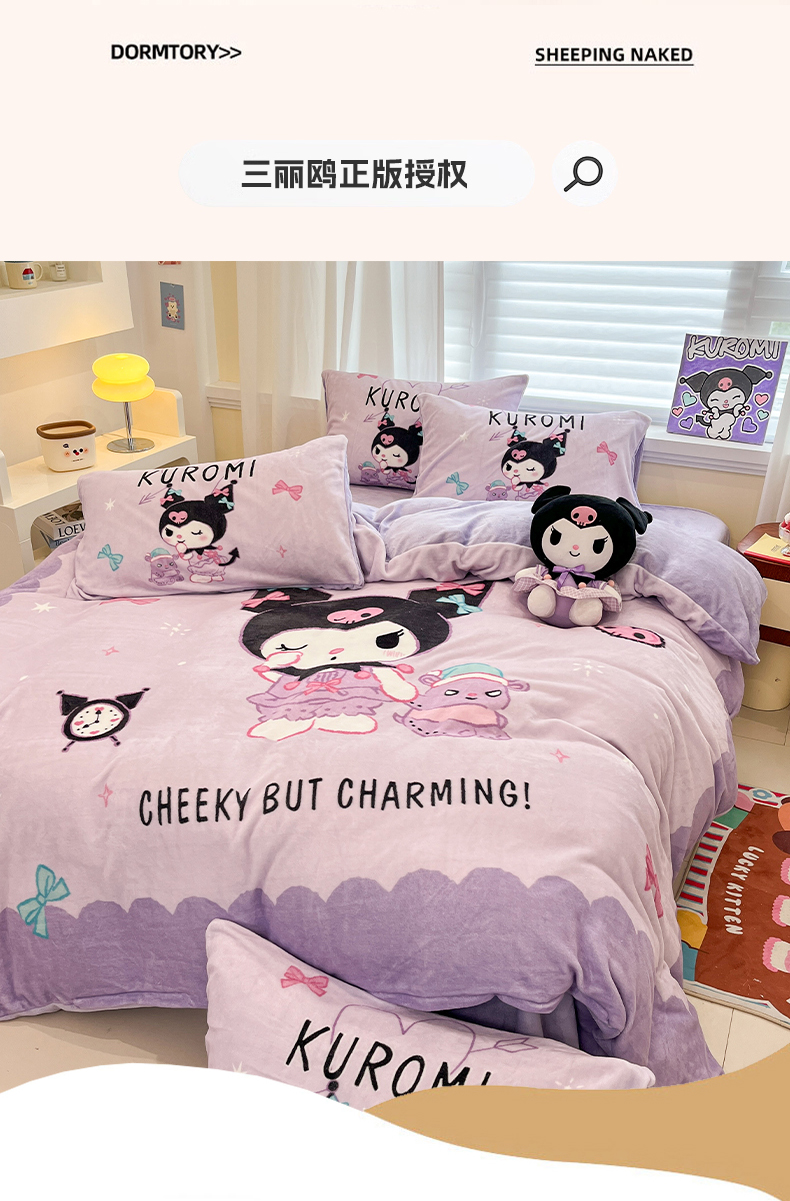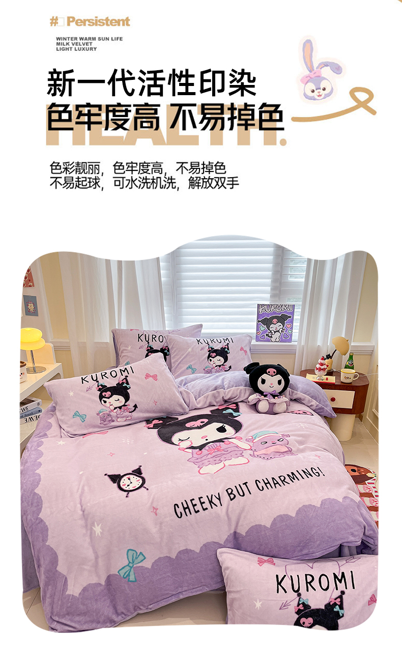 当前位置: 91家纺网 > 商品网购 > 床品套件 > 四件套 > 牛奶绒四件套 > 金爱家 2025新品大版卡通平网数码印花加厚高克重牛奶绒皮卡丘系列四件套 绒大版-巴库库洛米
