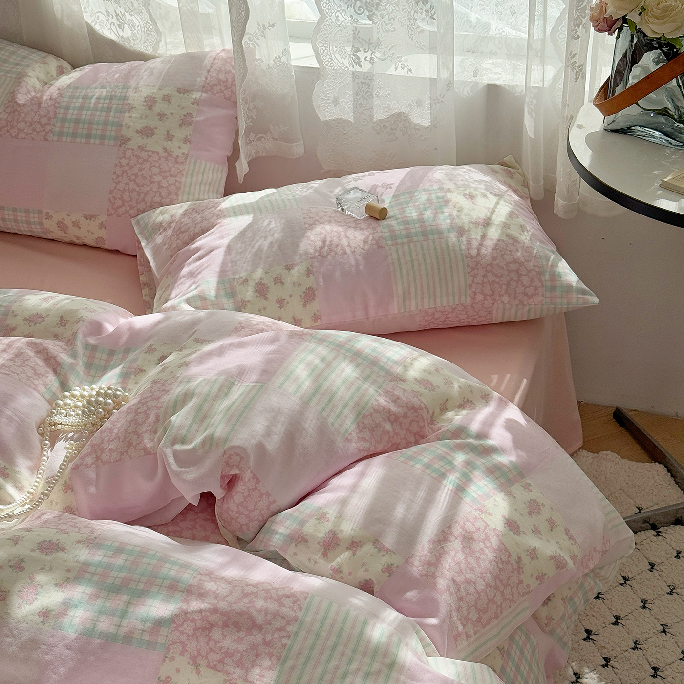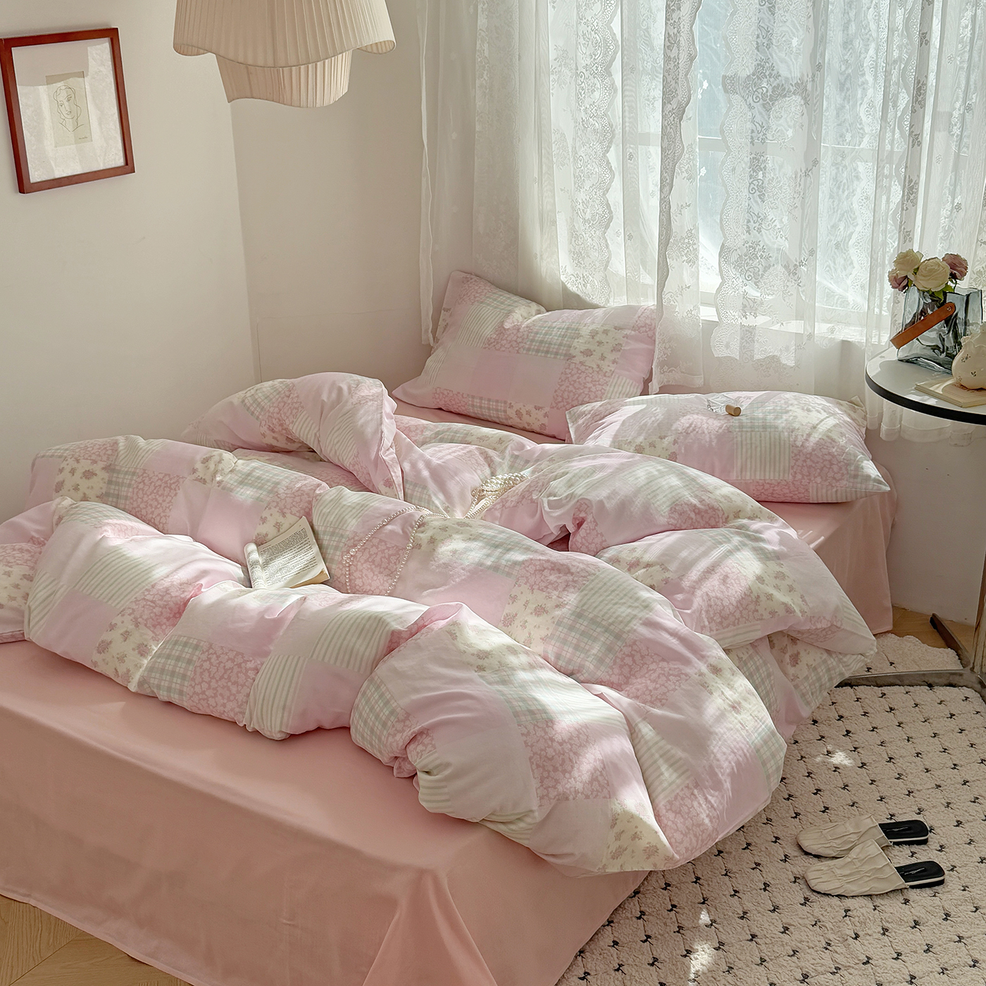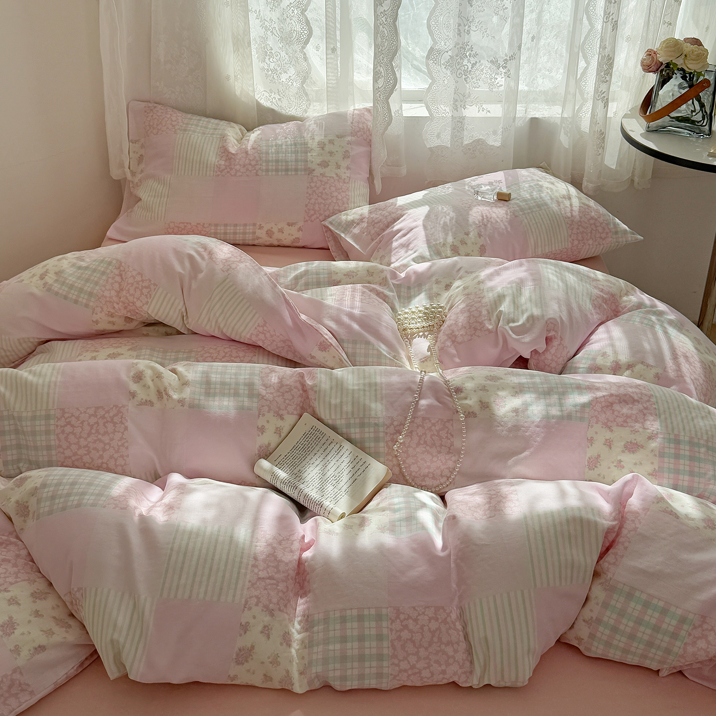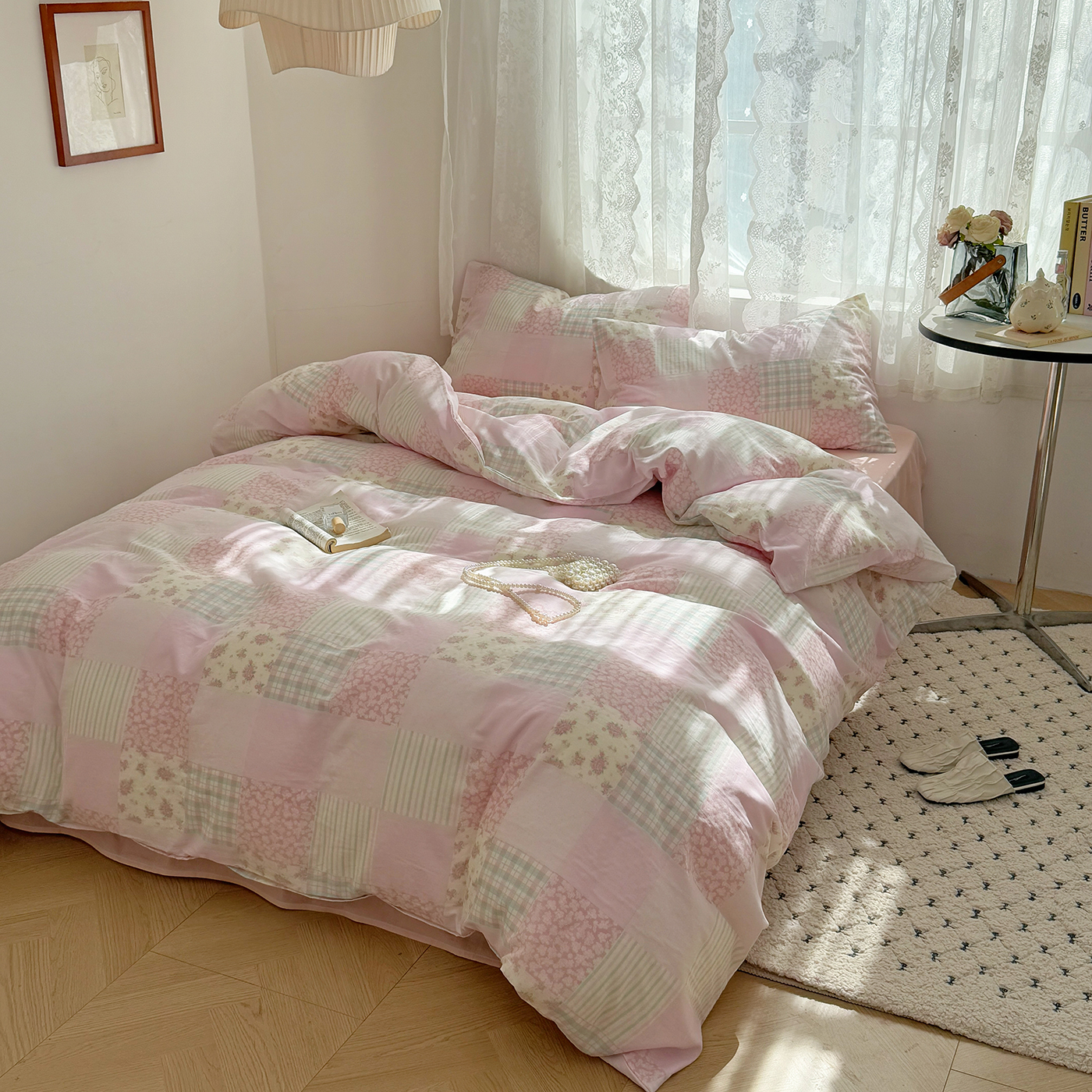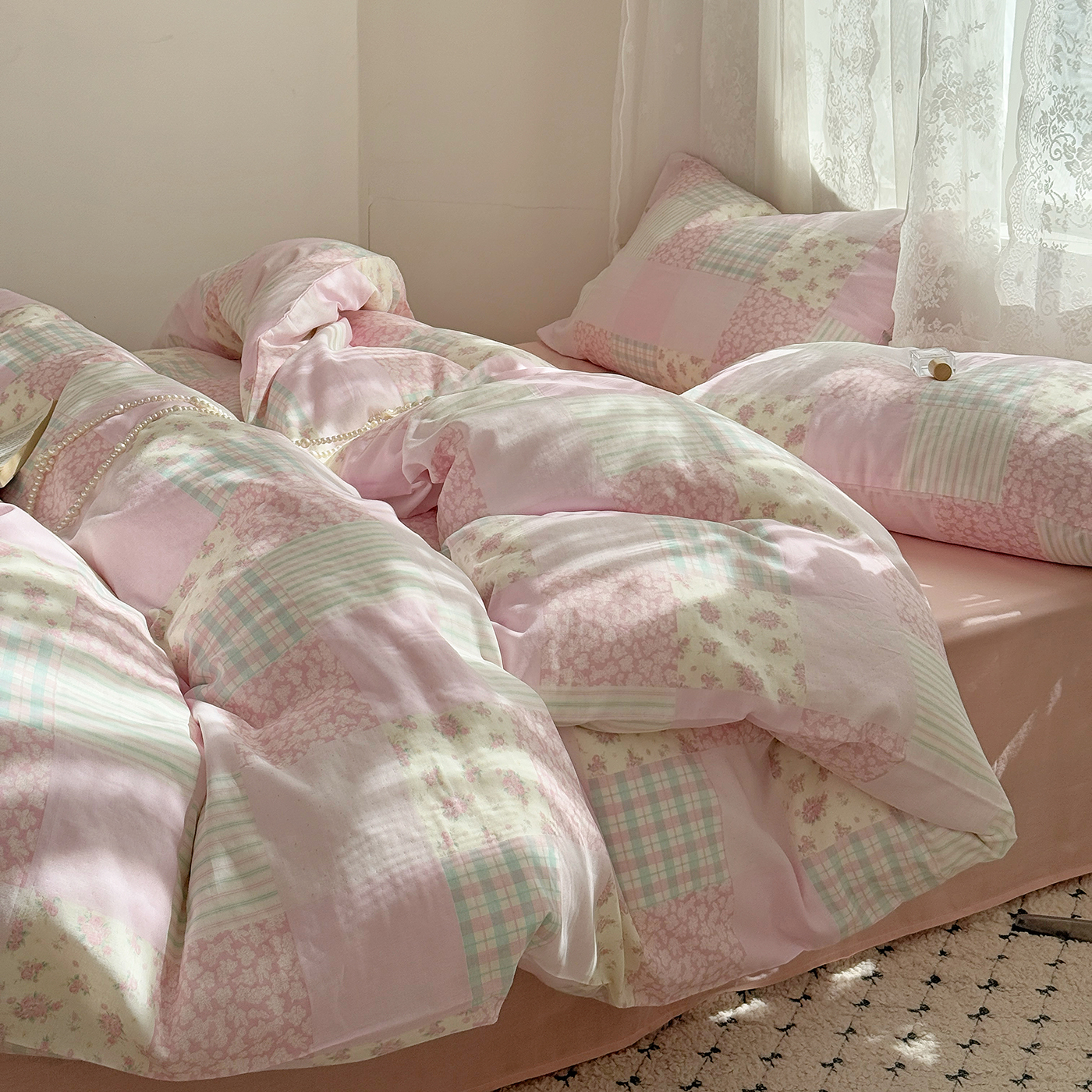 当前位置: 91家纺网 > 商品网购 > 床品套件 > 四件套 > 全棉普通四件套 > 麦伦 2025年新品 --全棉有氧双层纱简约款系列 百福-粉