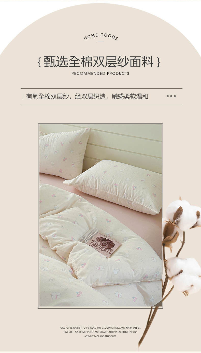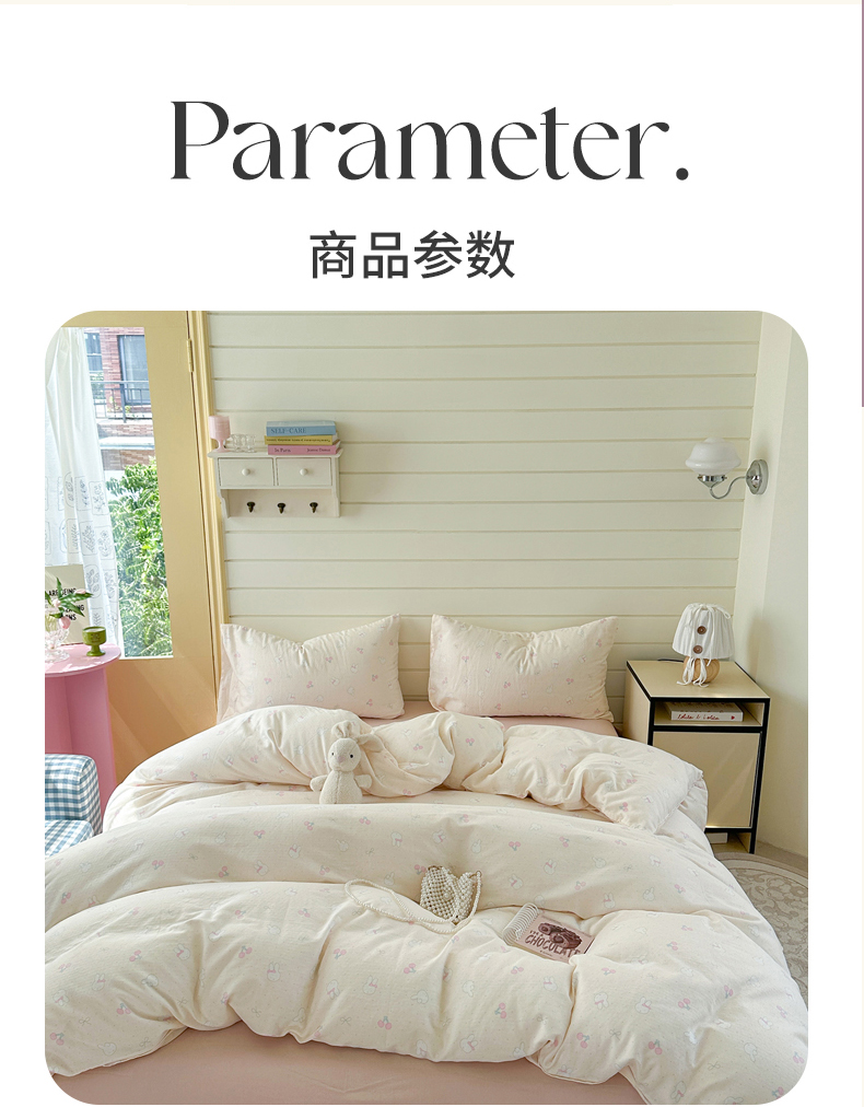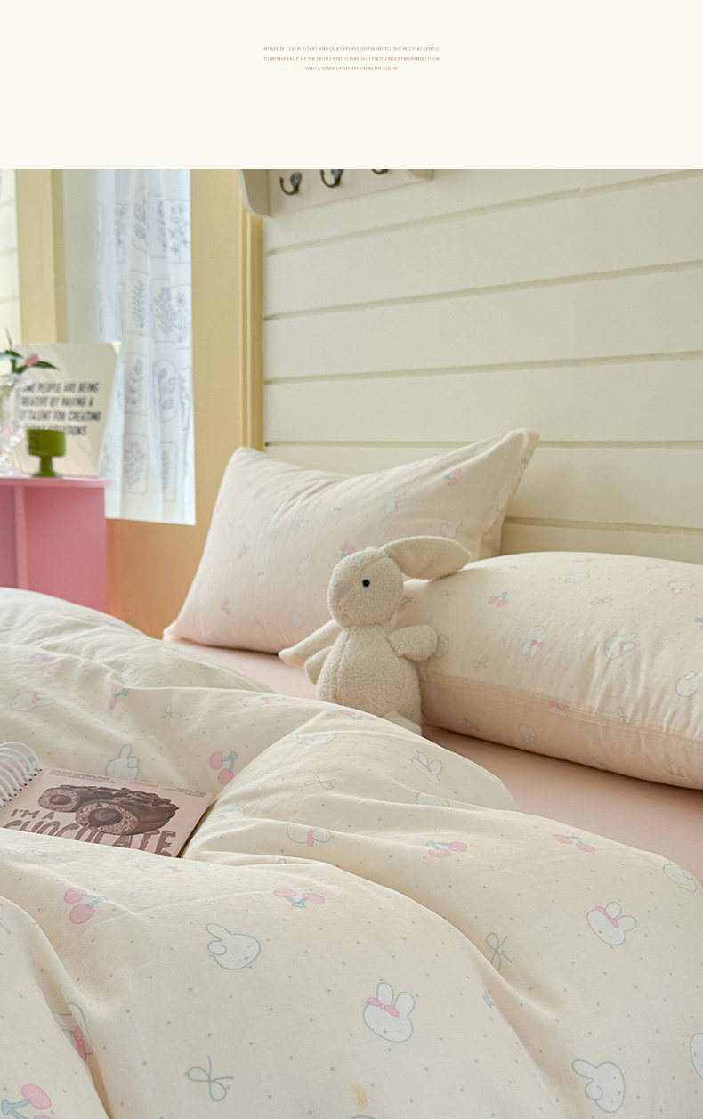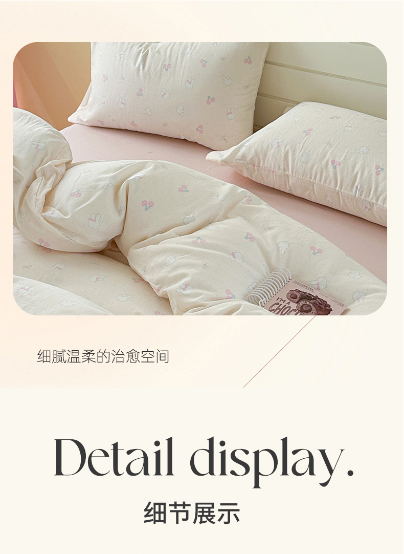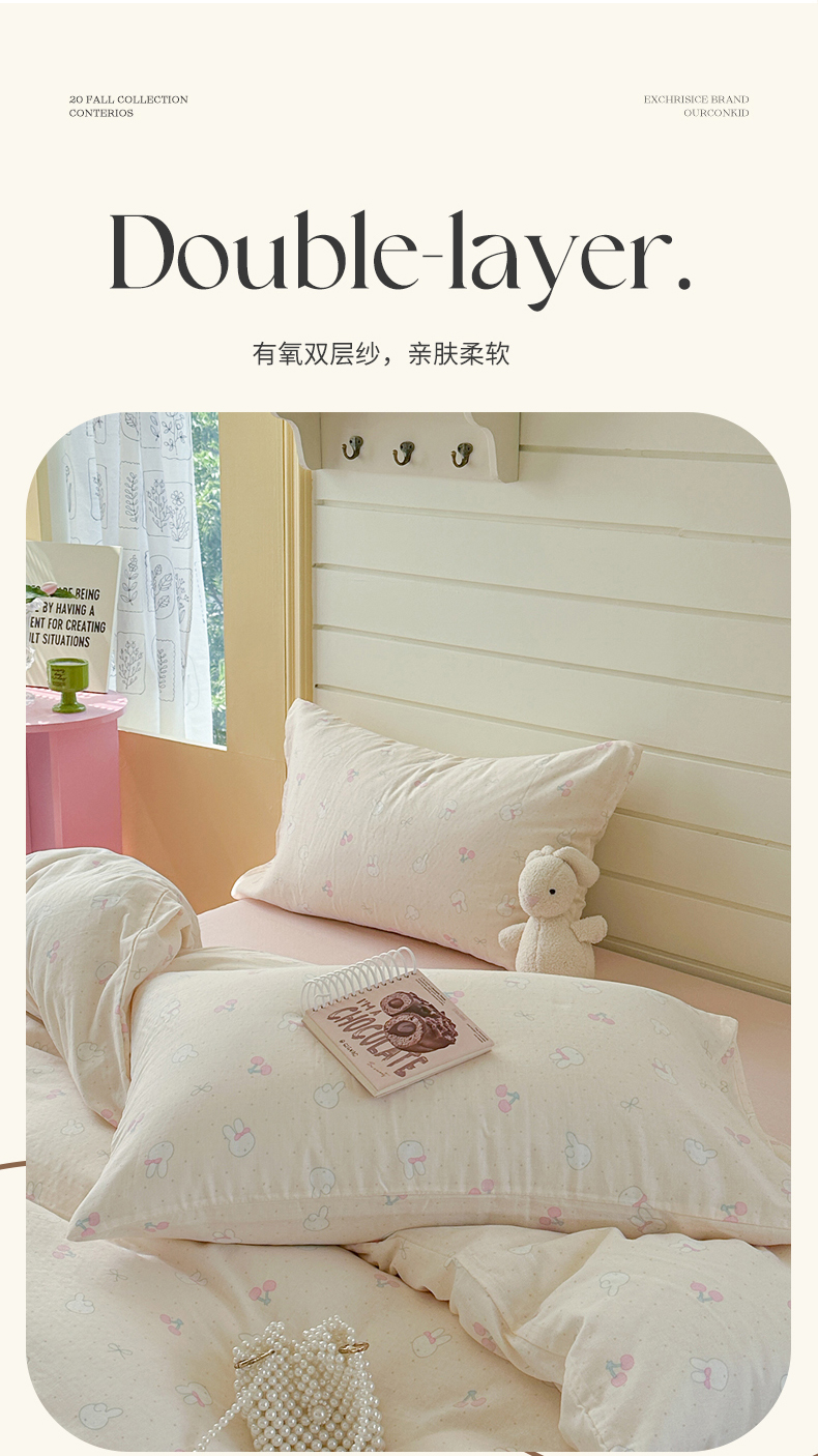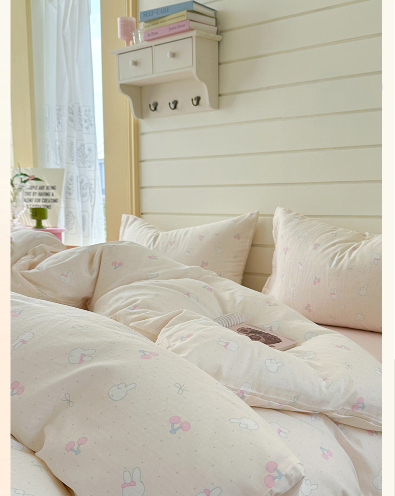 当前位置: 91家纺网 > 商品网购 > 床品套件 > 四件套 > 全棉普通四件套 > 麦伦 2025年新品 --全棉有氧双层纱简约款系列 樱桃小兔 米白