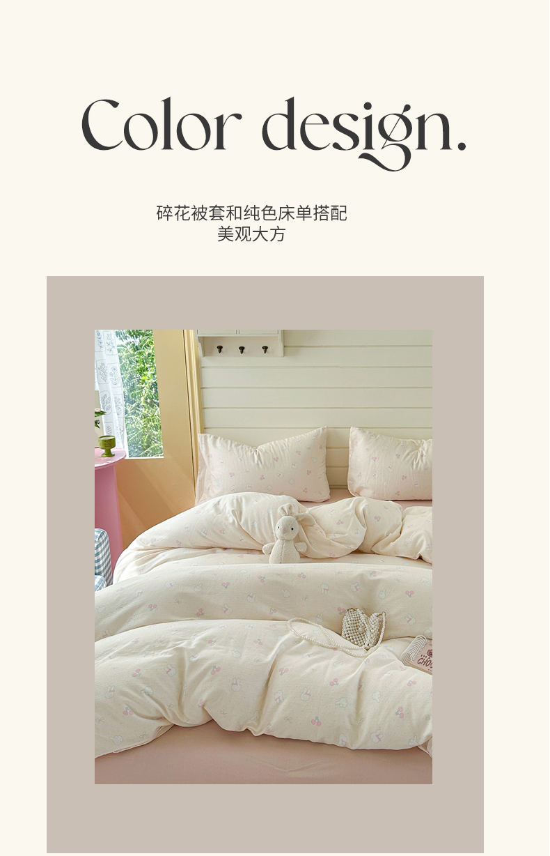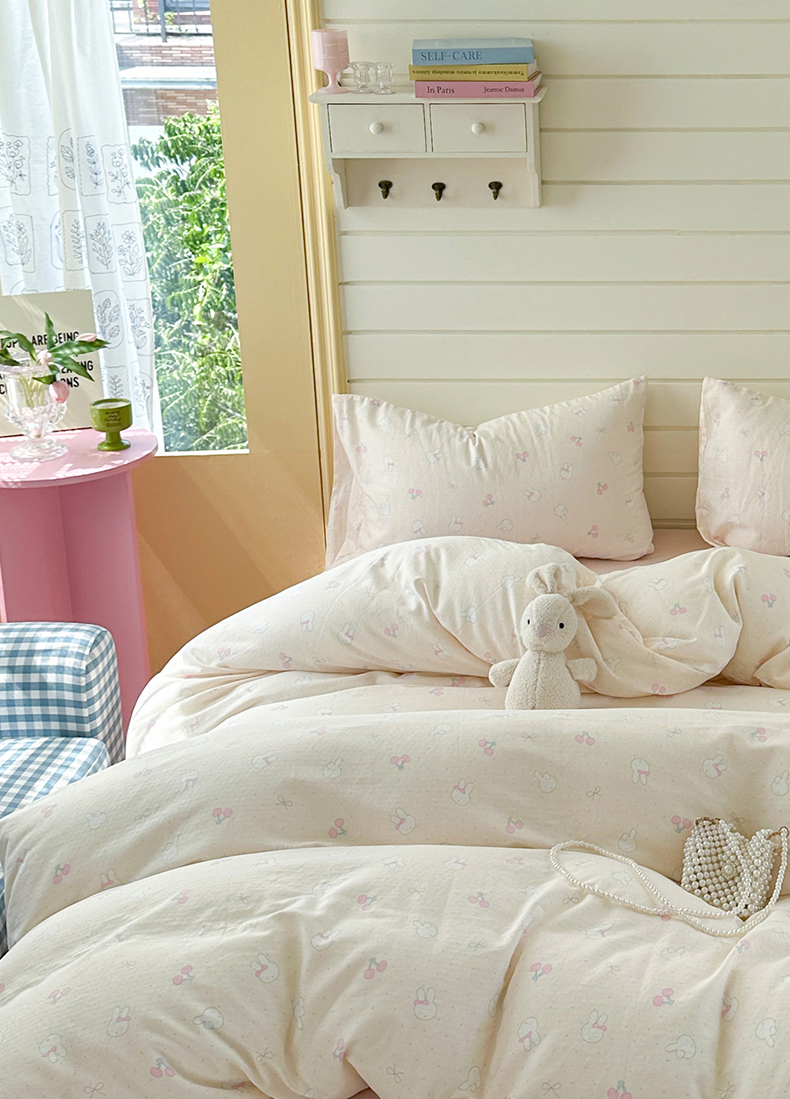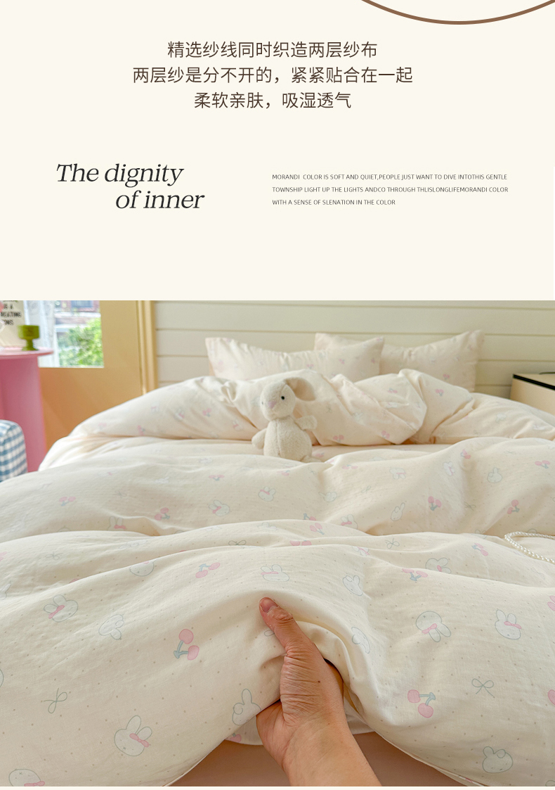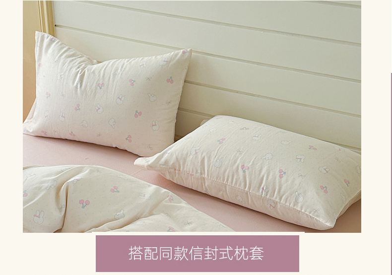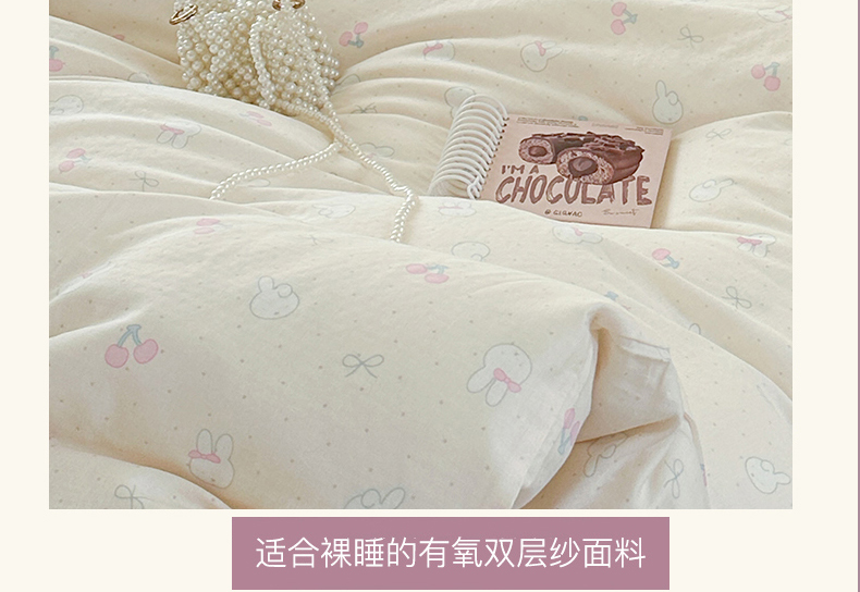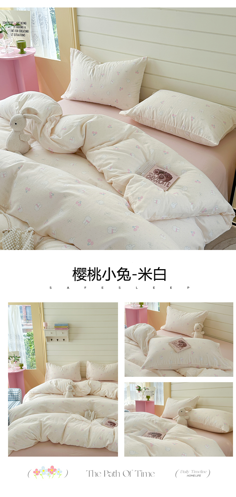 当前位置: 91家纺网 > 商品网购 > 床品套件 > 四件套 > 全棉普通四件套 > 麦伦 2025年新品 --全棉有氧双层纱简约款系列 樱桃小兔 米白
