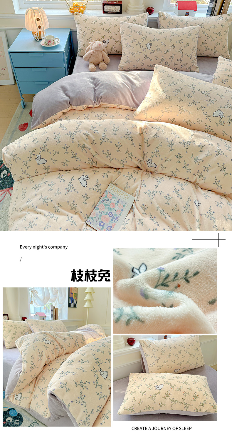 当前位置: 91家纺网 > 商品网购 > 床品套件 > 四件套 > 牛奶绒四件套 > 水木坊 2025新款A加厚牛奶绒印花四件套-含买家秀 茉莉小象