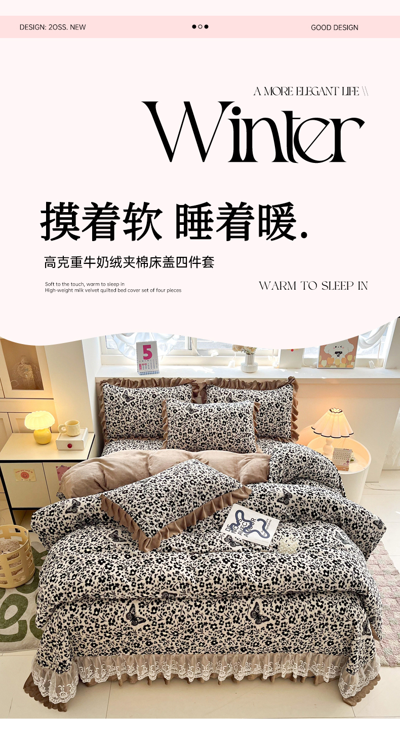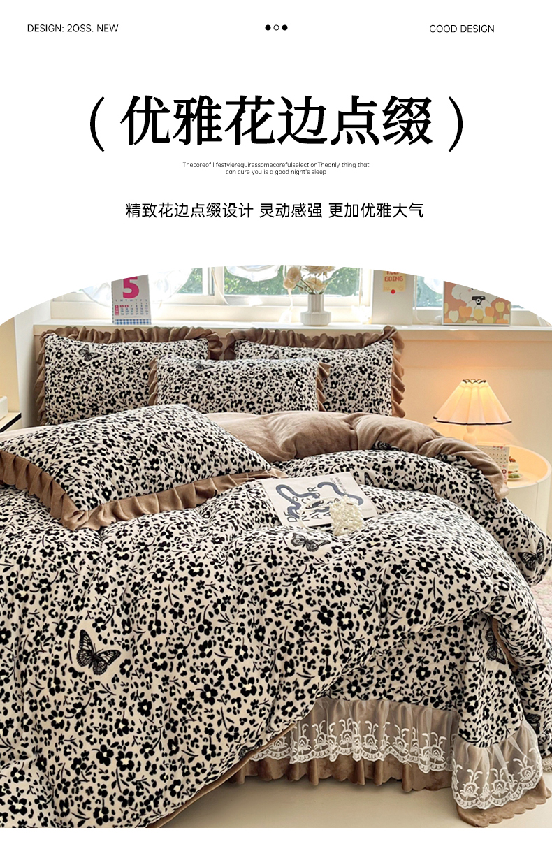 当前位置: 91家纺网 > 商品网购 > 床品套件 > 四件套 > 牛奶绒四件套 > 铠畅 2025新款加厚牛奶绒床盖四件套 翩翩起舞