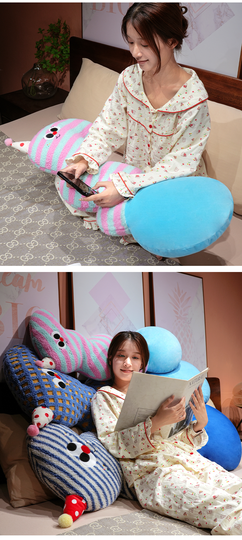 (总)仟亿莱 2026新款惊讶苹果小虫大脚床头靠垫,拥抱惊讶半果,拥抱惊讶全果,组合图(仅供展示不可下单)