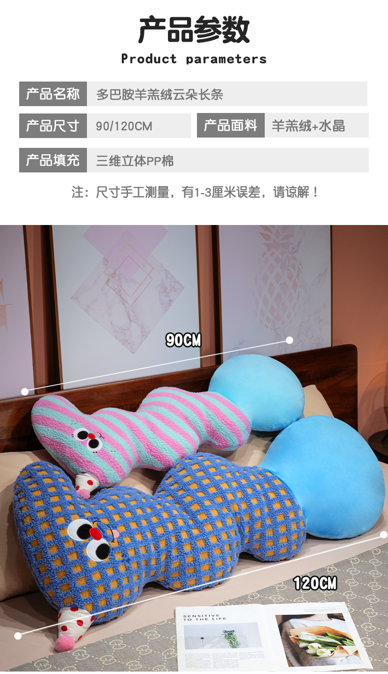 商品名称:仟亿莱 2025新款多巴胺羊羔绒大眼云朵长条抱枕 蓝粉大眼云朵