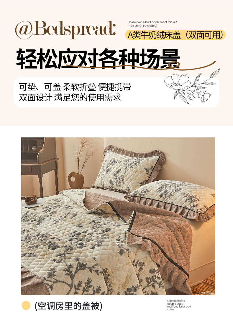 当前位置: 91家纺网 > 商品网购 > 床品套件 > 三件套 > 宜凡家纺 2025新款牛奶绒床盖三件套(双面可用) 俏枝颜