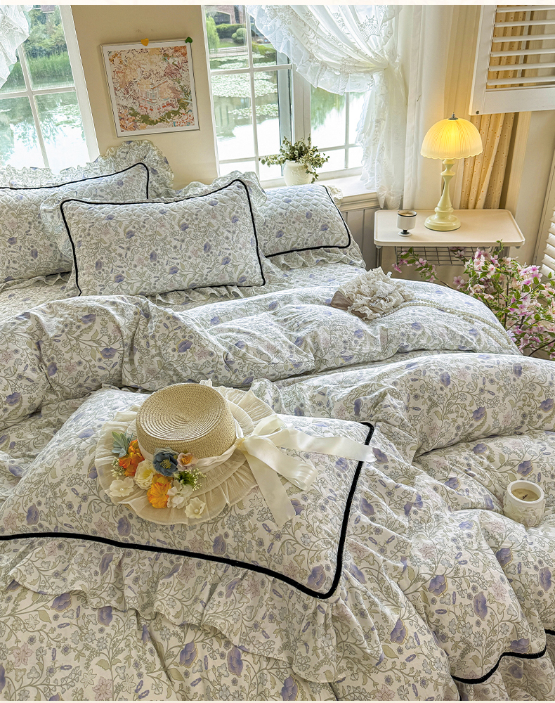 (总)宜凡家纺 2025新款全棉数码印花床裙四件套系列一,静若幽兰,浮云织梦,梦幻花园,陌上花开