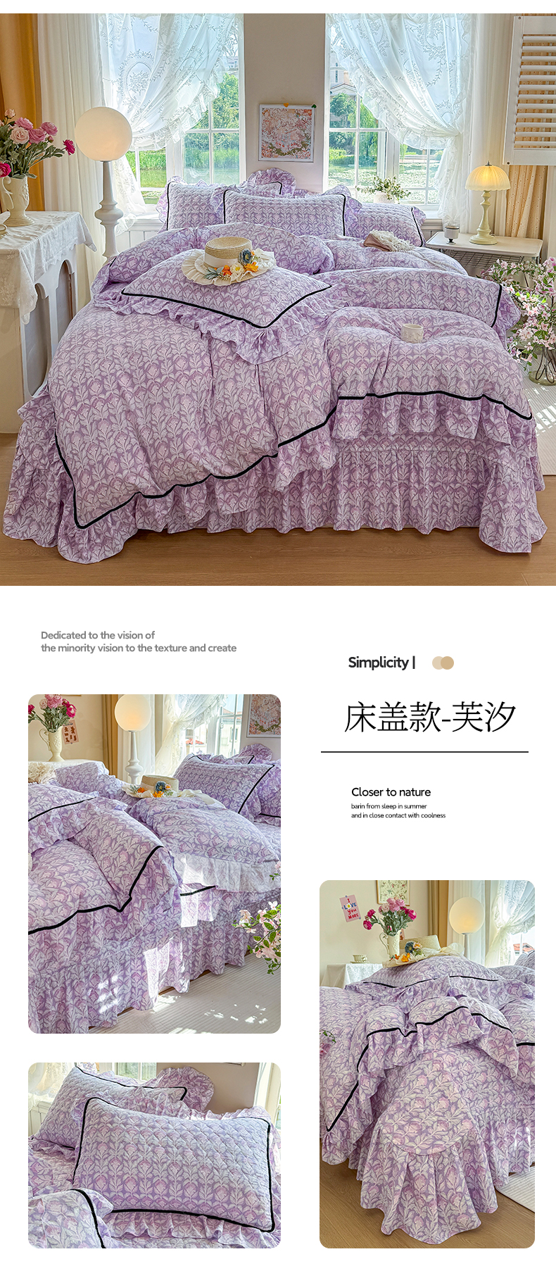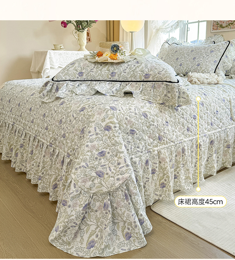 (总)宜凡家纺 2025新款全棉数码印花床裙三件套系列一,静若幽兰,浮云织梦,梦幻花园,陌上花开