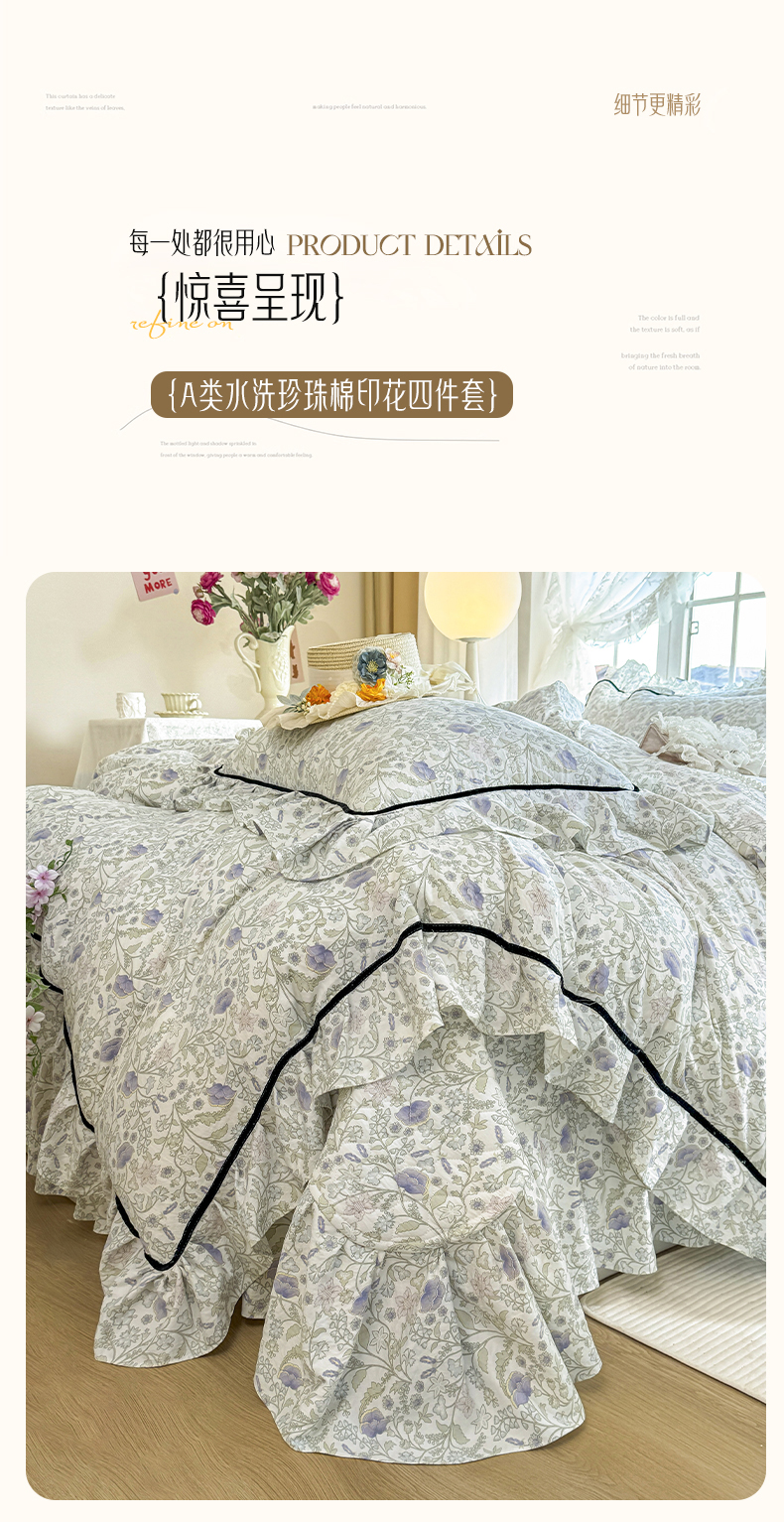 商品名称:(总)宜凡家纺 2025新款A类水洗珍珠棉床盖四件套