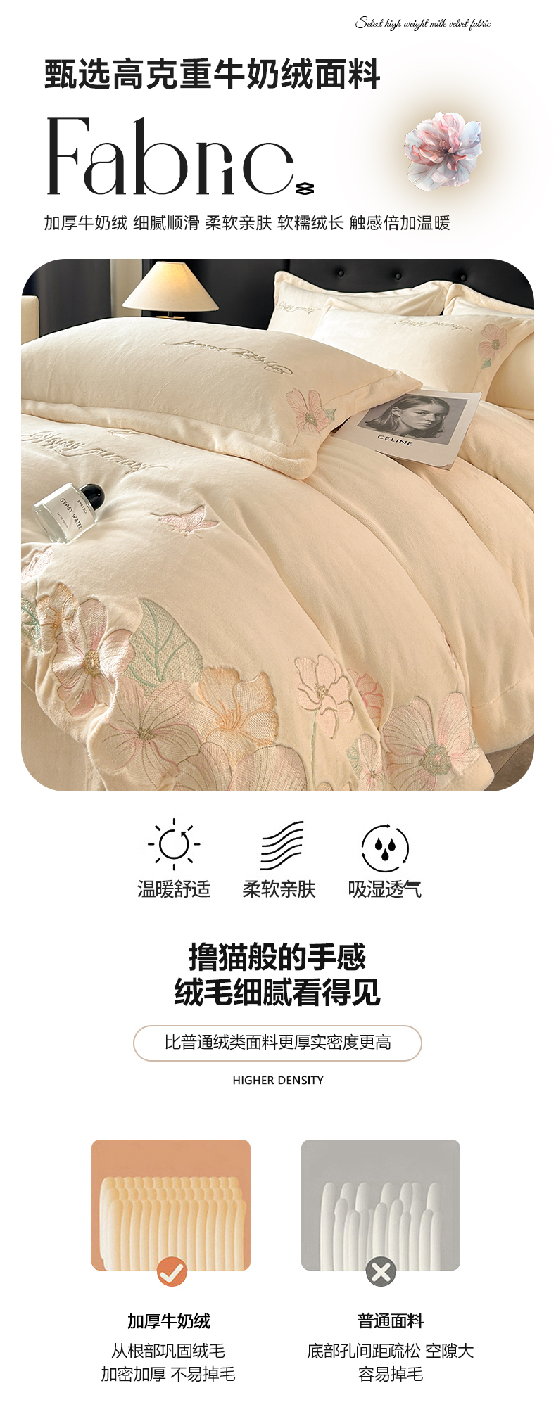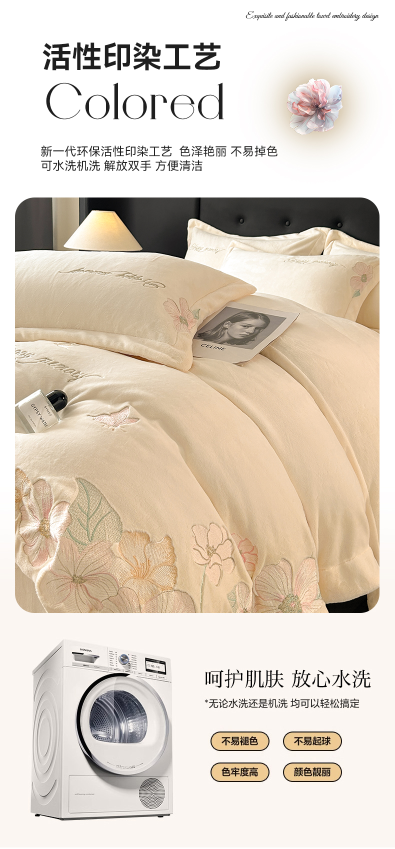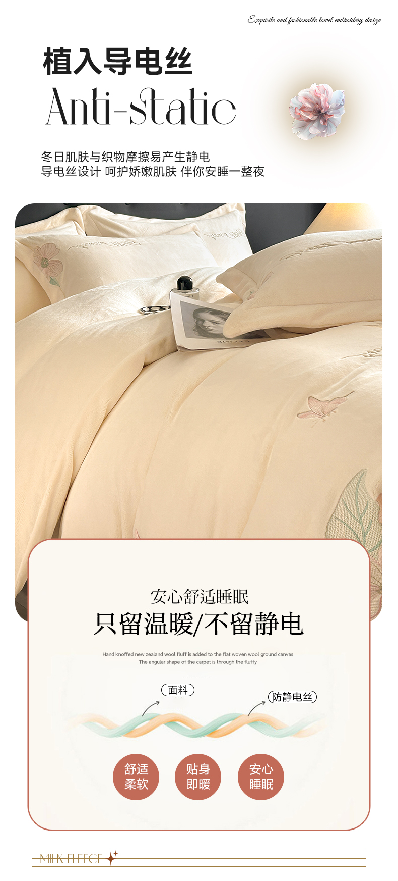 商品名称:恋绒家纺 2025新款牛奶绒刺绣四件套-花舞 月牙黄