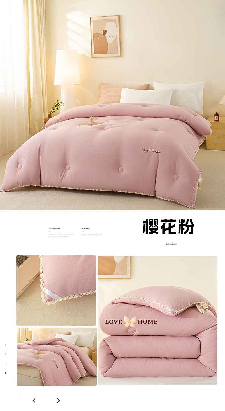 商品名称:欧雅搁家纺 2025新款针织棉豆豆被冬被子被芯-蝶舞 樱花粉