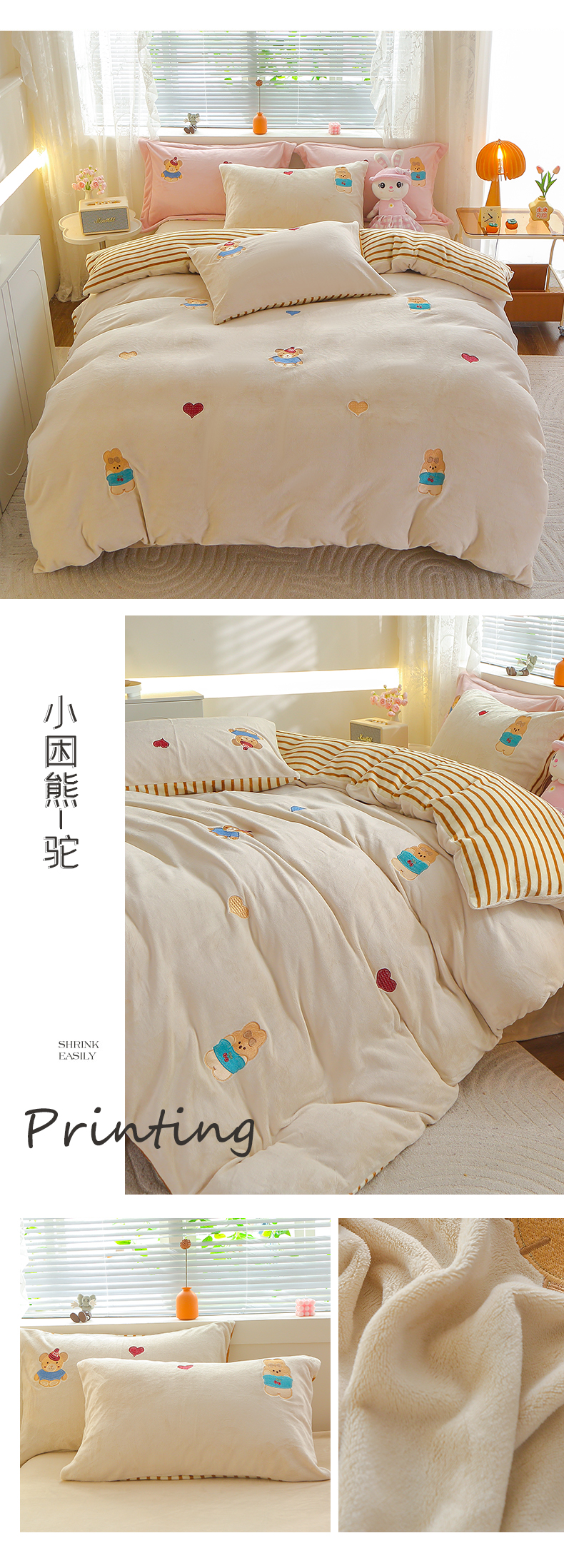 (总)美洲琳 2025新款卡通牛奶绒高克重四件套,戈薇狗-蓝,戈薇狗-浅紫,可爱多-粉,可爱多-紫,奶茶-湖兰,奶茶-水绿,奇奇的礼物-米杏,小困熊-粉,小困熊-驼,小小窝-豆沙,星月小兔-浅粉,熊暖暖-米黄,熊暖暖-浅灰