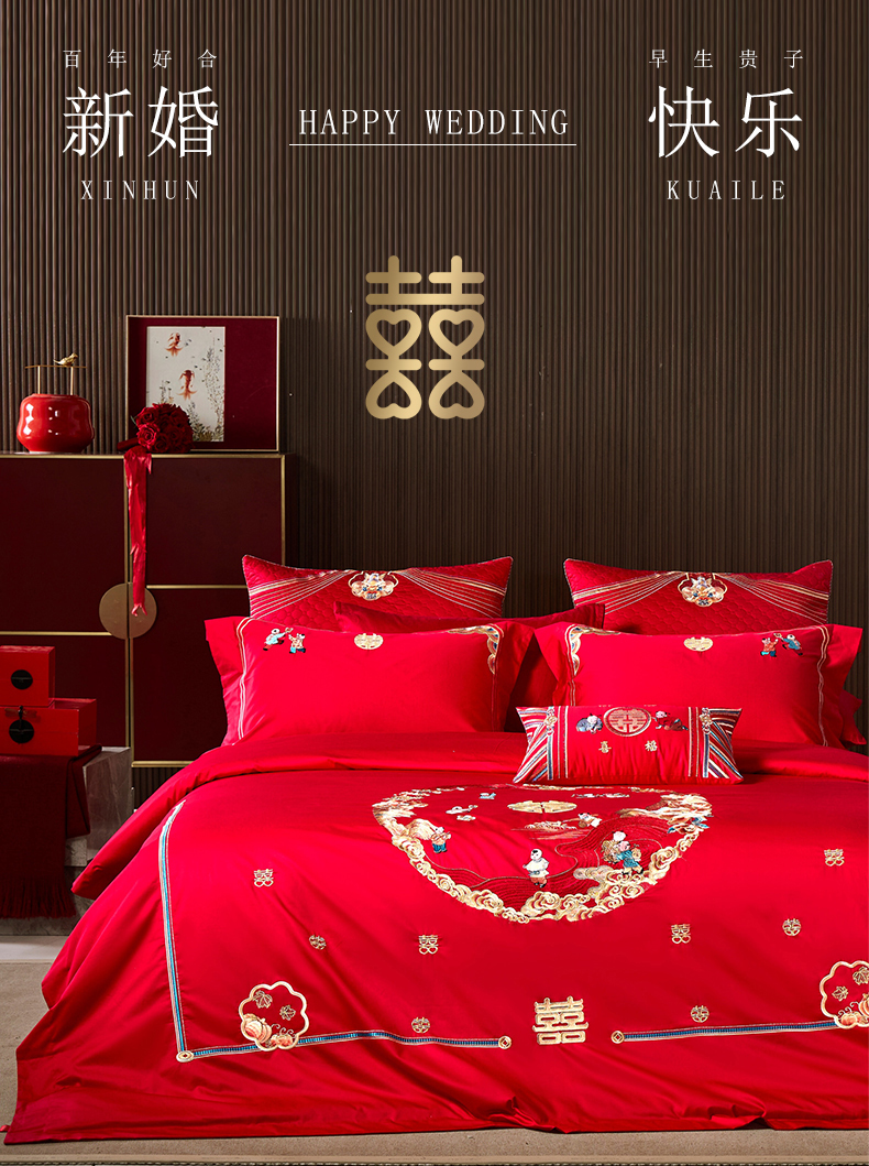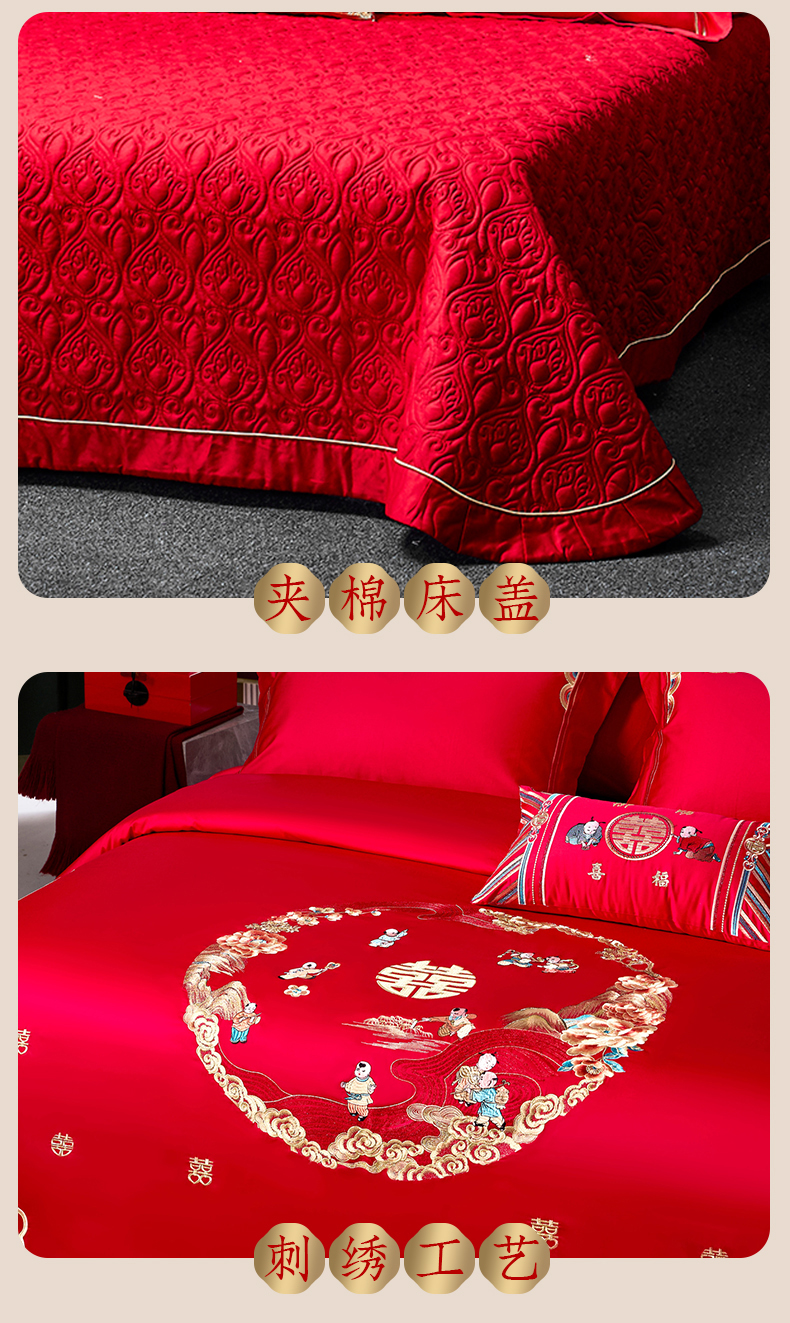 当前位置: 91家纺网 > 商品网购 > 床品套件 > 四件套 > 长绒棉四件套 > 高大尚婚庆馆 2025秋冬新款长绒棉臻棉系列婚庆款多件套富贵满园