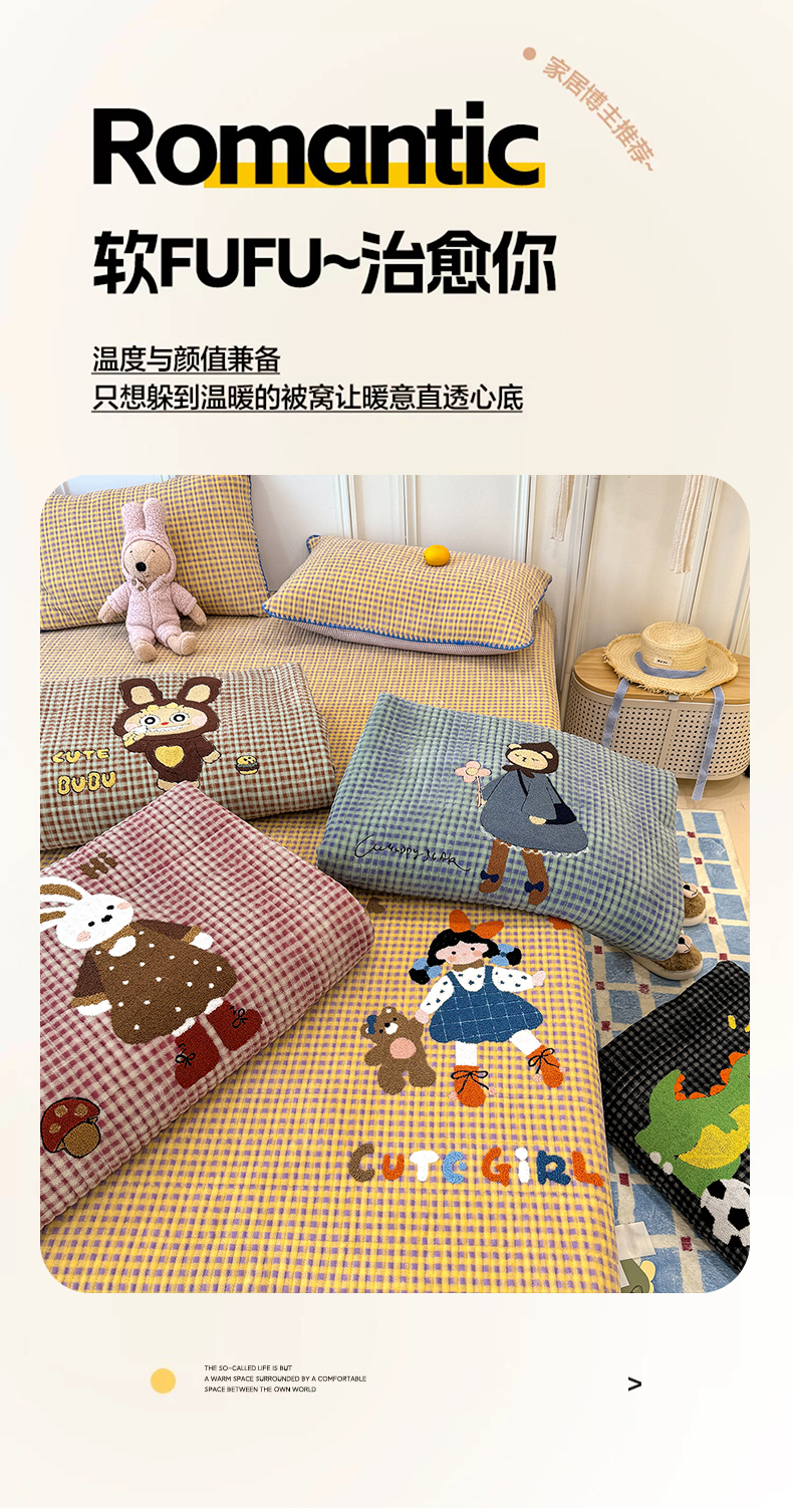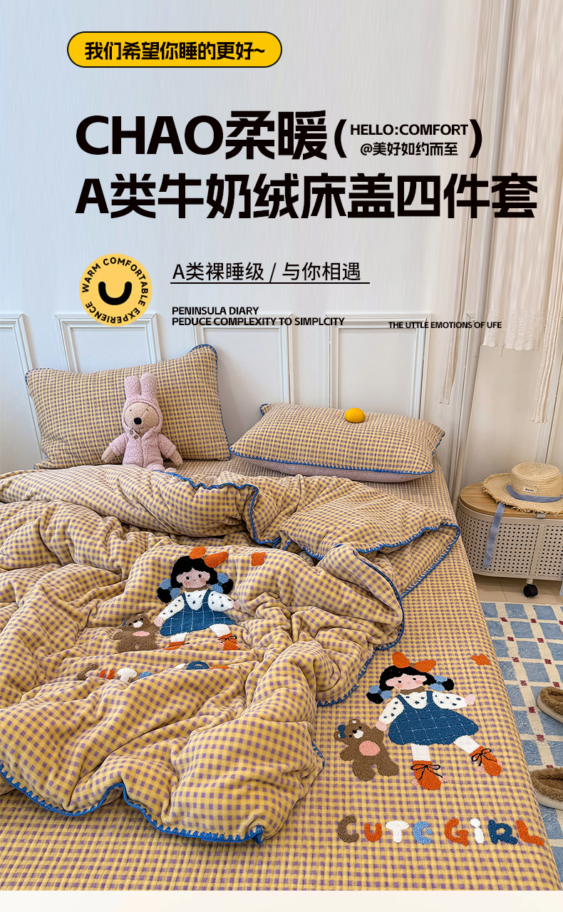 当前位置: 91家纺网 > 商品网购 > 床品套件 > 四件套 > 牛奶绒四件套 > 赫梵茜 2025新款赫梵茜毛巾绣贝壳绣工艺牛奶绒床盖四件套正反可用 小女孩