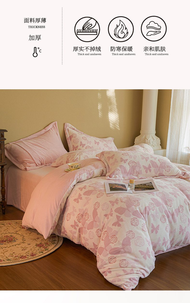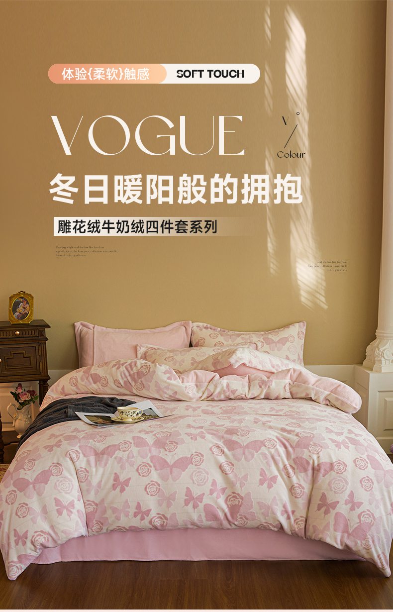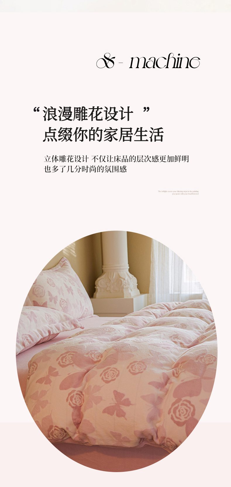 当前位置: 91家纺网 > 商品网购 > 床品套件 > 四件套 > 牛奶绒四件套 > 菡宝 【主推第三批 带质检报告】A类全消光230g雕花绒牛奶绒四件套支持定制定做尺寸 蝶恋花