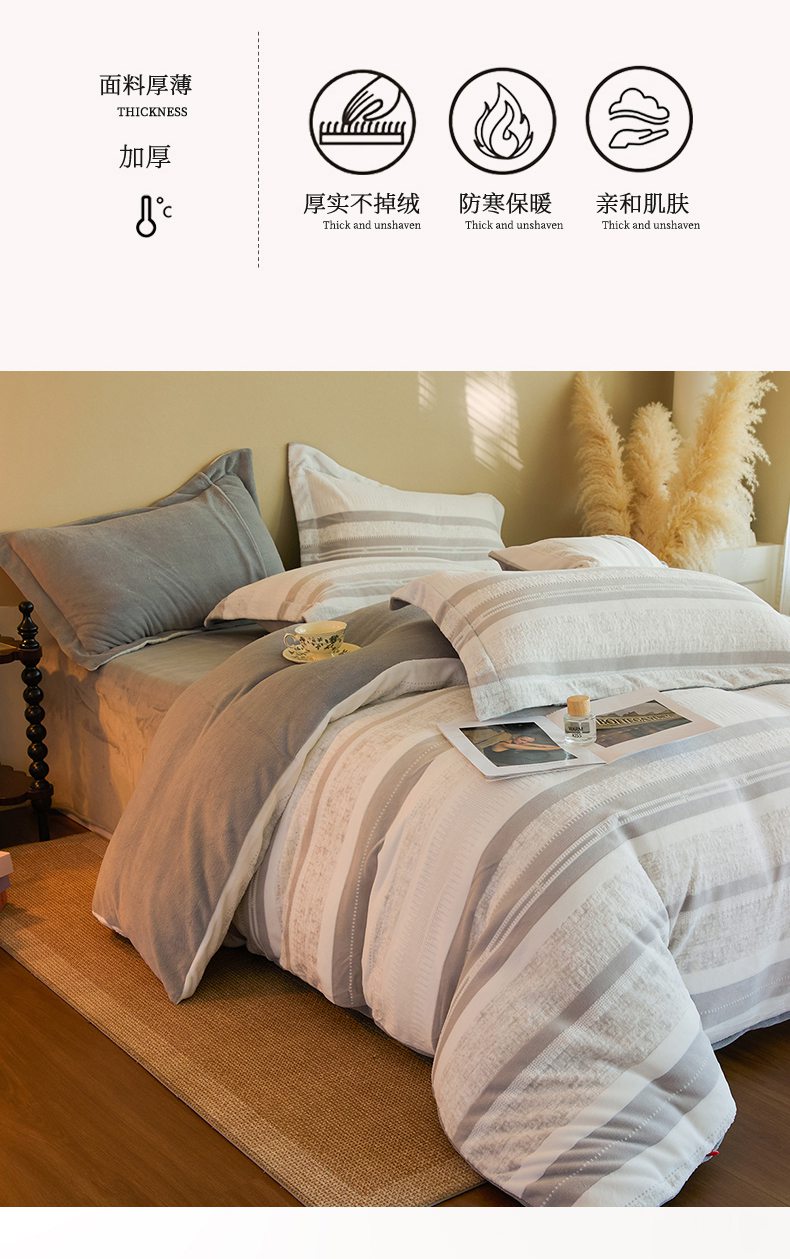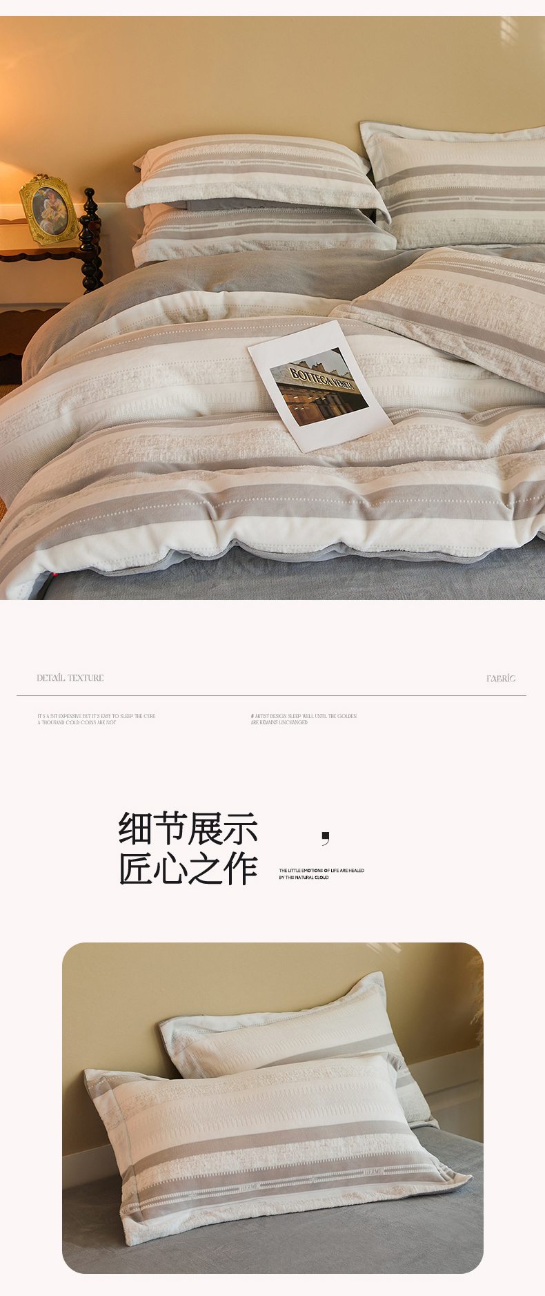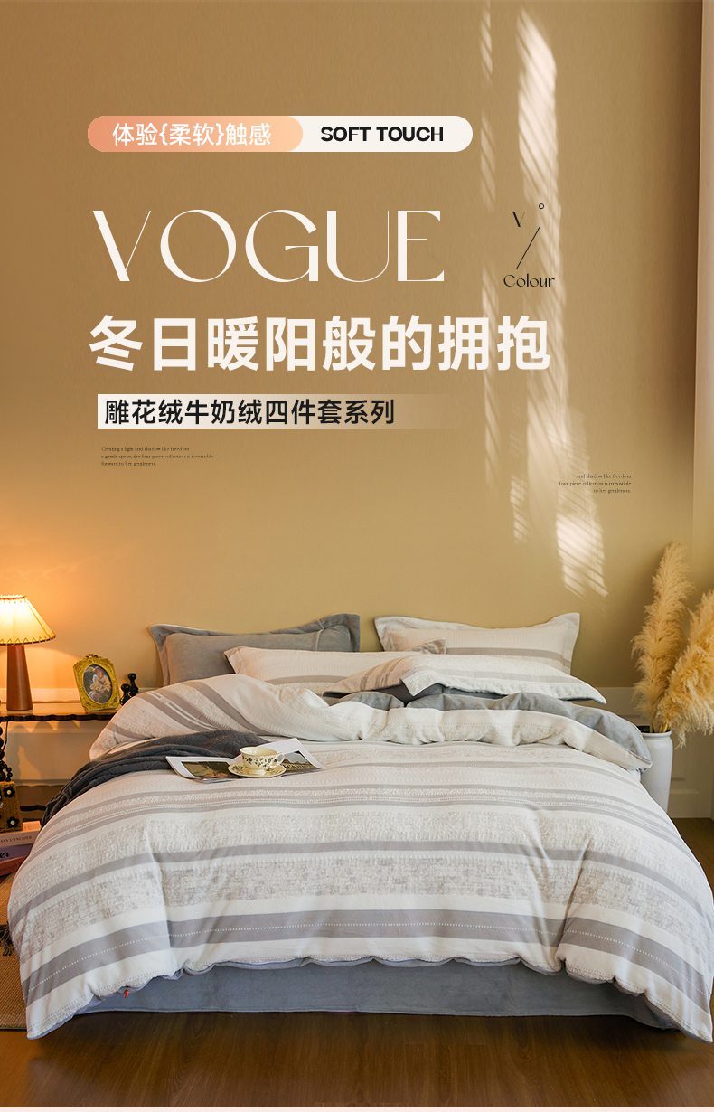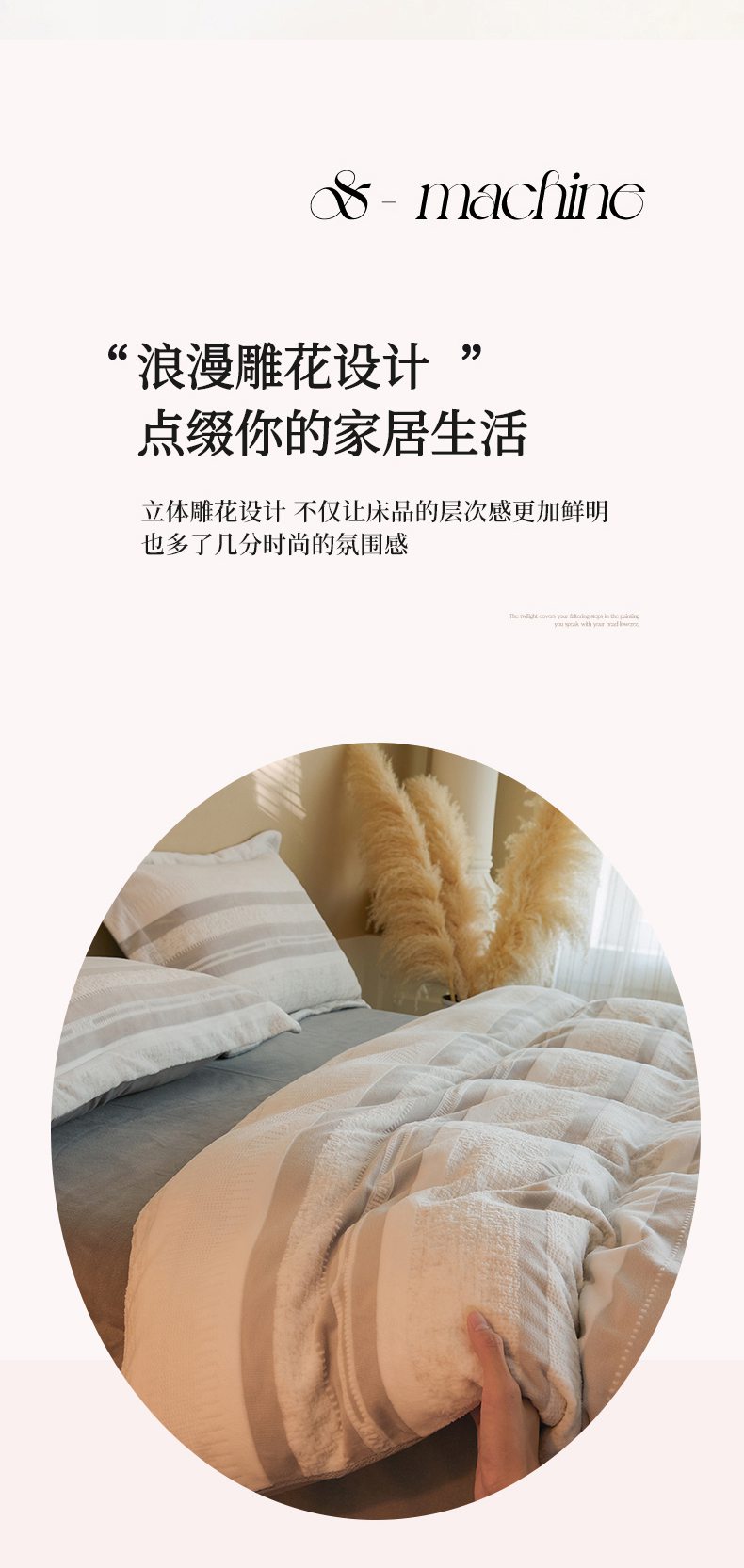 当前位置: 91家纺网 > 商品网购 > 床品套件 > 四件套 > 牛奶绒四件套 > 菡宝 【主推第三批 带质检报告】A类全消光230g雕花绒牛奶绒四件套支持定制定做尺寸 绅士条纹
