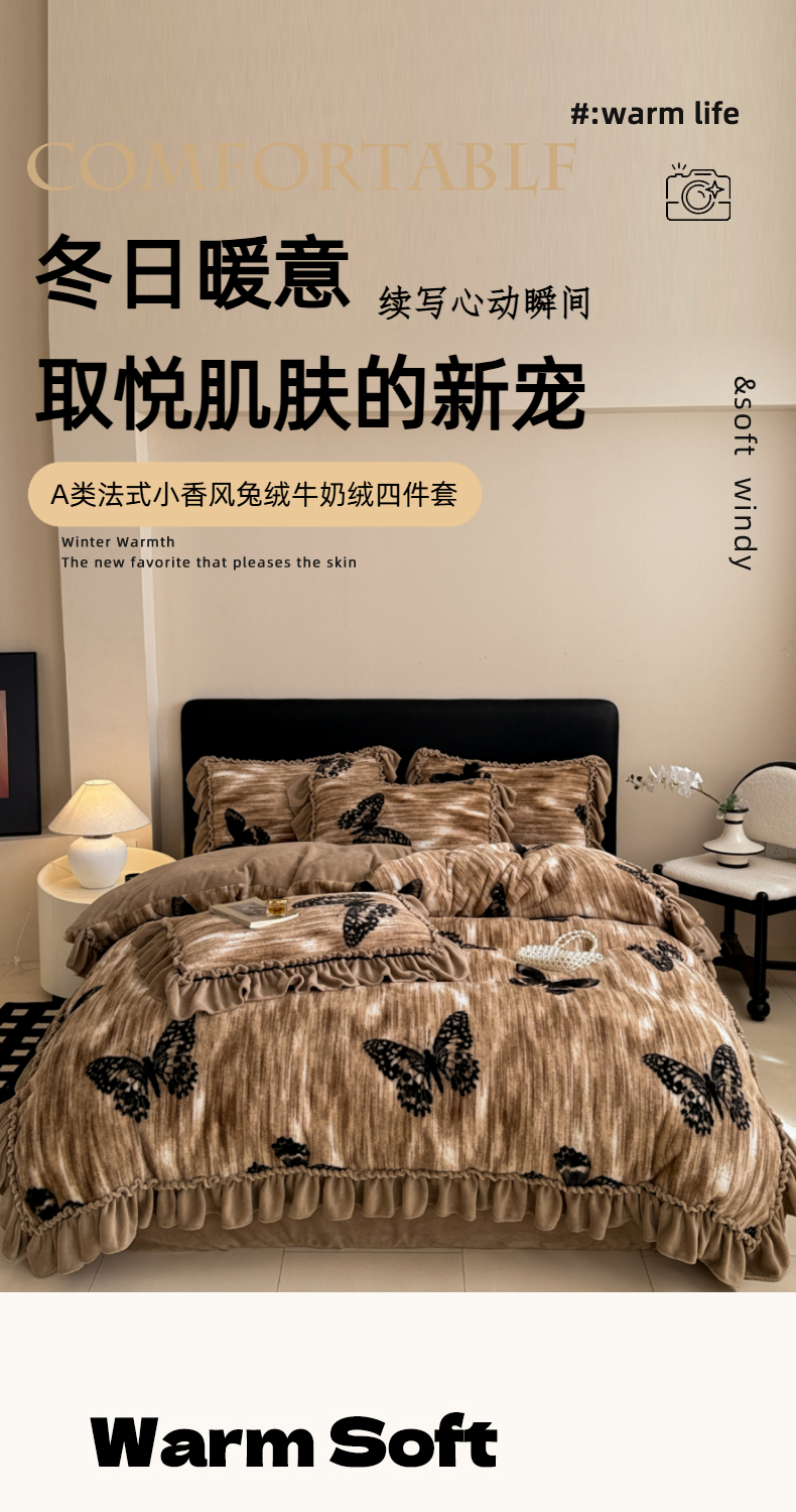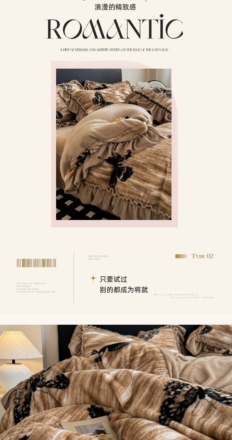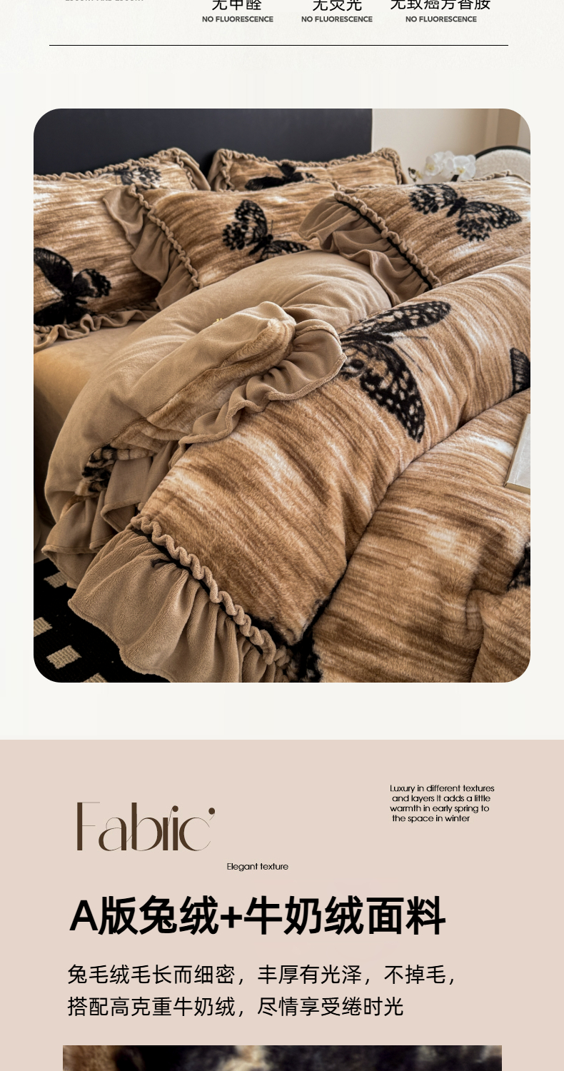 (总)米莱家纺 2025新款兔毛绒花边牛奶绒四件套,彩色圆点,繁花,粉黛,蝴蝶结,咖圆点,可爱兔,可爱熊,蔷薇