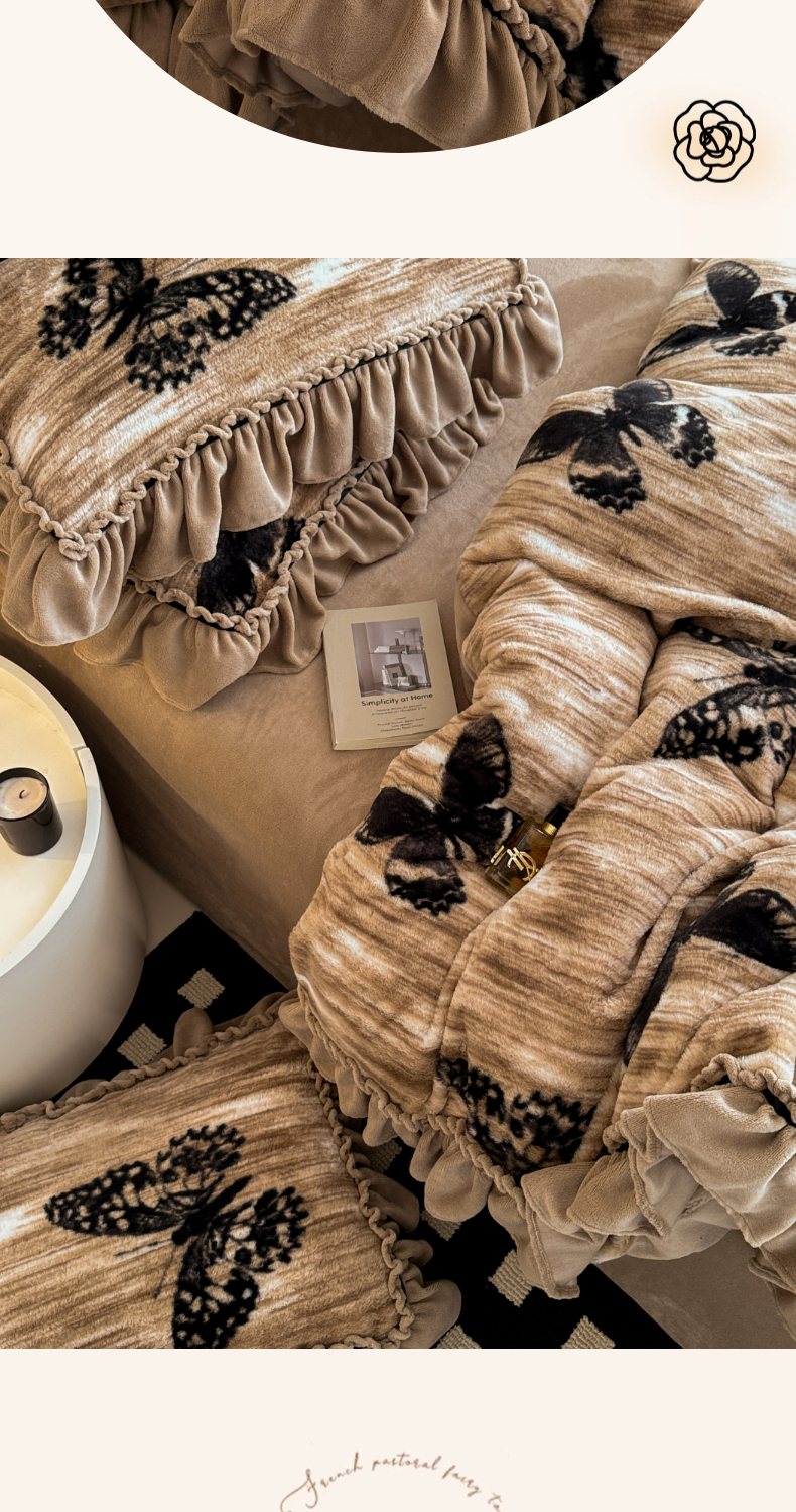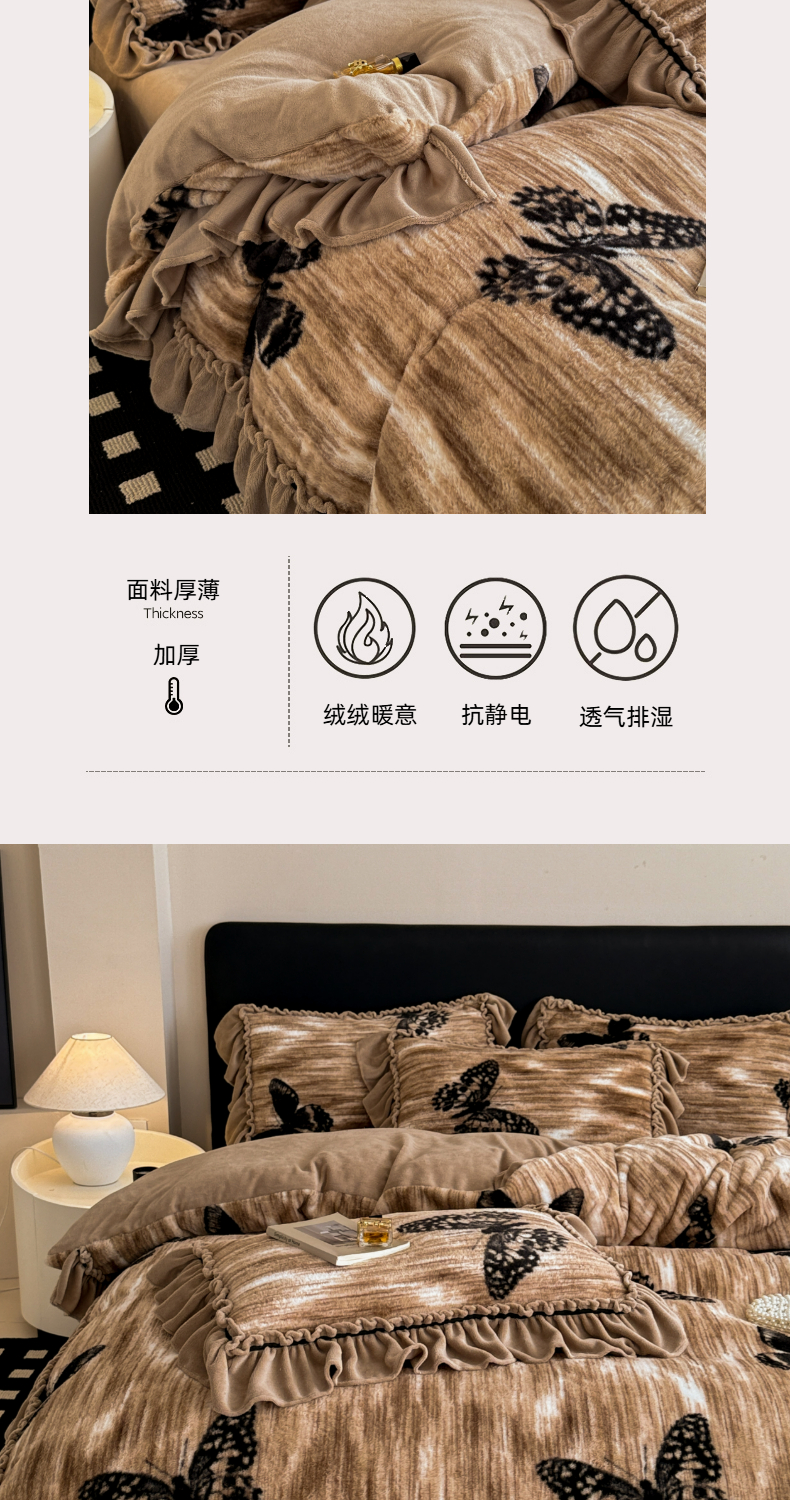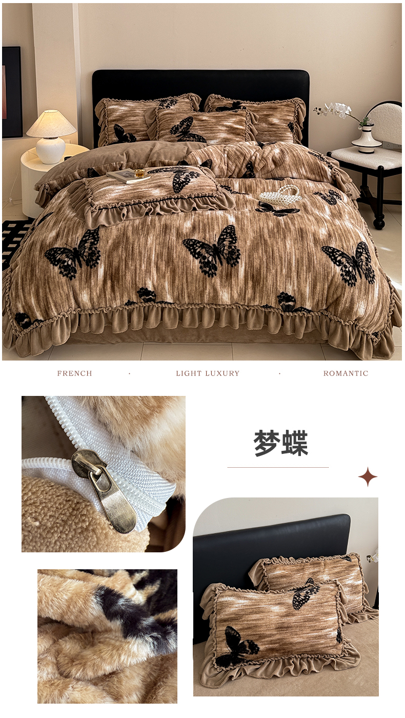 (总)米莱家纺 2025新款兔毛绒法式花边四件套,梦蝶,豹纹-灰,豹纹-咖,布拉格,春野,芳华,花颜,南法假日,欧若拉,倾城,赛琳,山茶