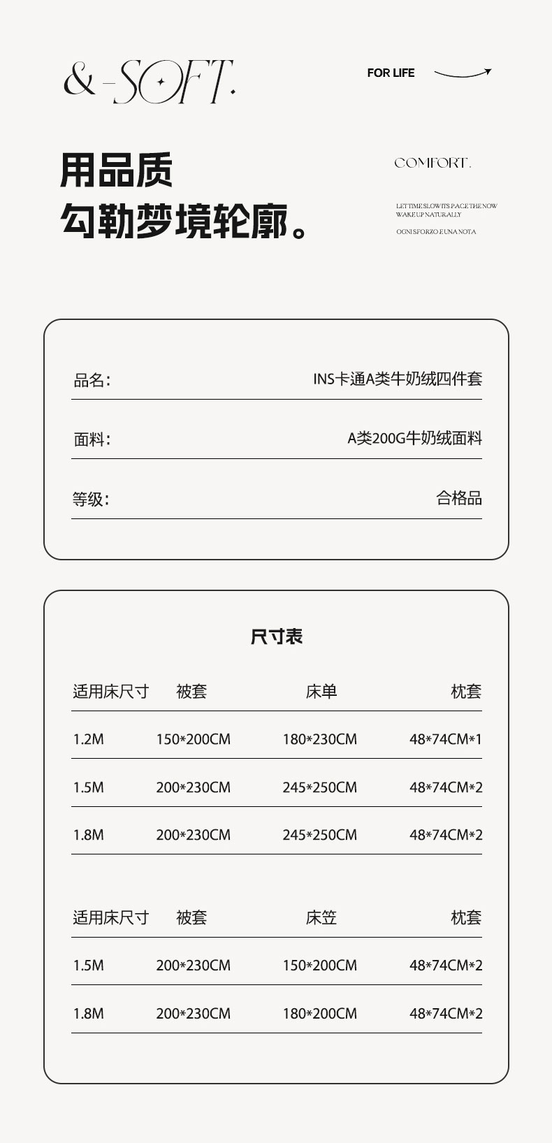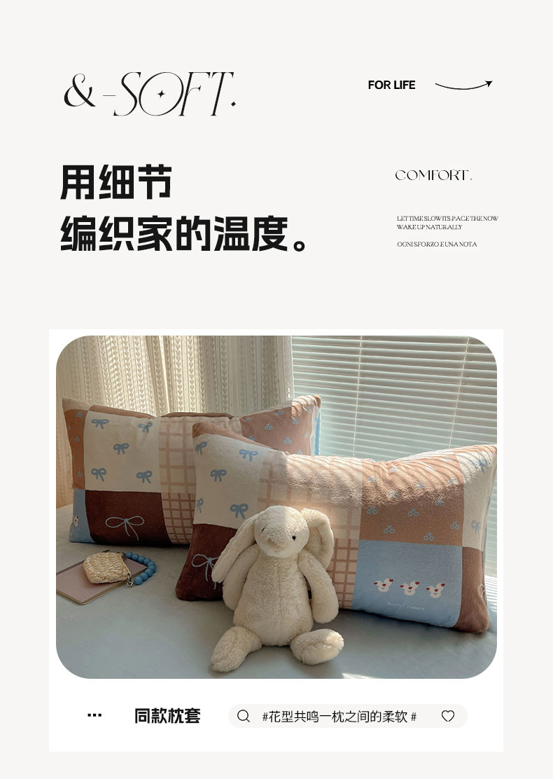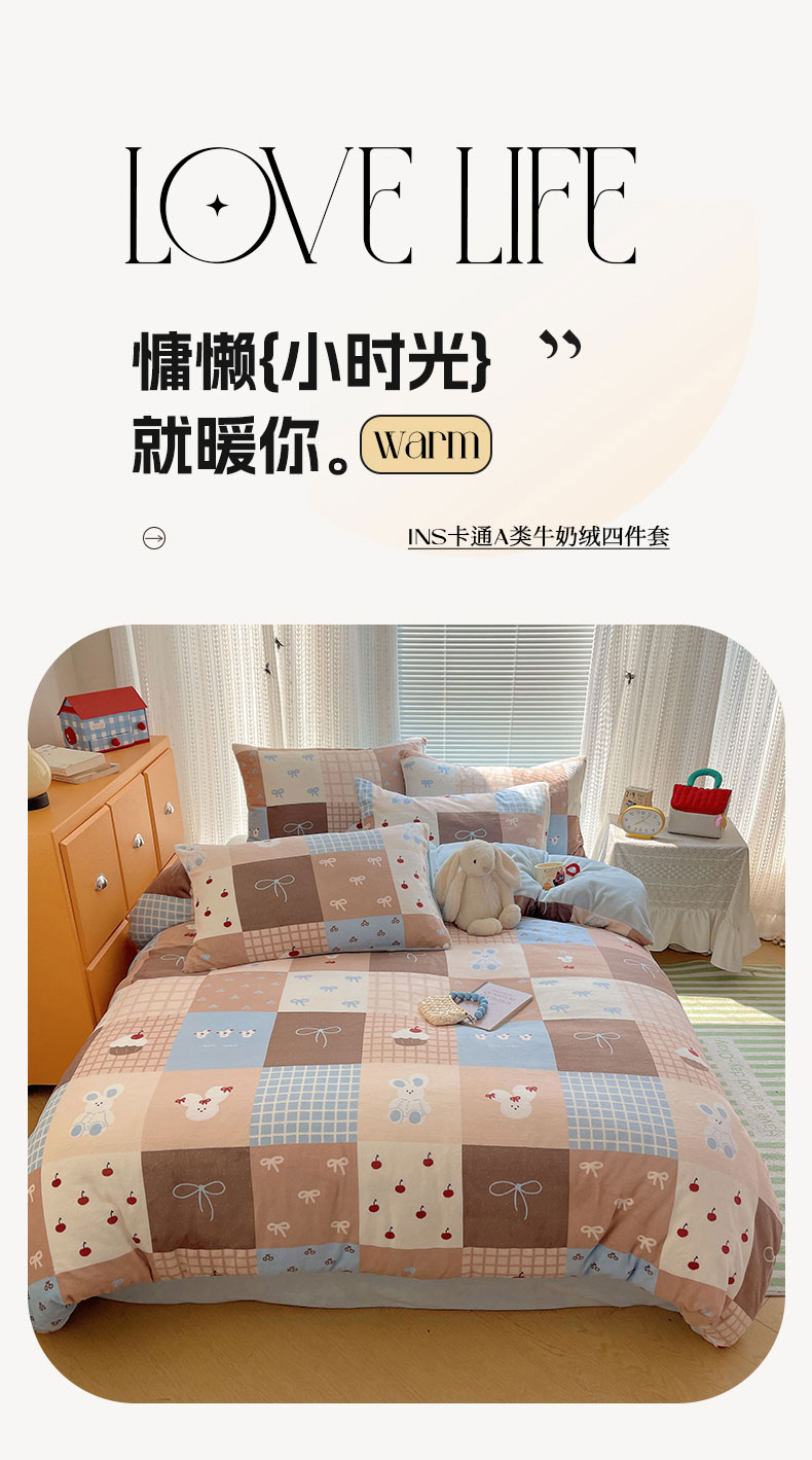 商品名称:六巷胡同 2025新款INS卡通A类200克牛奶绒基础款四件套(第一系) 基础款-格子美拉兔