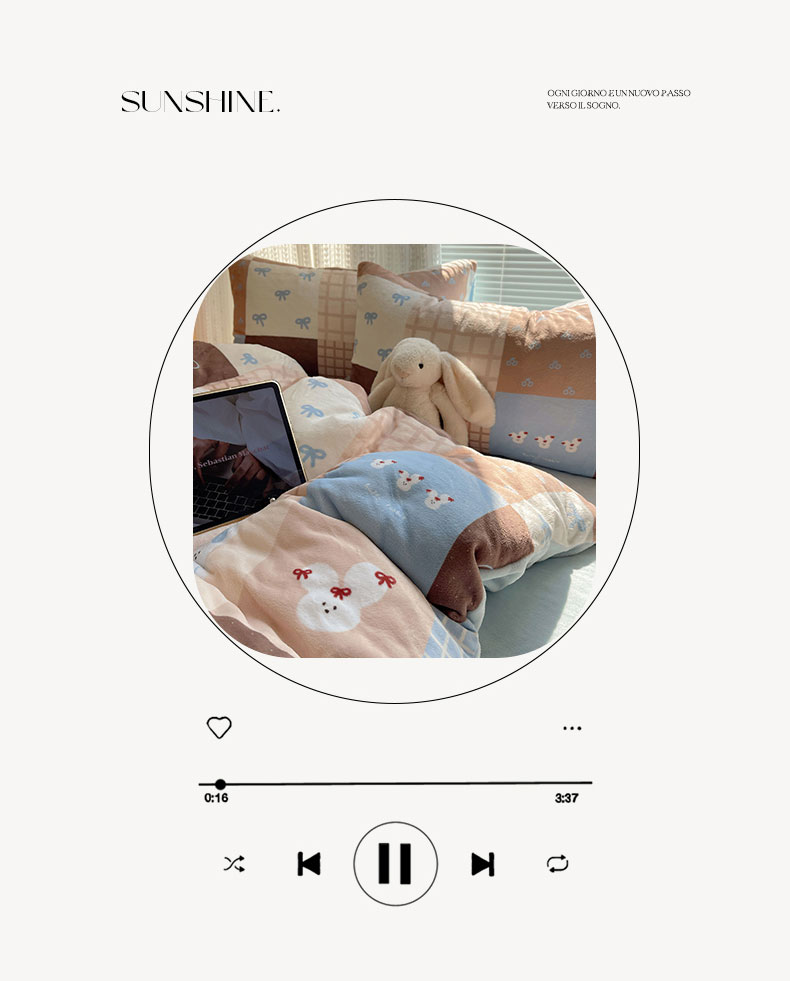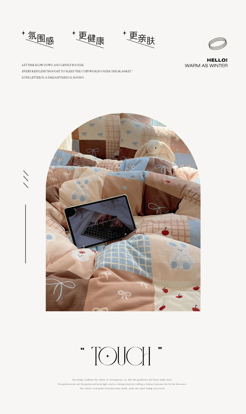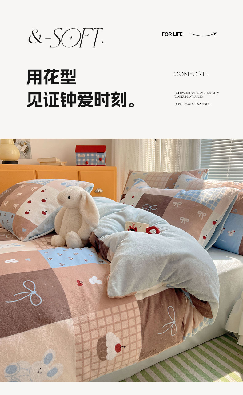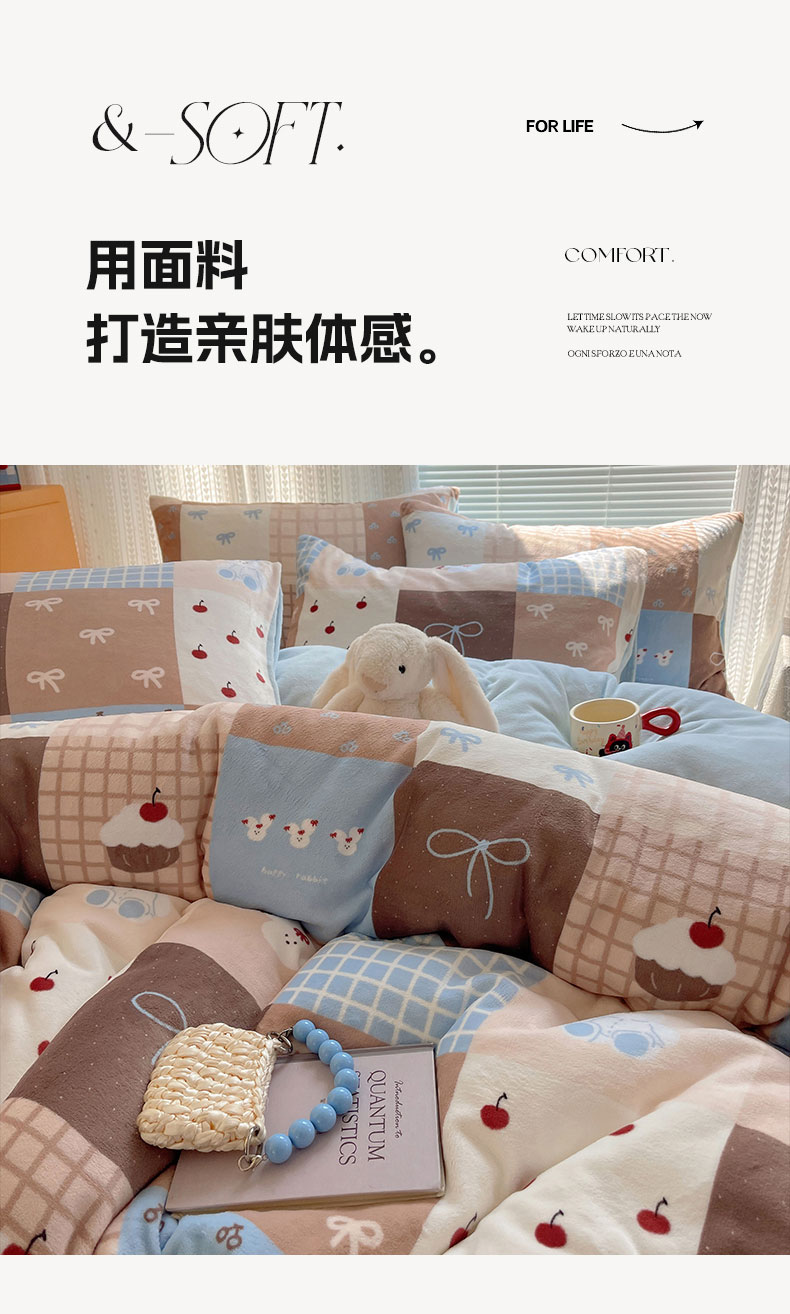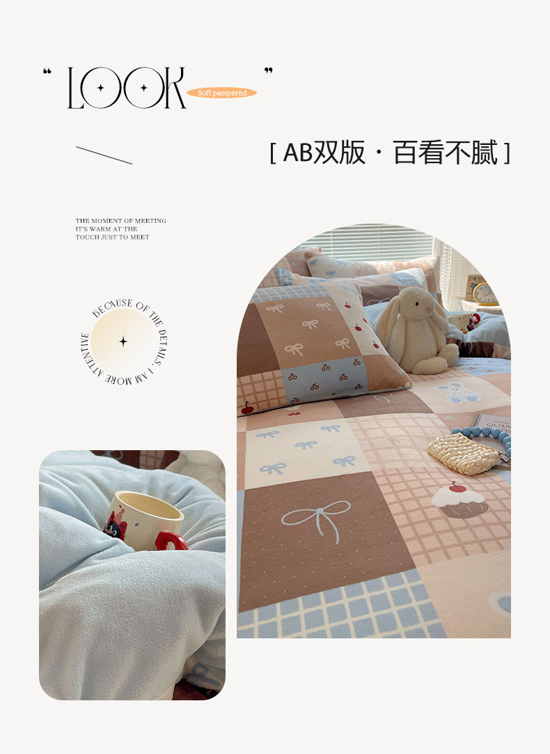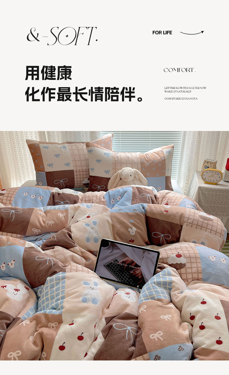 六巷胡同 2025新款INS卡通A类200克牛奶绒基础款四件套(第一系) 基础款-格子美拉兔